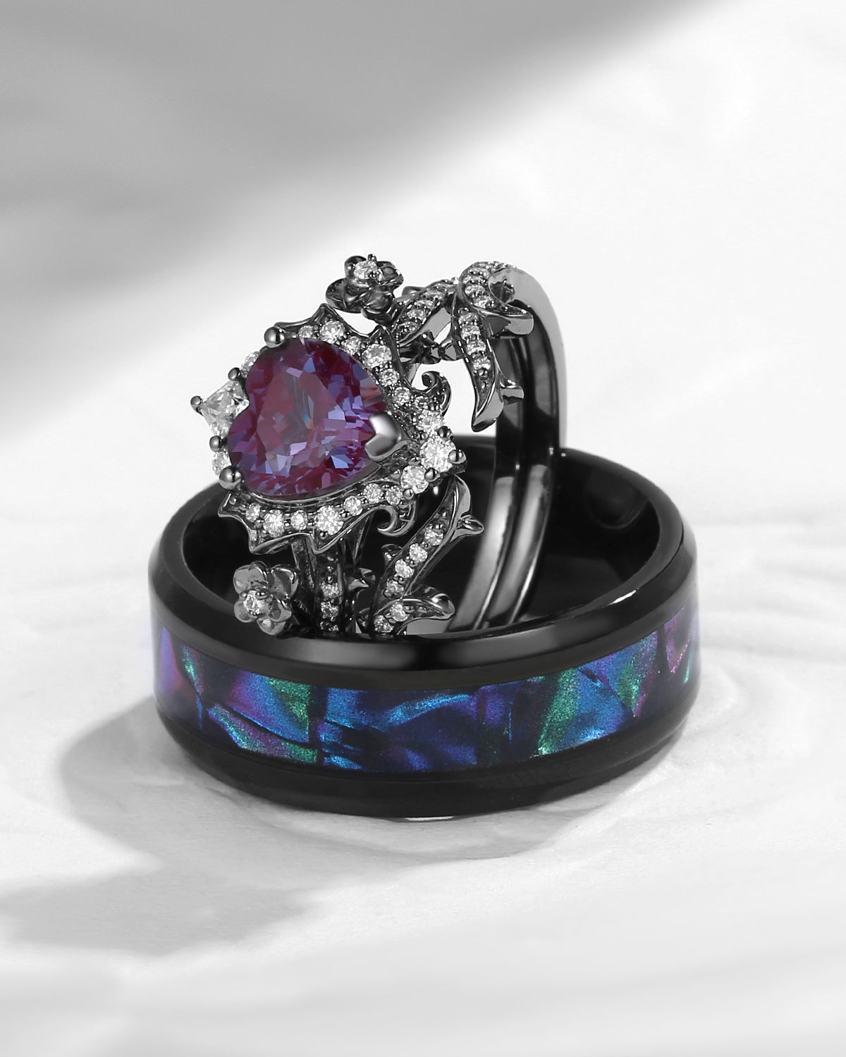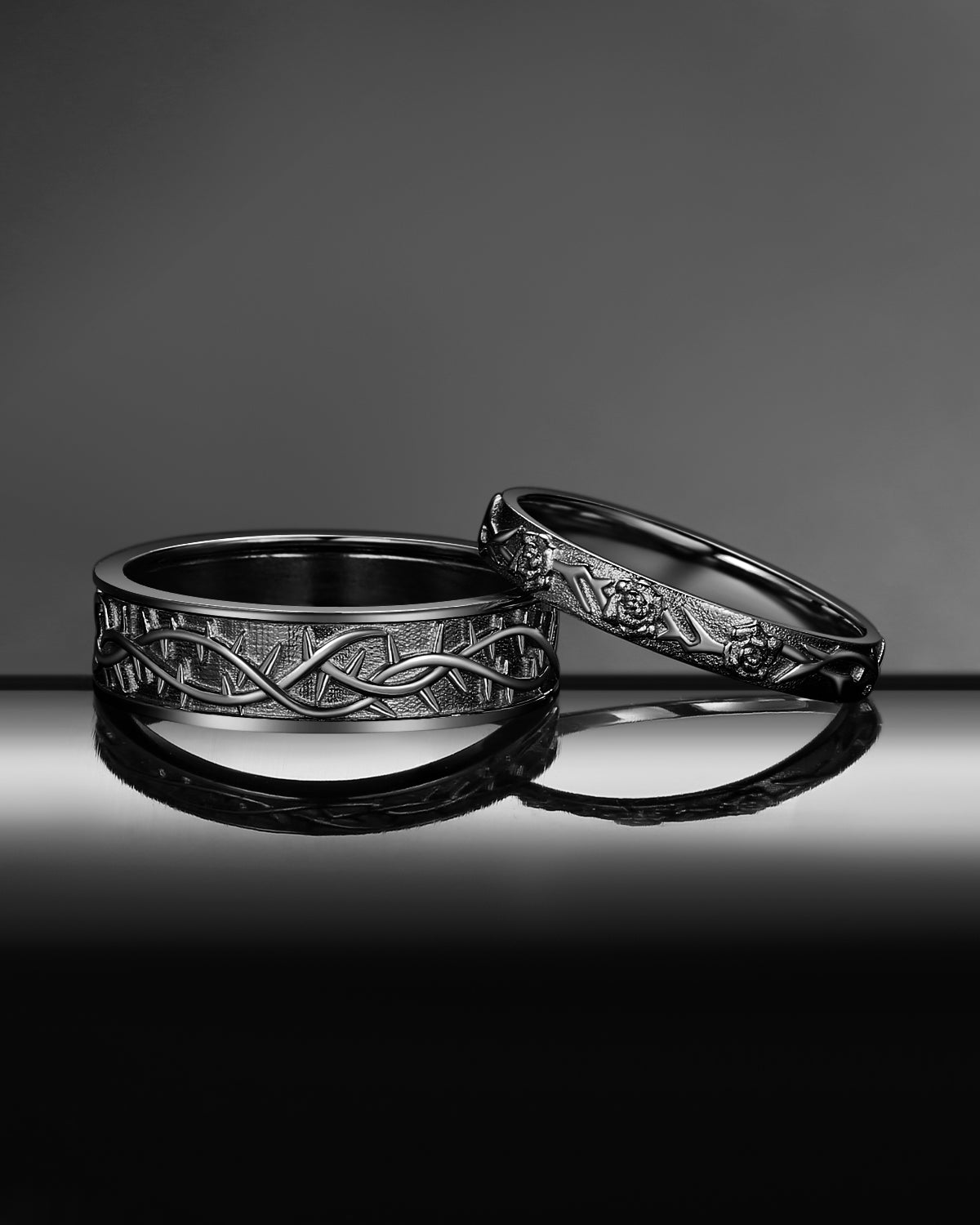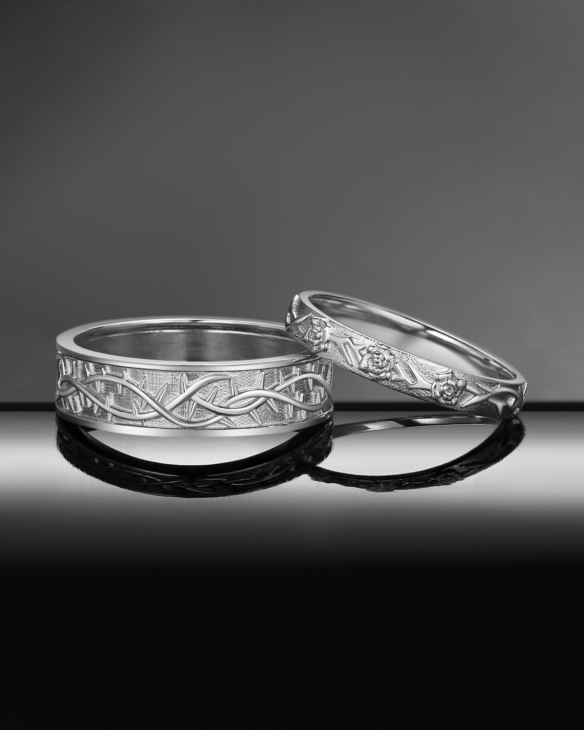 'Thorns & Roses' Filigrees Engagement Ring Band Set 2pcs