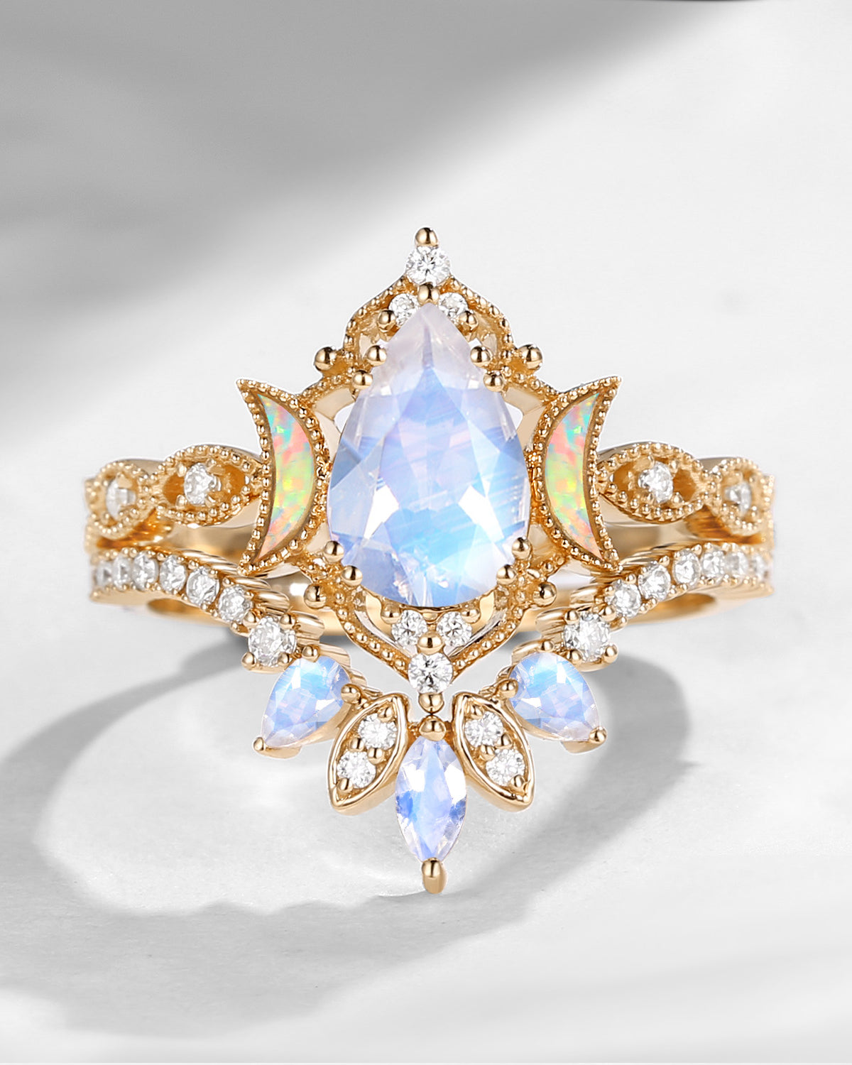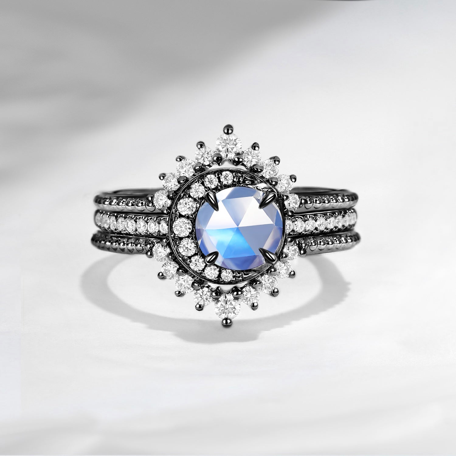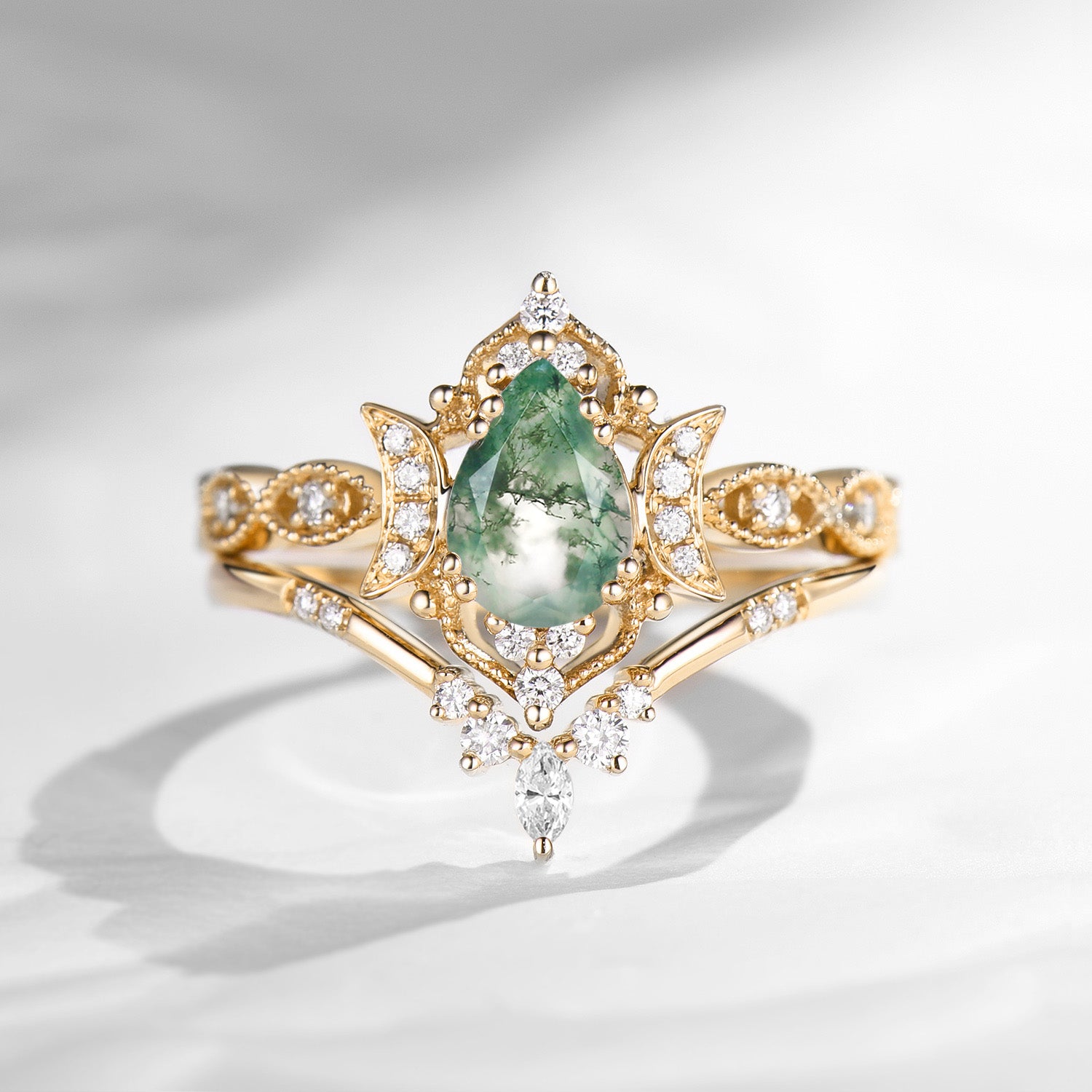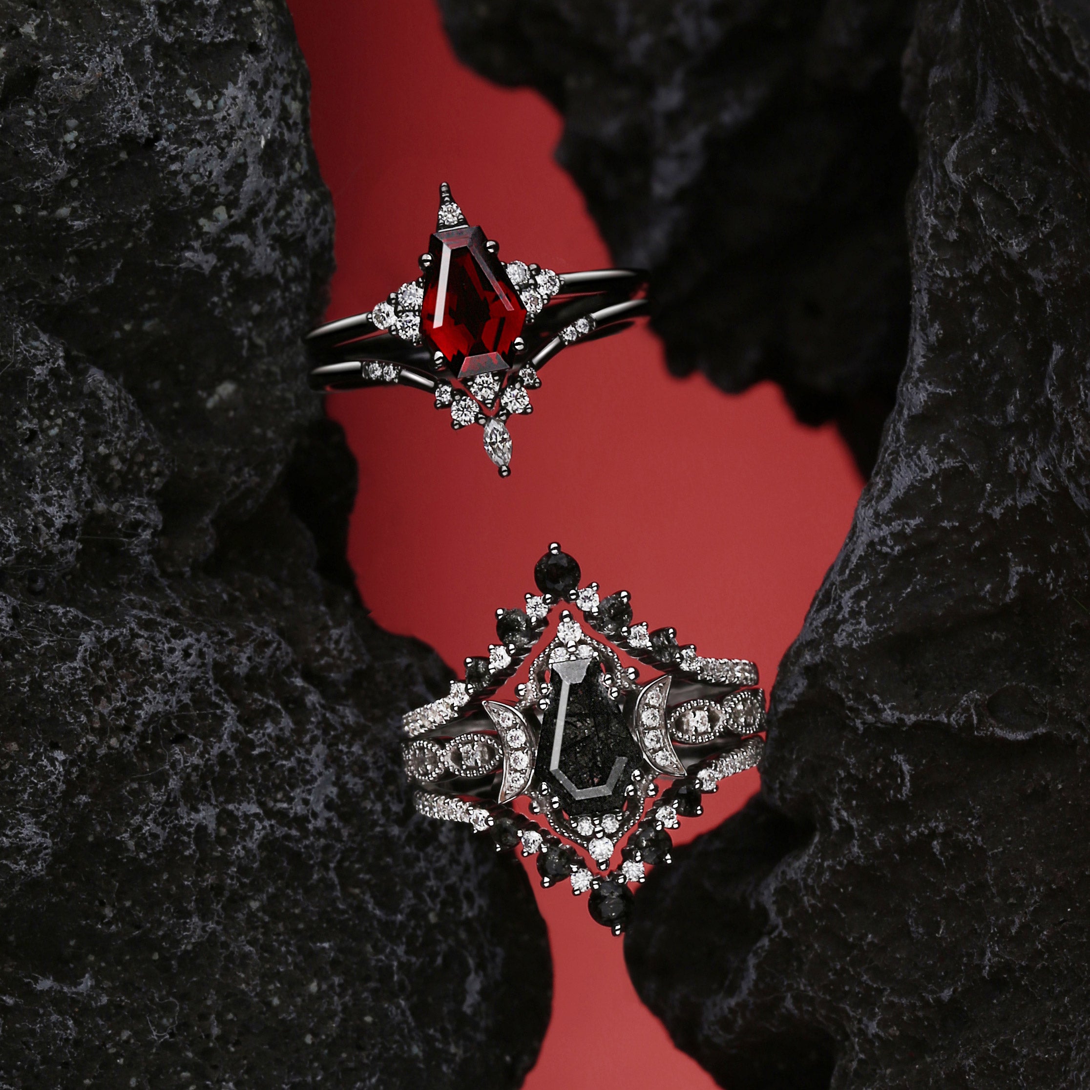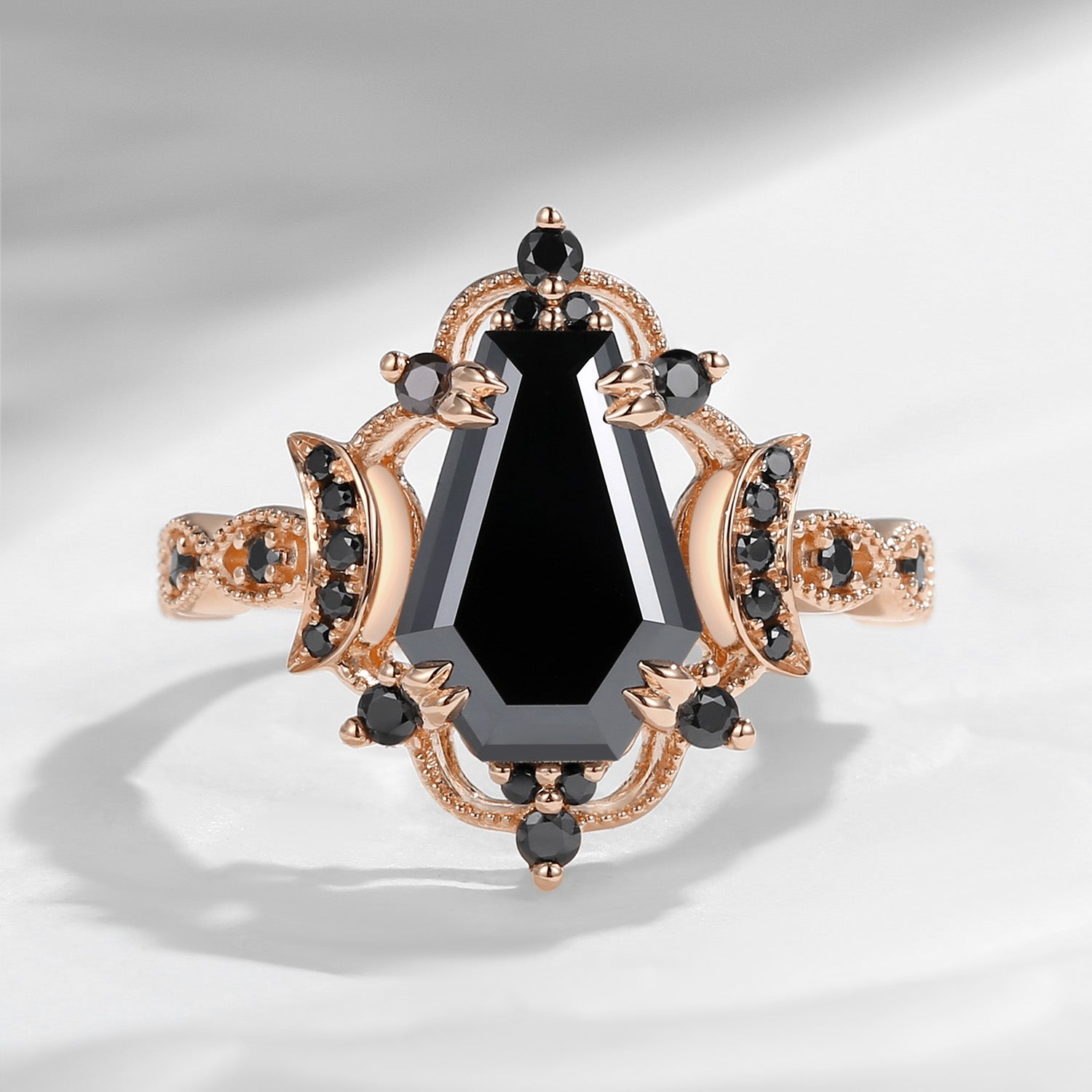 The new moon is often symbolic of new beginnings which this ring personifies for a couple starting their new life together. The crescent on the ring adorned with sparkling diamonds or other gemstones, like stars embellishing below the moon, making the ring both mystically charming and gorgeously radiant. This crescent shape ring is an ideal choice for a proposal or even daily wear, showcasing the wearer's personality in a unique way and serves as a beautiful promise of the future. Crescent moon is our proudest design by far. The crescent moon ring represents a new beginning, a process of starting over and vitality. Each crescent moon engagement ring is as unique as it can get while preserving a wonderful balance between vintage vibes and simplicity. The crescent moon ring can be of different shapes and different stone color even different side stones because here in StarlandUS, every one gets to create their own crescent moon, so as their own beginning.