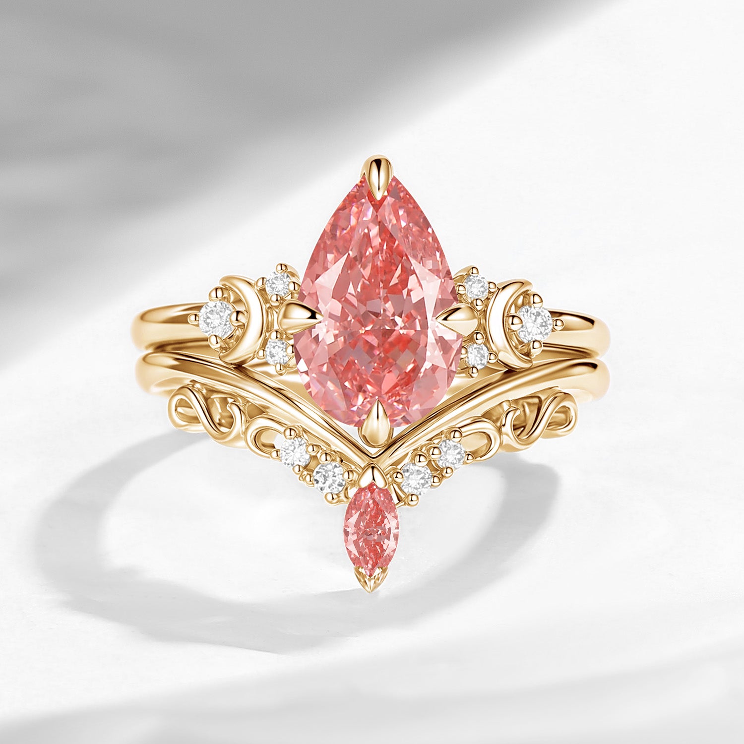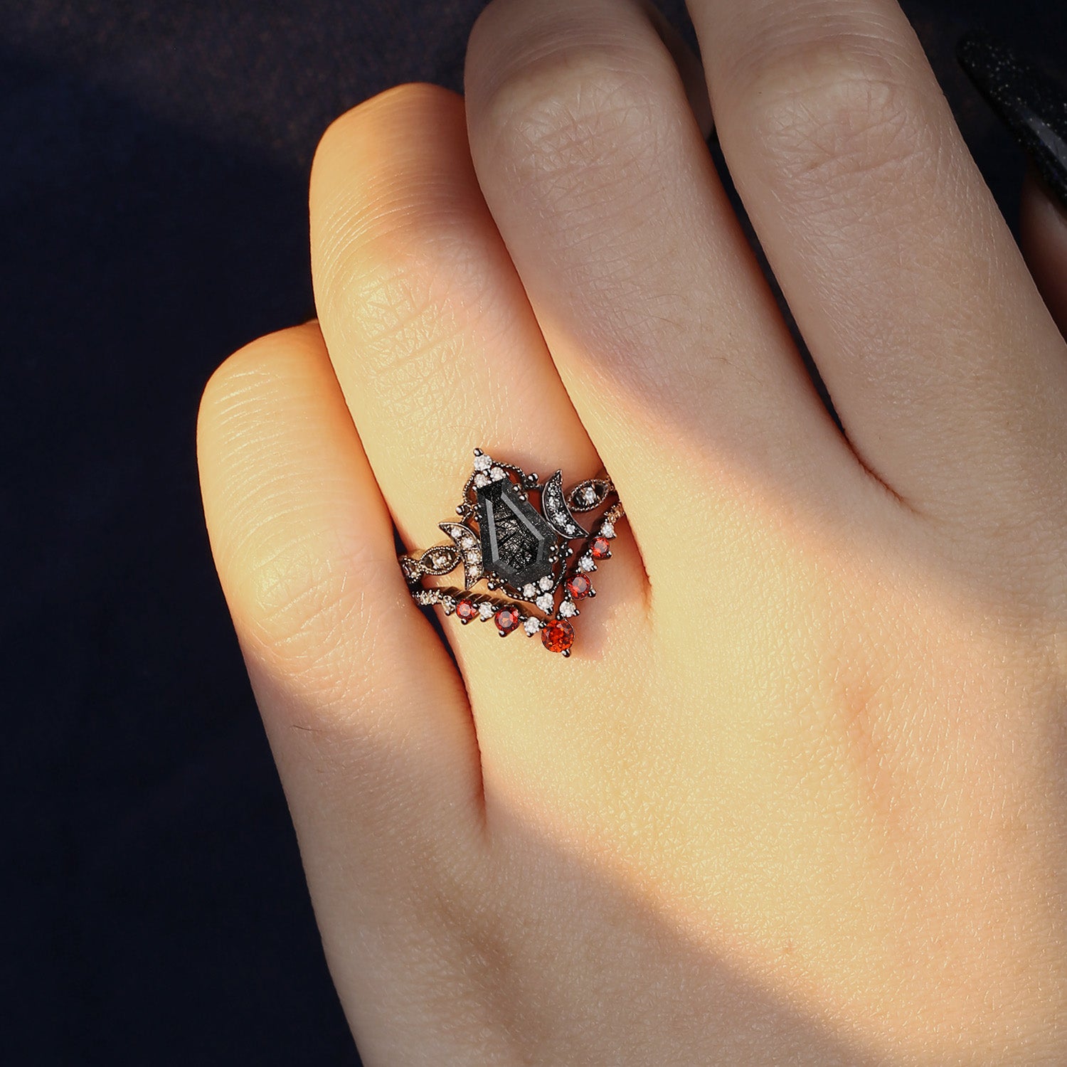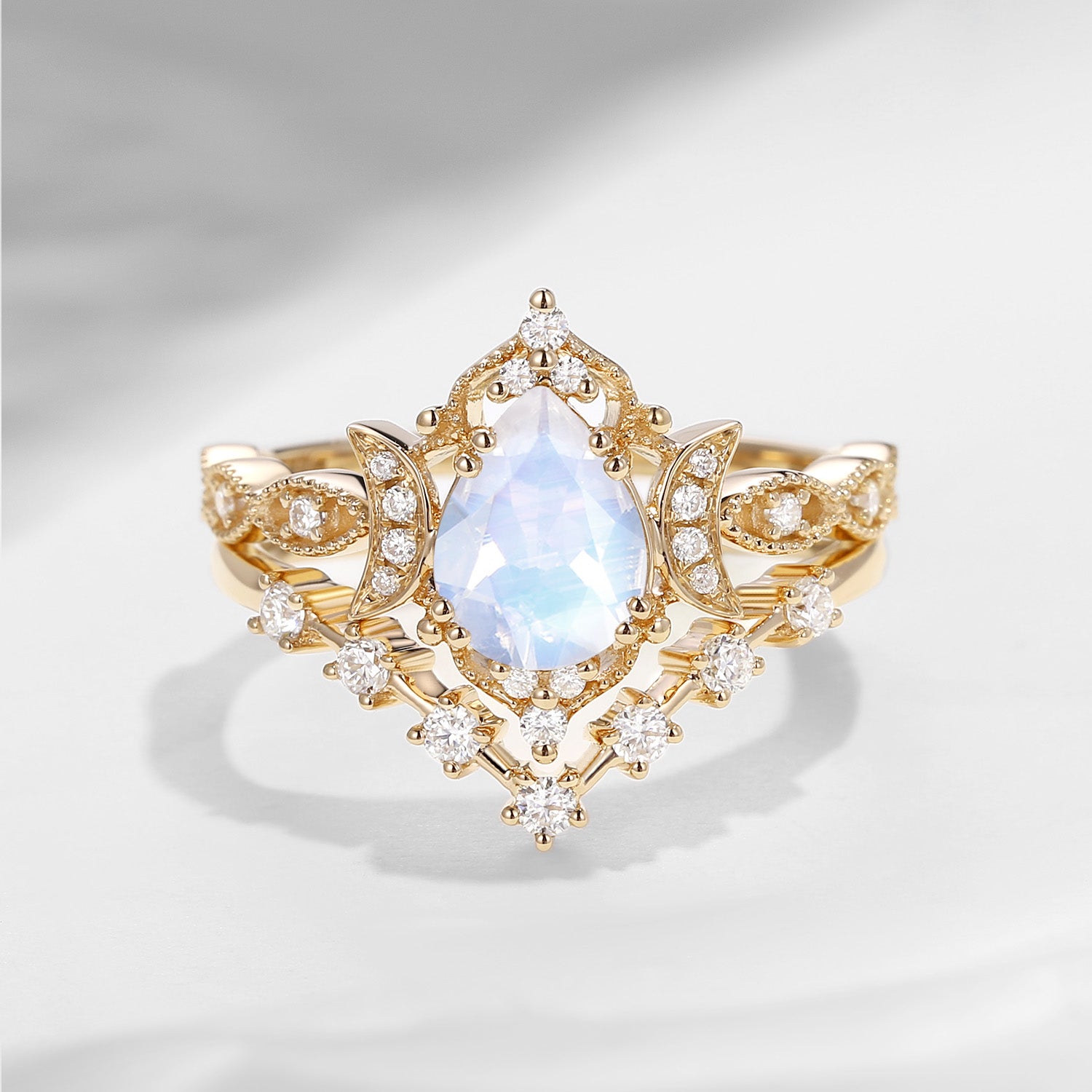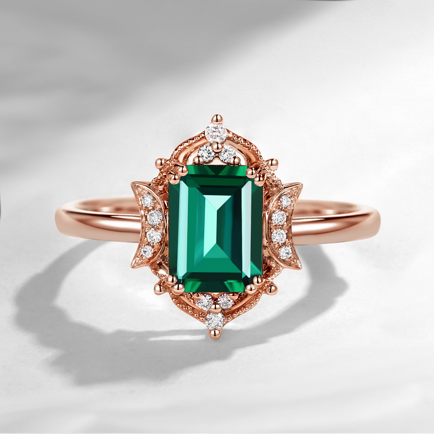 The new moon is often symbolic of new beginnings which this ring personifies for a couple starting their new life together. The crescent on the ring adorned with sparkling diamonds or other gemstones, like stars embellishing below the moon, making the ring both mystically charming and gorgeously radiant. This crescent shape ring is an ideal choice for a proposal or even daily wear, showcasing the wearer's personality in a unique way and serves as a beautiful promise of the future. Crescent moon is our proudest design by far. The crescent moon ring represents a new beginning, a process of starting over and vitality. Each crescent moon engagement ring is as unique as it can get while preserving a wonderful balance between vintage vibes and simplicity. The crescent moon ring can be of different shapes and different stone color even different side stones because here in StarlandUS, every one gets to create their own crescent moon, so as their own beginning.