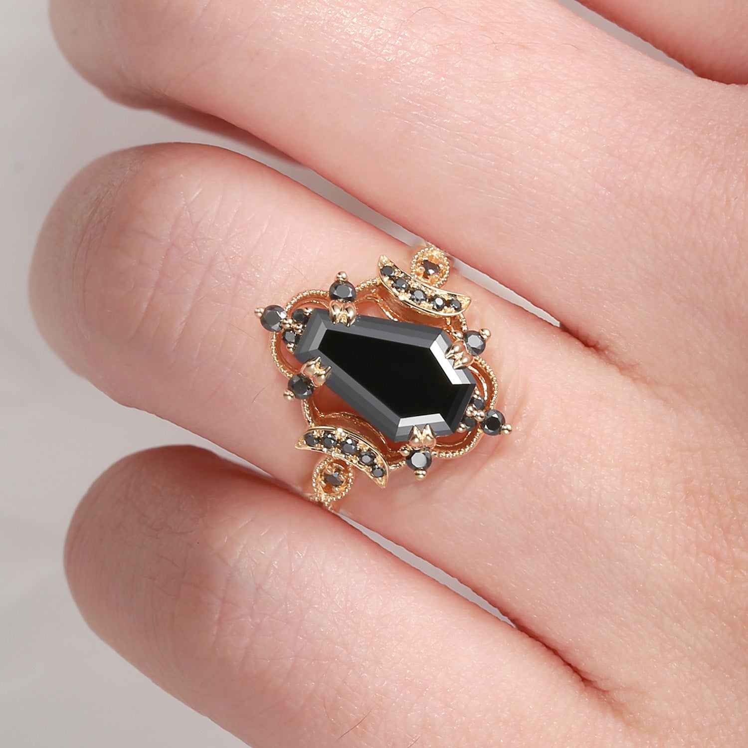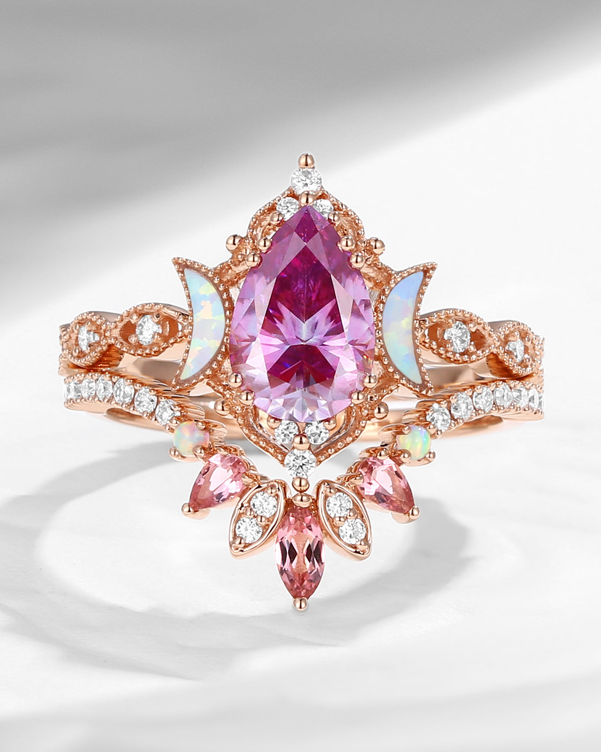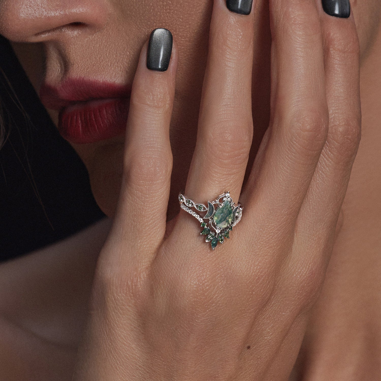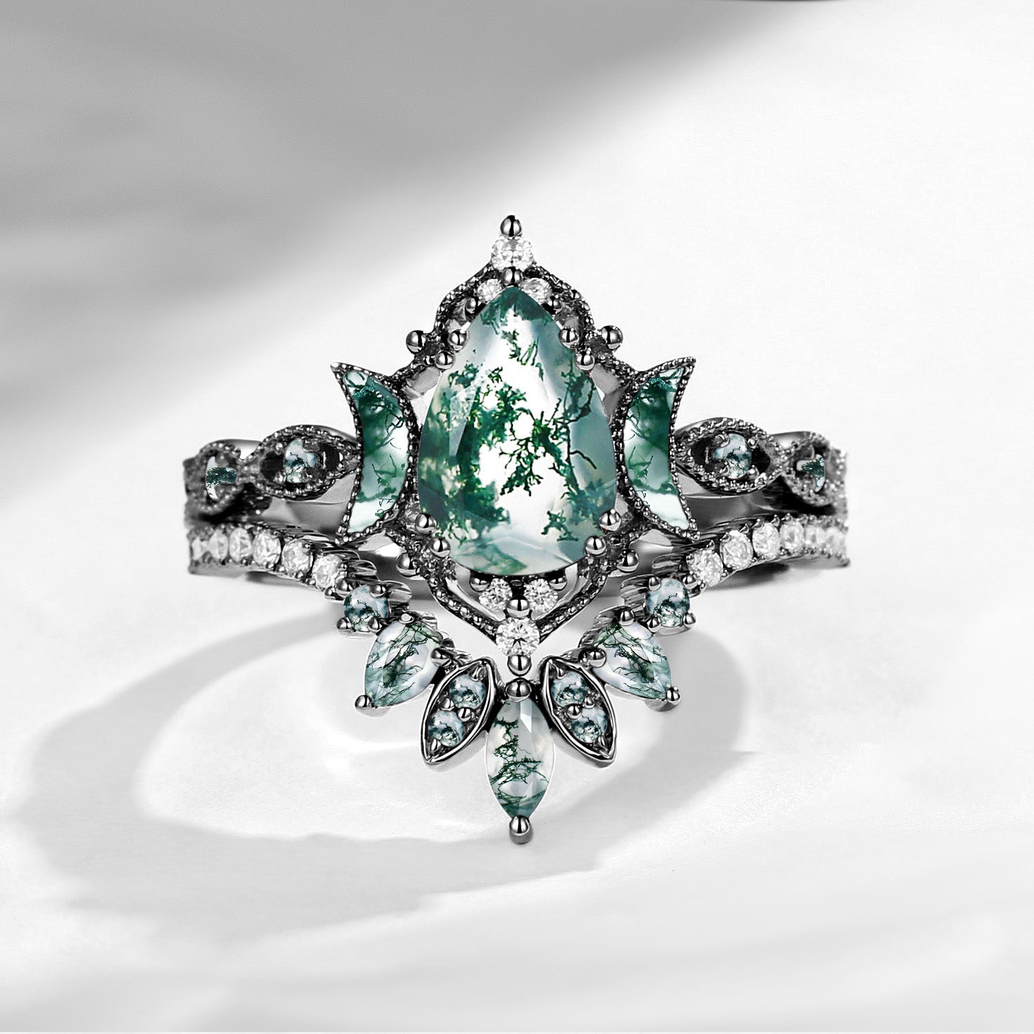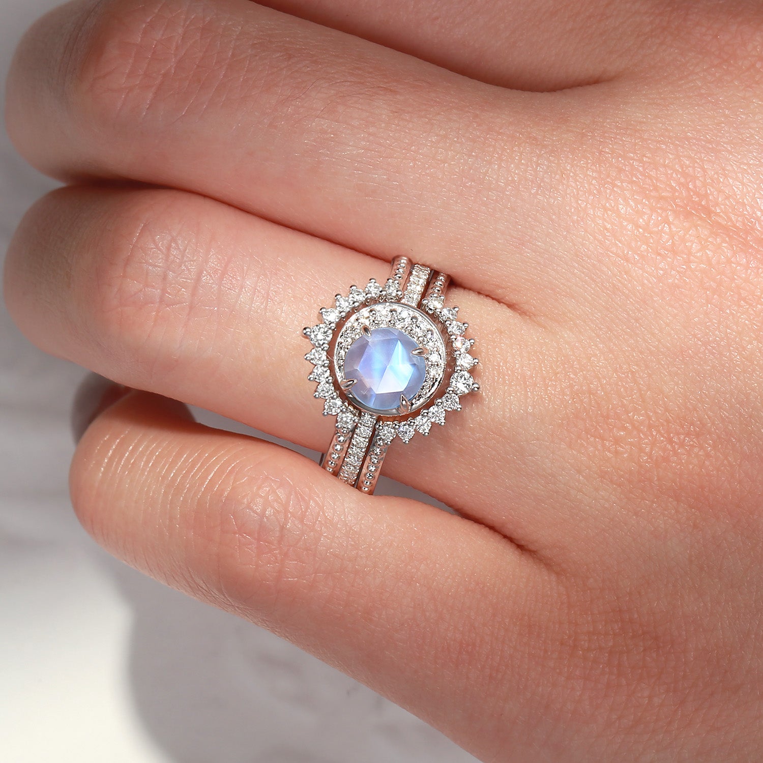 The new moon is often symbolic of new beginnings which this ring personifies for a couple starting their new life together. The crescent on the ring adorned with sparkling diamonds or other gemstones, like stars embellishing below the moon, making the ring both mystically charming and gorgeously radiant. This crescent shape ring is an ideal choice for a proposal or even daily wear, showcasing the wearer's personality in a unique way and serves as a beautiful promise of the future. Crescent moon is our proudest design by far. The crescent moon ring represents a new beginning, a process of starting over and vitality. Each crescent moon engagement ring is as unique as it can get while preserving a wonderful balance between vintage vibes and simplicity. The crescent moon ring can be of different shapes and different stone color even different side stones because here in StarlandUS, every one gets to create their own crescent moon, so as their own beginning.