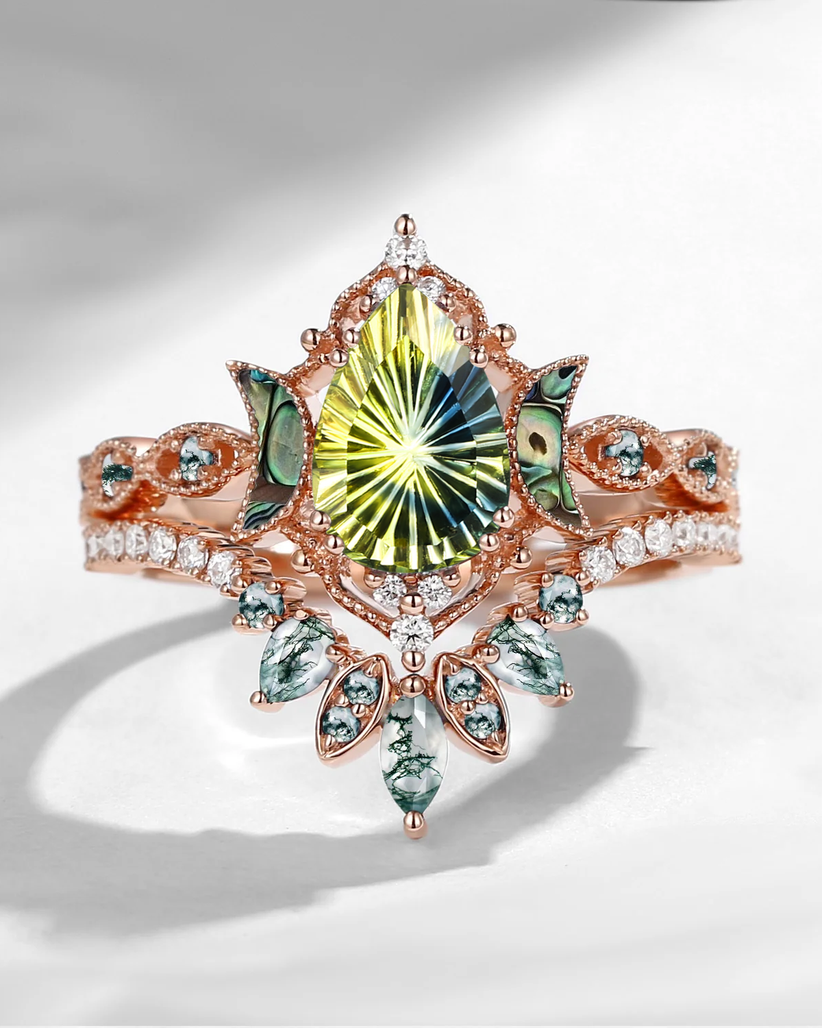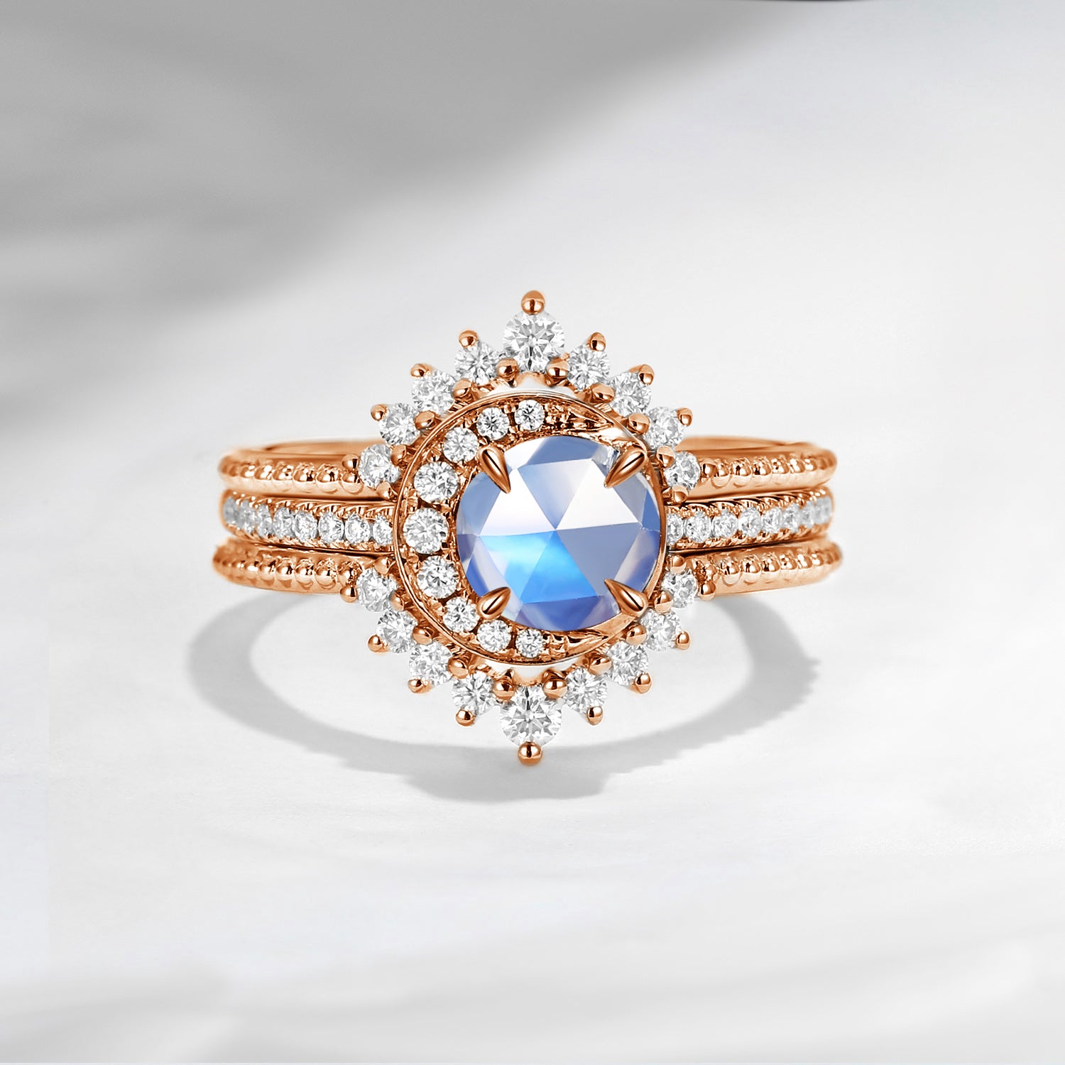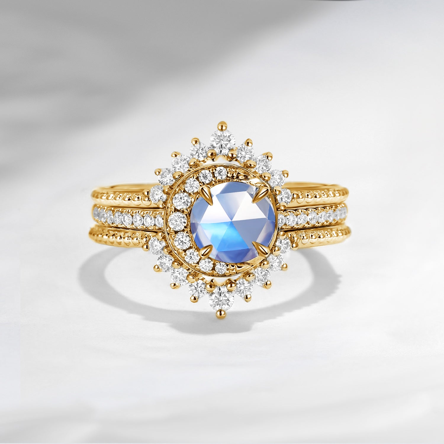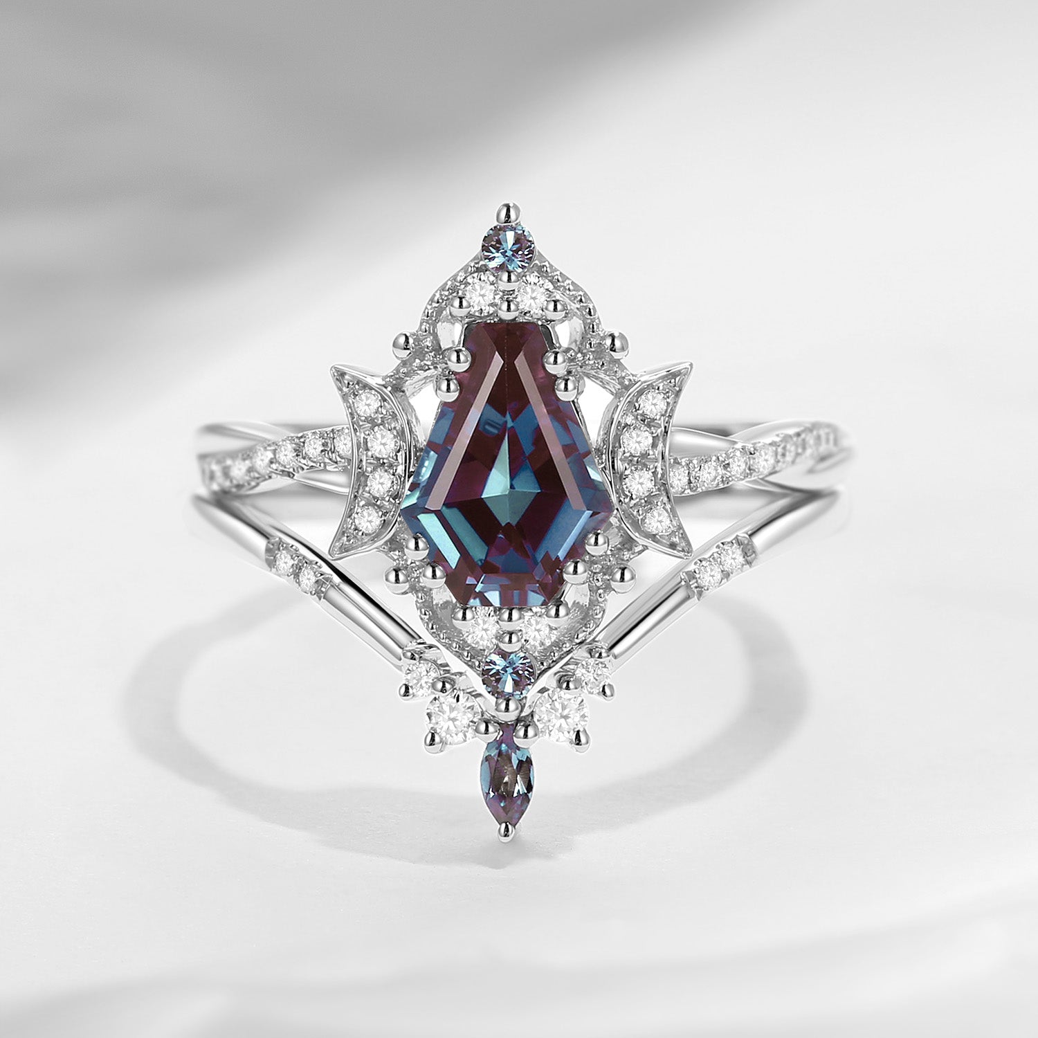 The new moon is often symbolic of new beginnings which this ring personifies for a couple starting their new life together. The crescent on the ring adorned with sparkling diamonds or other gemstones, like stars embellishing below the moon, making the ring both mystically charming and gorgeously radiant. This crescent shape ring is an ideal choice for a proposal or even daily wear, showcasing the wearer's personality in a unique way and serves as a beautiful promise of the future. Crescent moon is our proudest design by far. The crescent moon ring represents a new beginning, a process of starting over and vitality. Each crescent moon engagement ring is as unique as it can get while preserving a wonderful balance between vintage vibes and simplicity. The crescent moon ring can be of different shapes and different stone color even different side stones because here in StarlandUS, every one gets to create their own crescent moon, so as their own beginning.