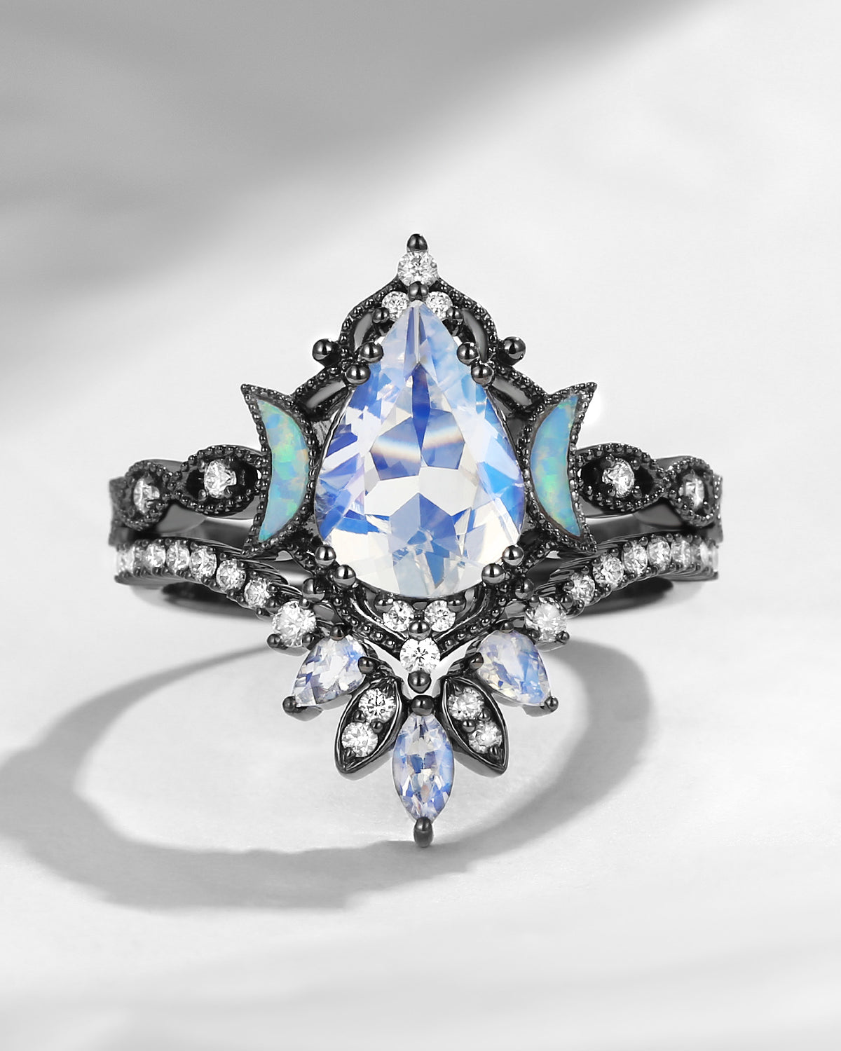 Crescent Moon | Pear Cut Blue Sandstone 'Ultra Galaxy' Engagement Ring Set 2pcs