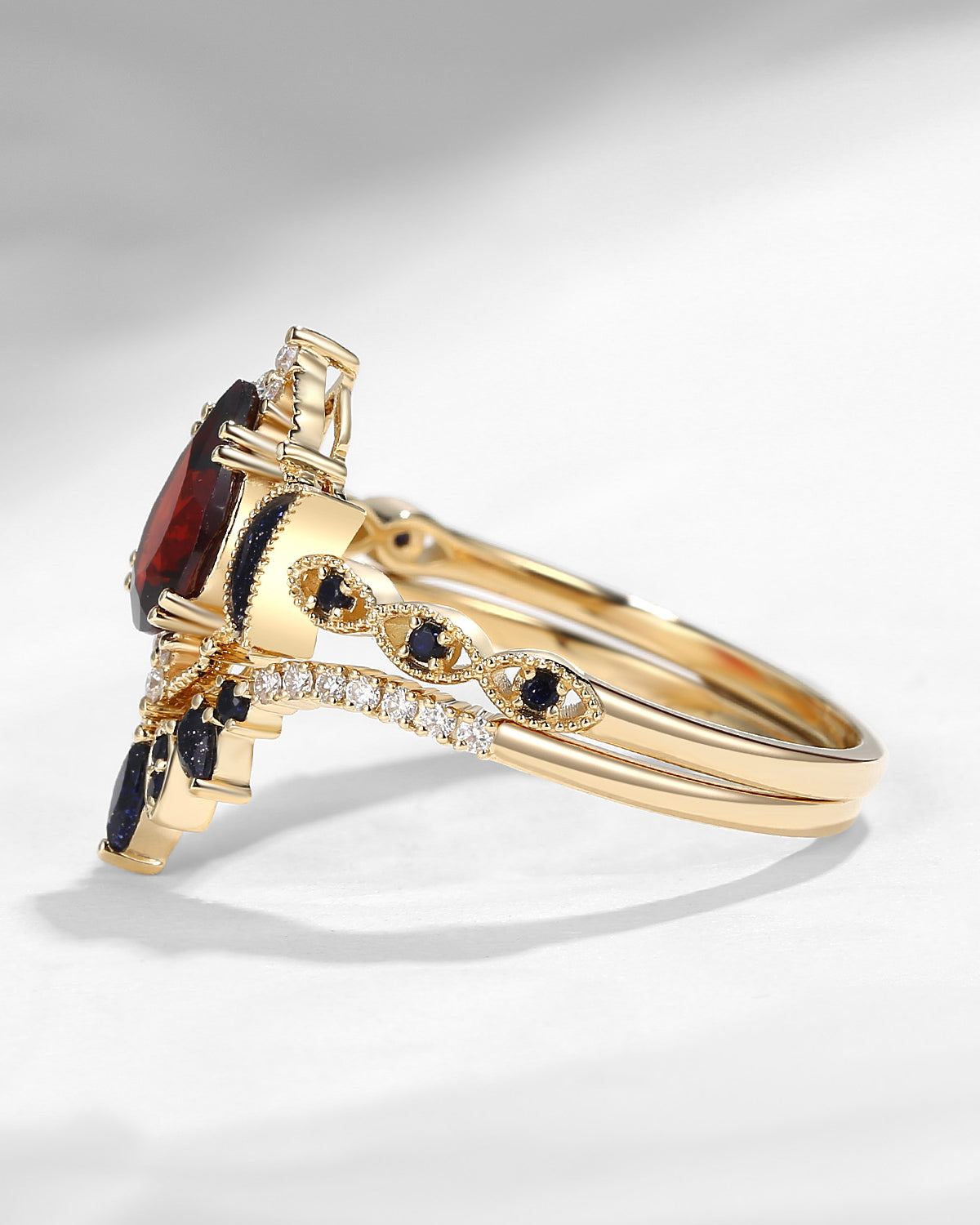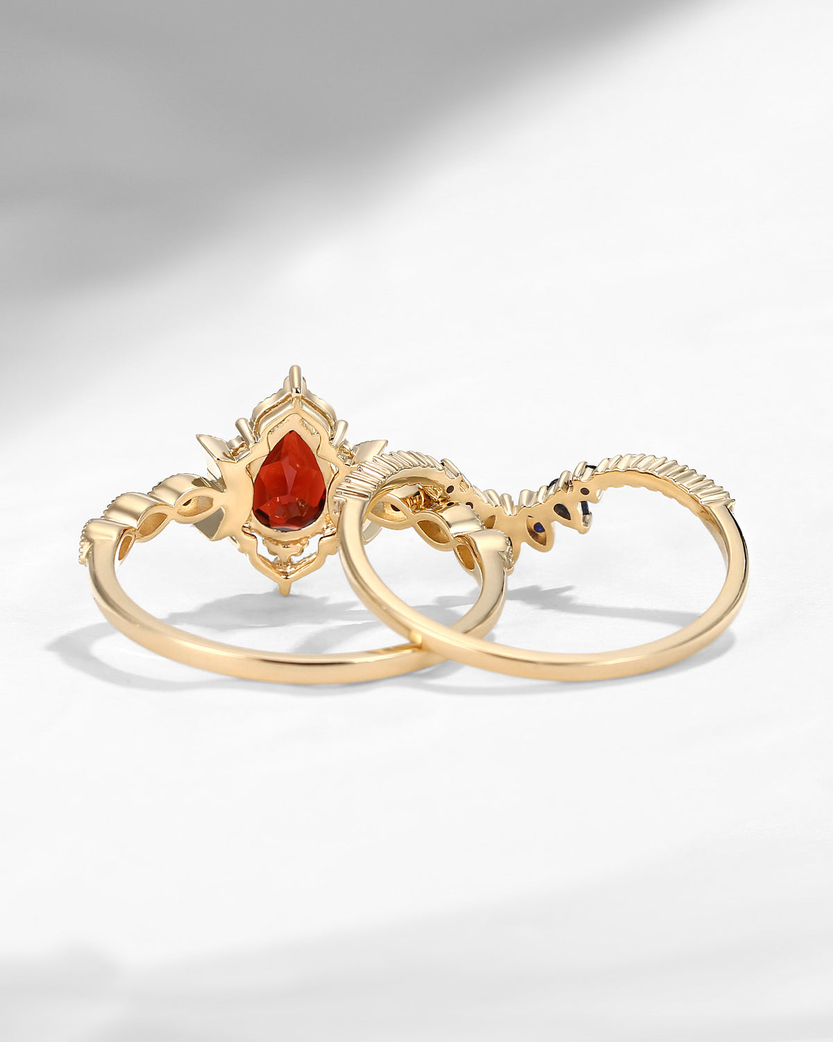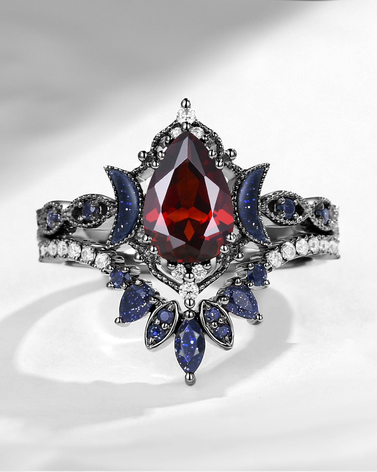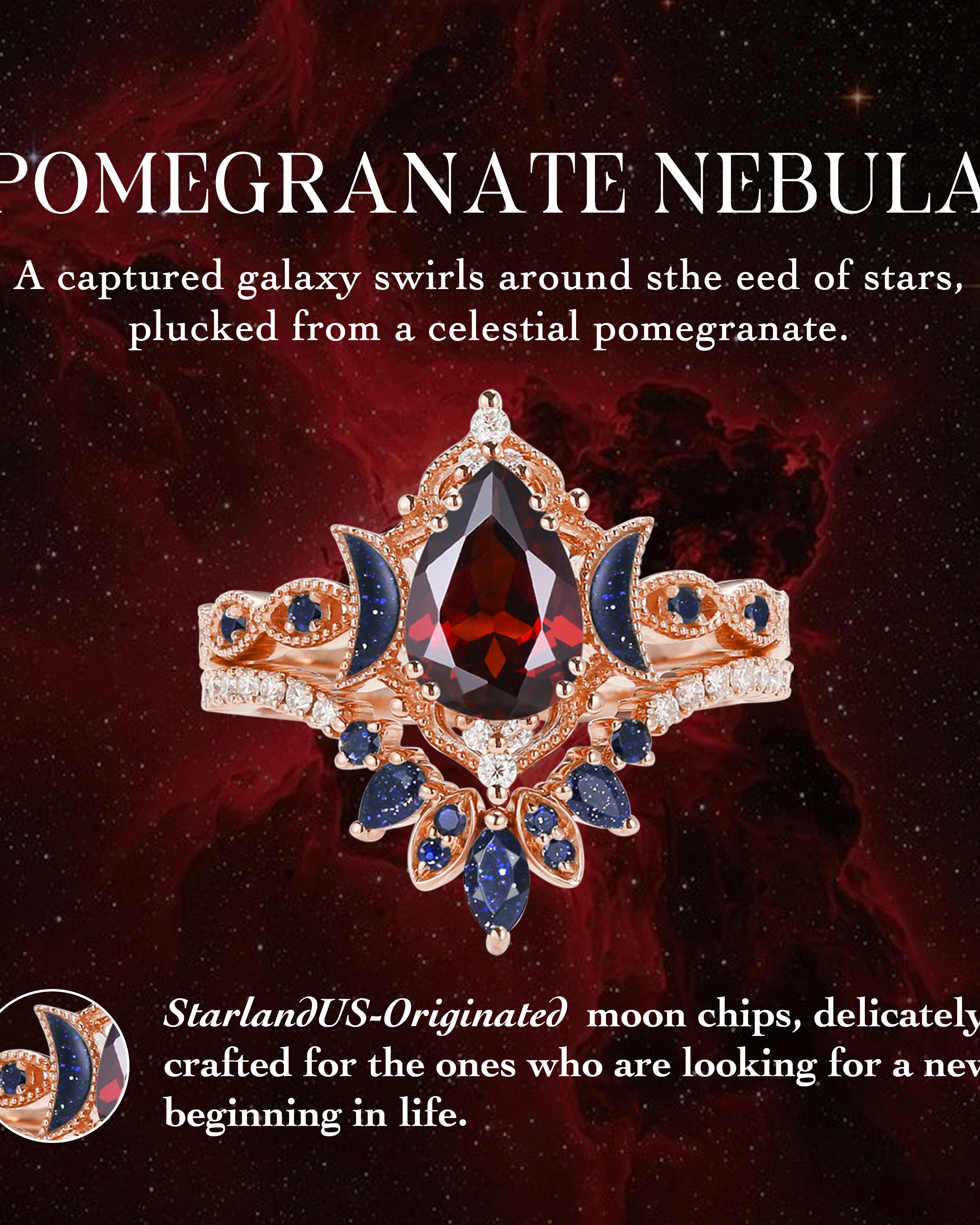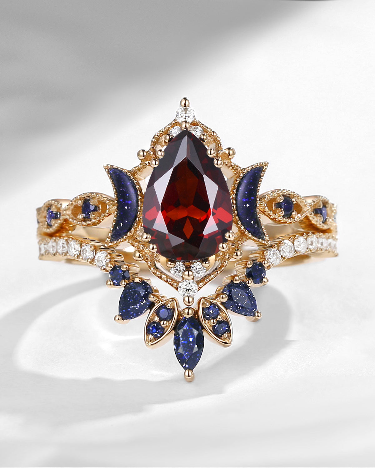 Crescent Moon | Pear Cut Garnet 'Ultra Galaxy' Engagement Ring Set 2pcs