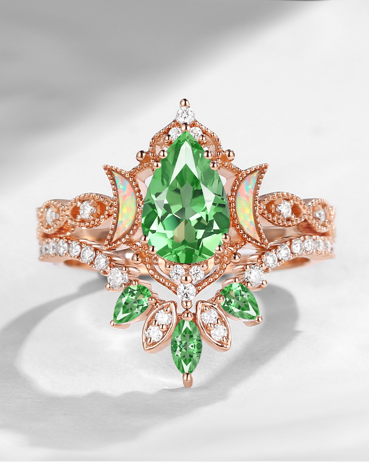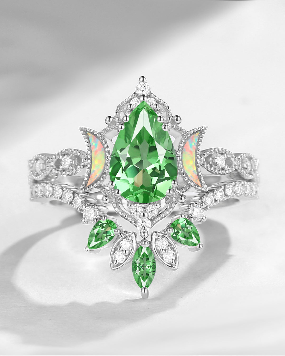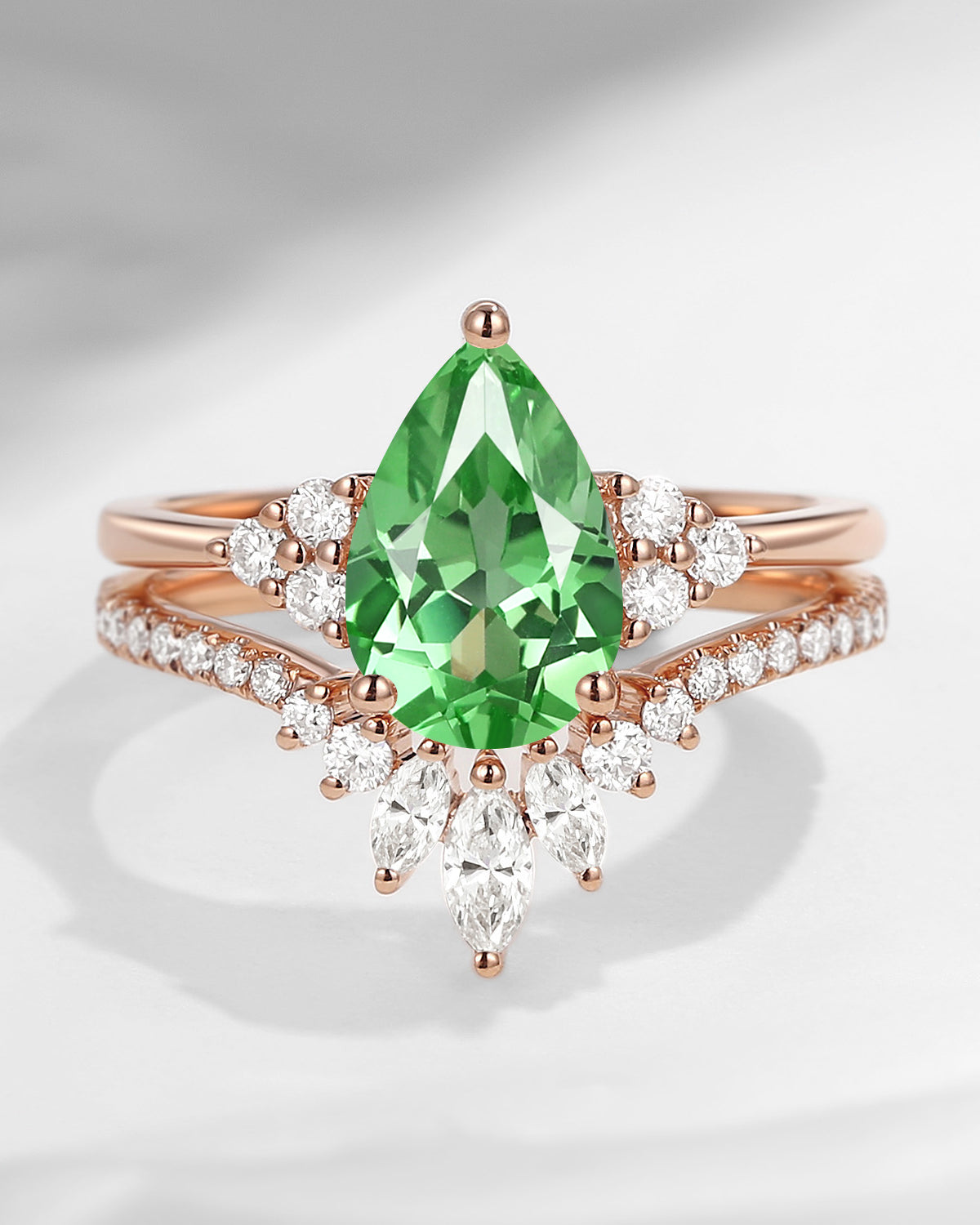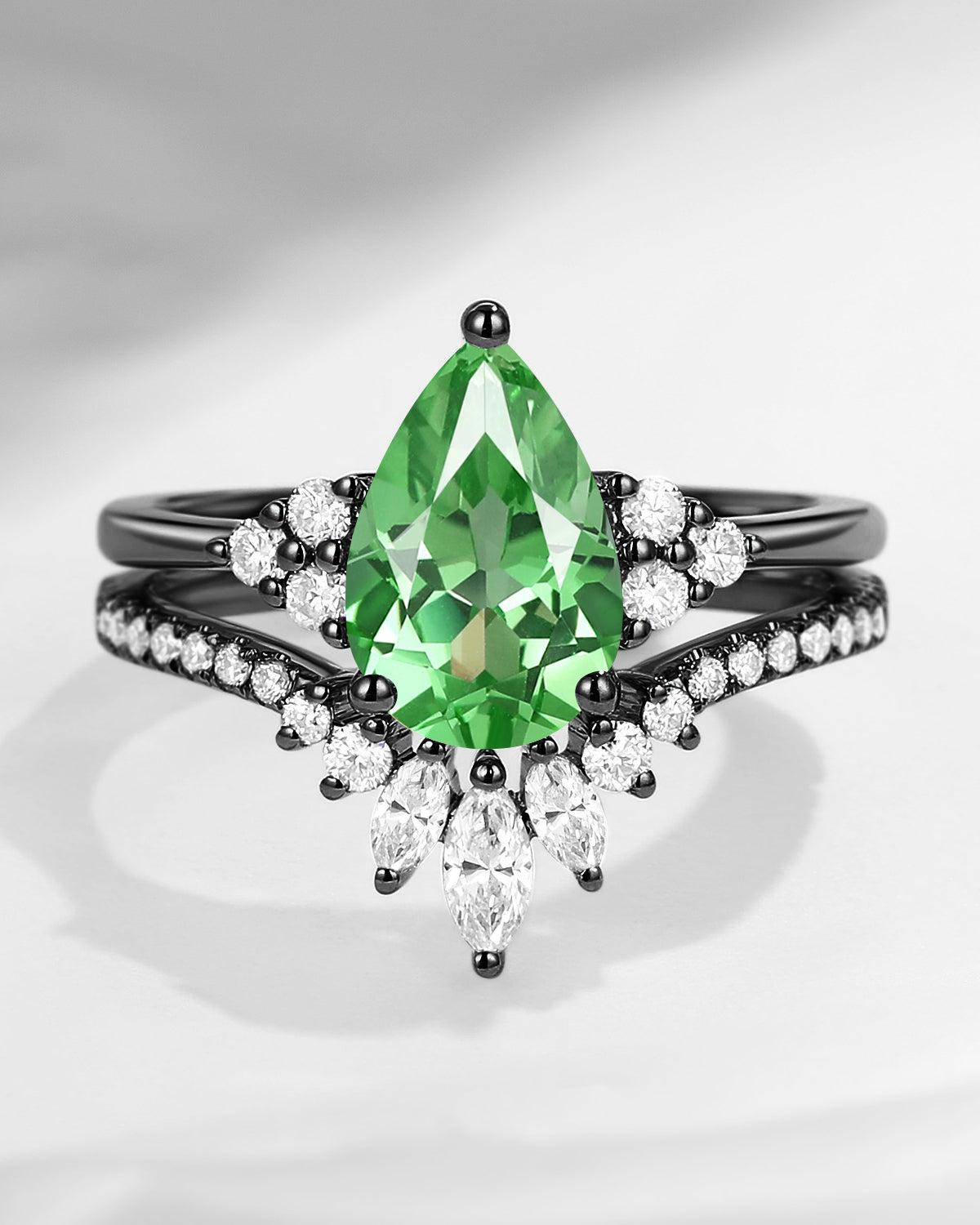 1.5ct Pear Cut Unique Lab Tsavorite Engagement Ring Gemstone Engagement Ring- Eclipse