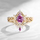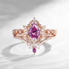 Pear Shaped Pink Moissanite Engagement Ring Unique Crescent Ring Moon Wedding Ring Vine Boho Ring Cluster Bridal Set 2pcs Galaxy