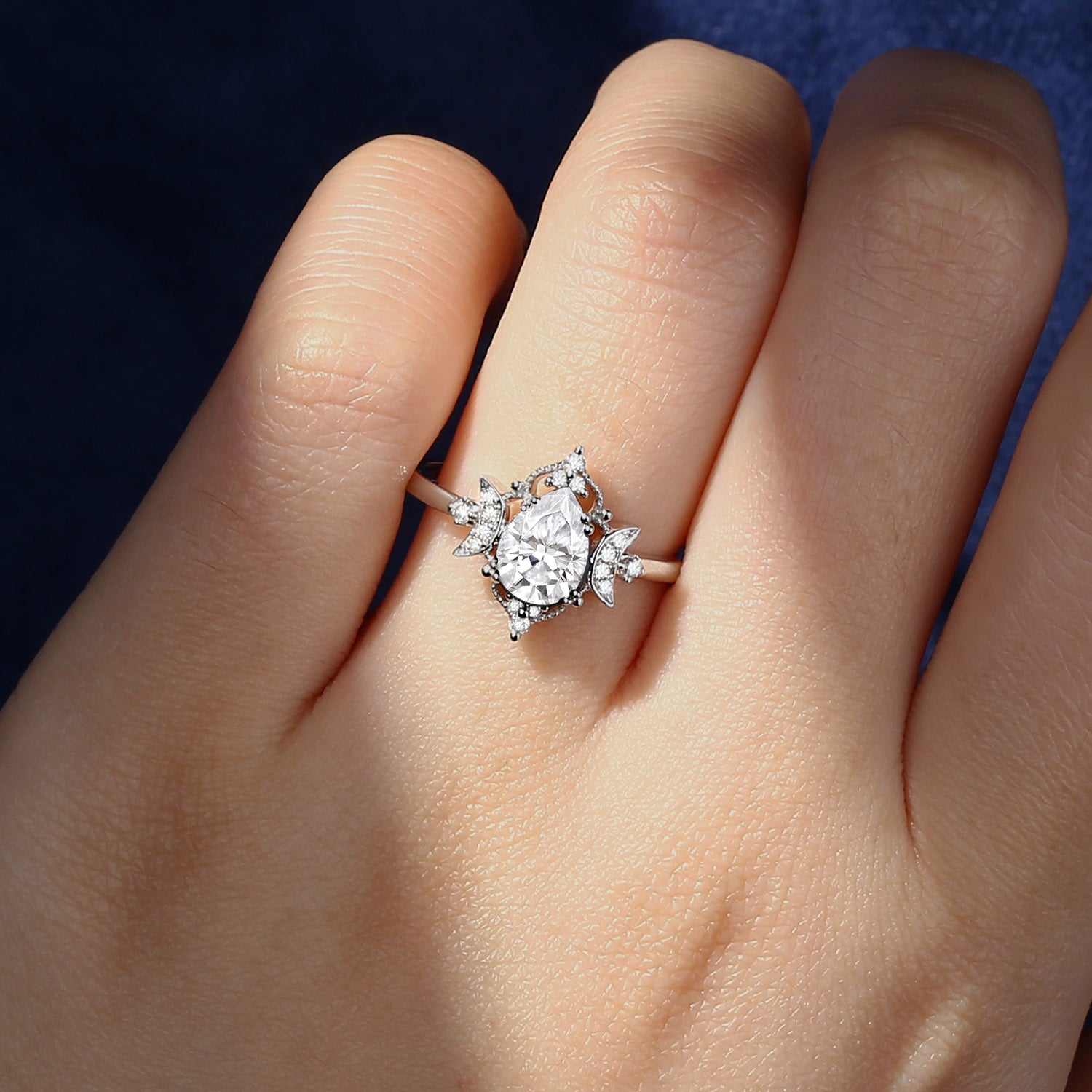 Crescent Moon | 1.2ct Pear Cut Moissanite Engagement Ring