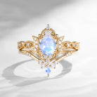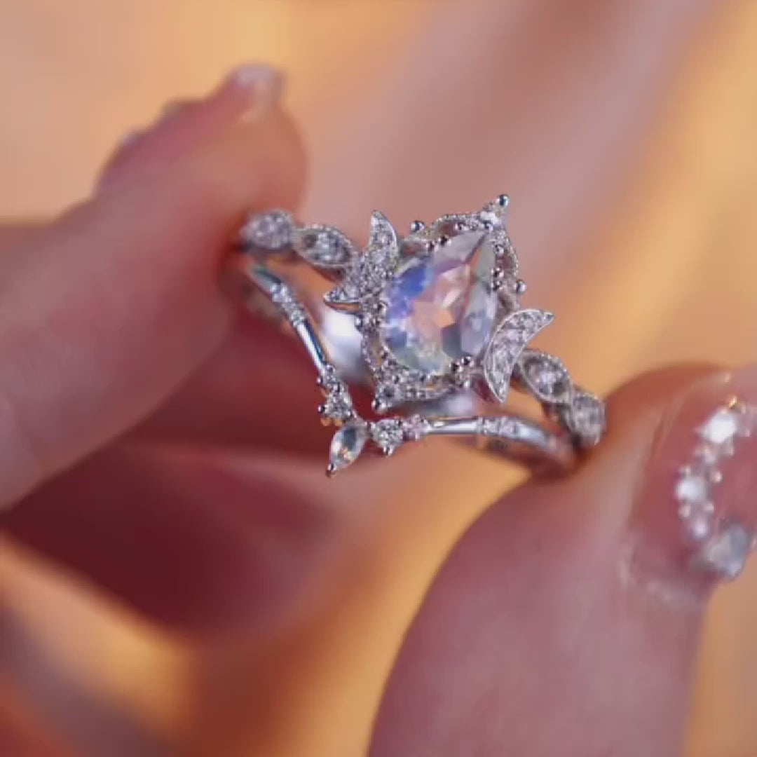 Crescent Moon | Vintage Pear Cut Moonstone Engagement Ring 2pcs - Luna