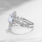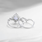 Unique 1.5ct Pear Shaped Moonstone Crescent Moon Engagement Ring Set 2pcs - Luna