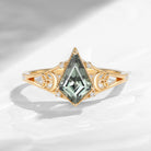 Select moreCeltic Moon | Kite Cut Lab Teal Sapphire 'Celestial Moon' Split Band Engagement Ring