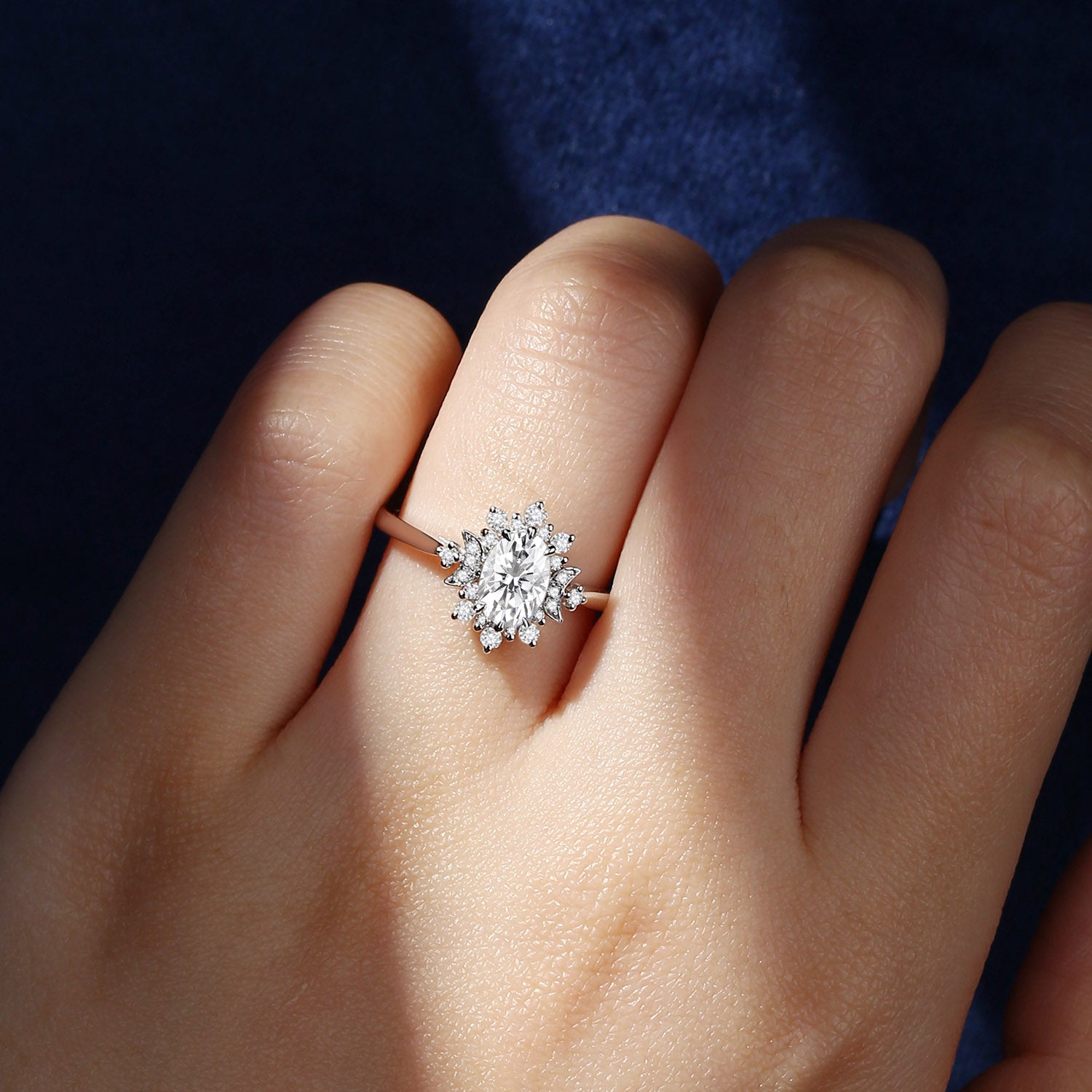 Crescent Moon | Oval Halo Moissanite Engagement Ring - Moonlight In Vermont