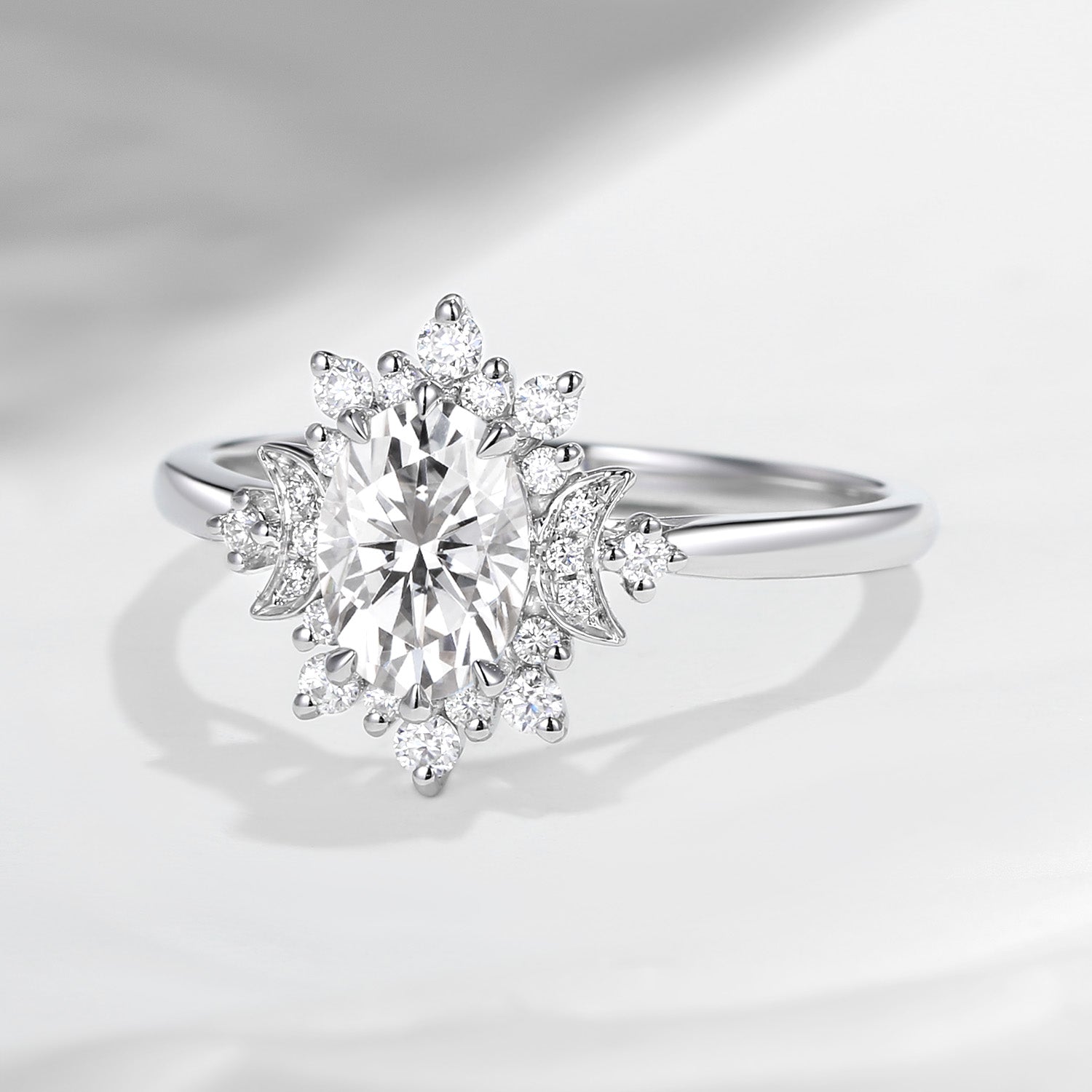 Crescent Moon | Oval Halo Moissanite Engagement Ring- Moonlight In Vermont