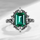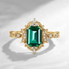 Crescent Moon | Art Deco Emerald Cut Lab Emerald Engagement Ring