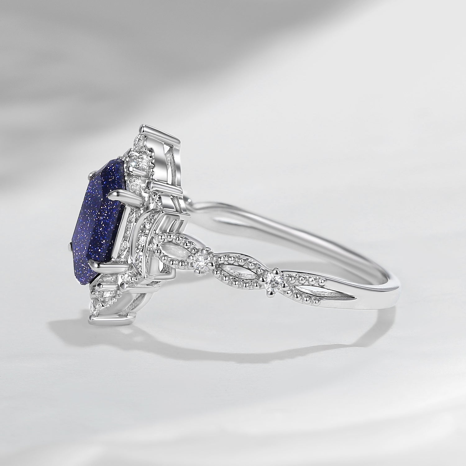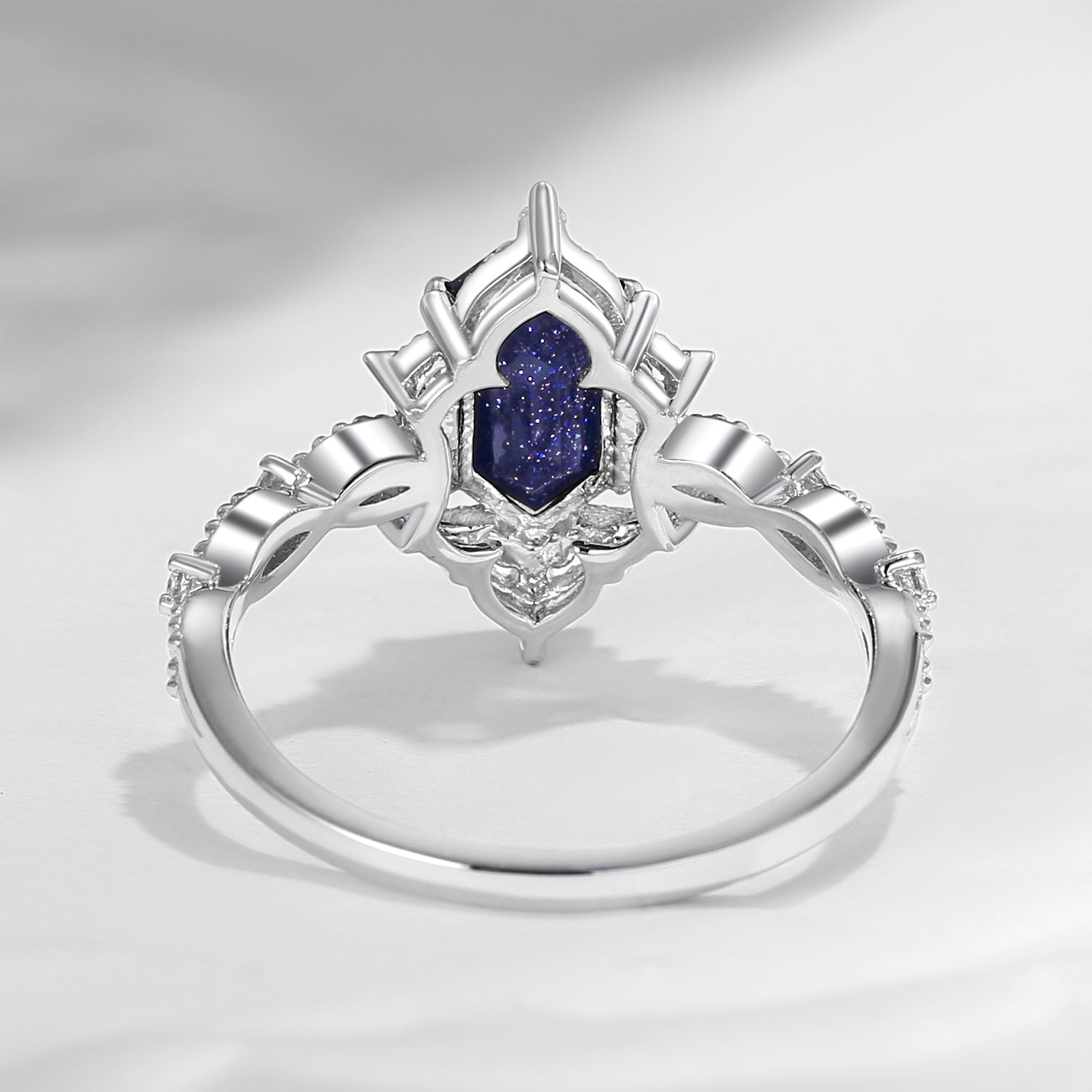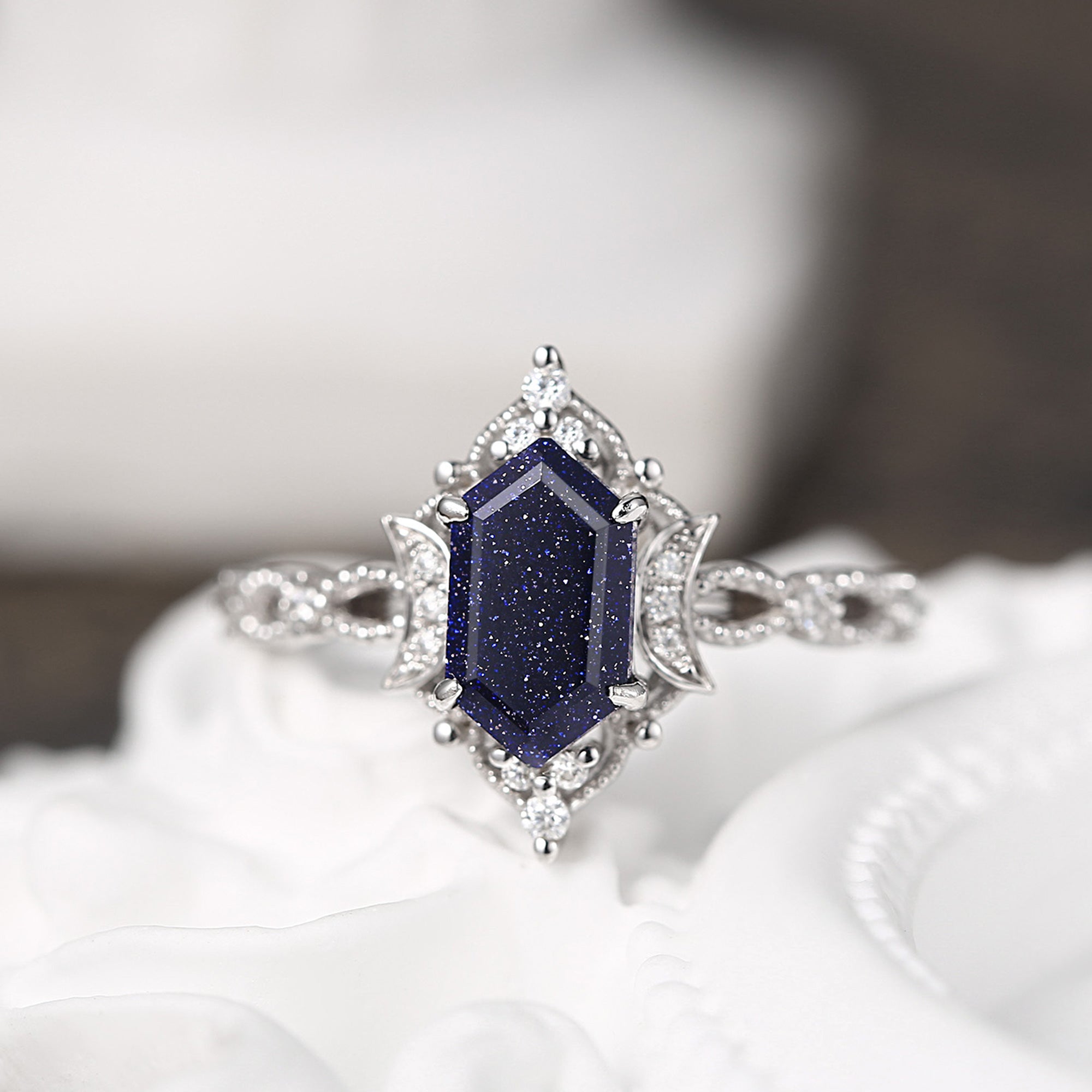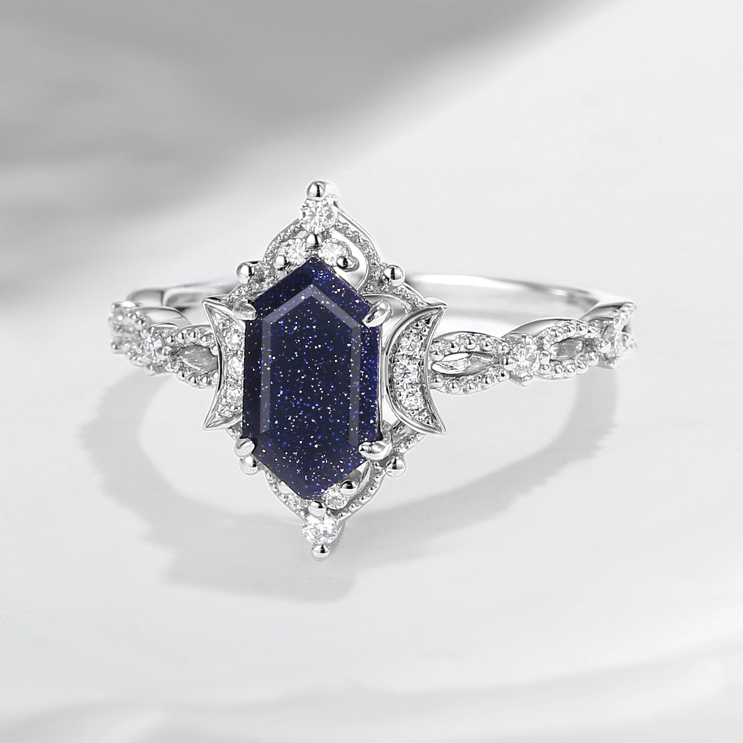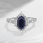 Crescent Moon | Fancy Long Hexagon Blue Sandstone Engagement Ring