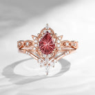 Crescent Moon | Fantasy Cut Pear Garnet Engagement Ring Set 2pcs - Luna