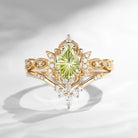 Crescent Moon | Fantasy Cut Pear Peridot Engagement Ring Set 2pcs - Luna
