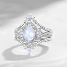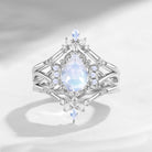 Infinity Engagement Rings 3pcs White Gold Moonstone Ring Unique Crescent Ring Vintage Inspired Pear Shaped Moon Ring Vine Bridal Set 3pcs