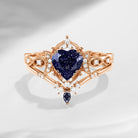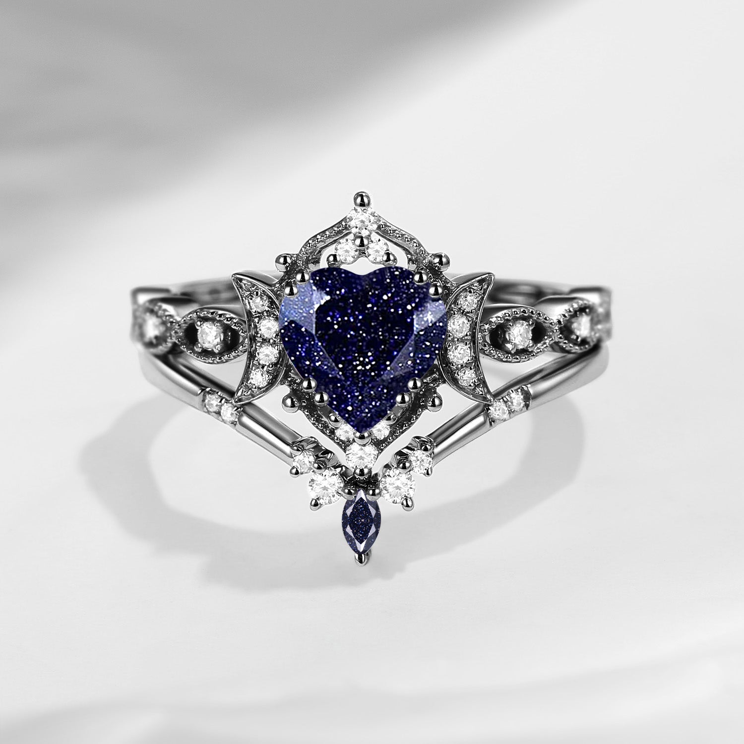 Crescent Moon | Heart Shaped Blue Sandstone Engagement Ring Set 2pcs - Luna