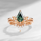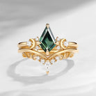 Crescent Moon | Kite Shaped Art Deco Natural Teal Sapphire Engagement Ring Set 2pcs
