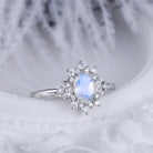 Moonstone Engagement Ring Cluster Rose Gold Wedding Ring Oval Halo Flower Vine Ring Star Snowflake Mini Ring Plain Stacking Band Gift Unique