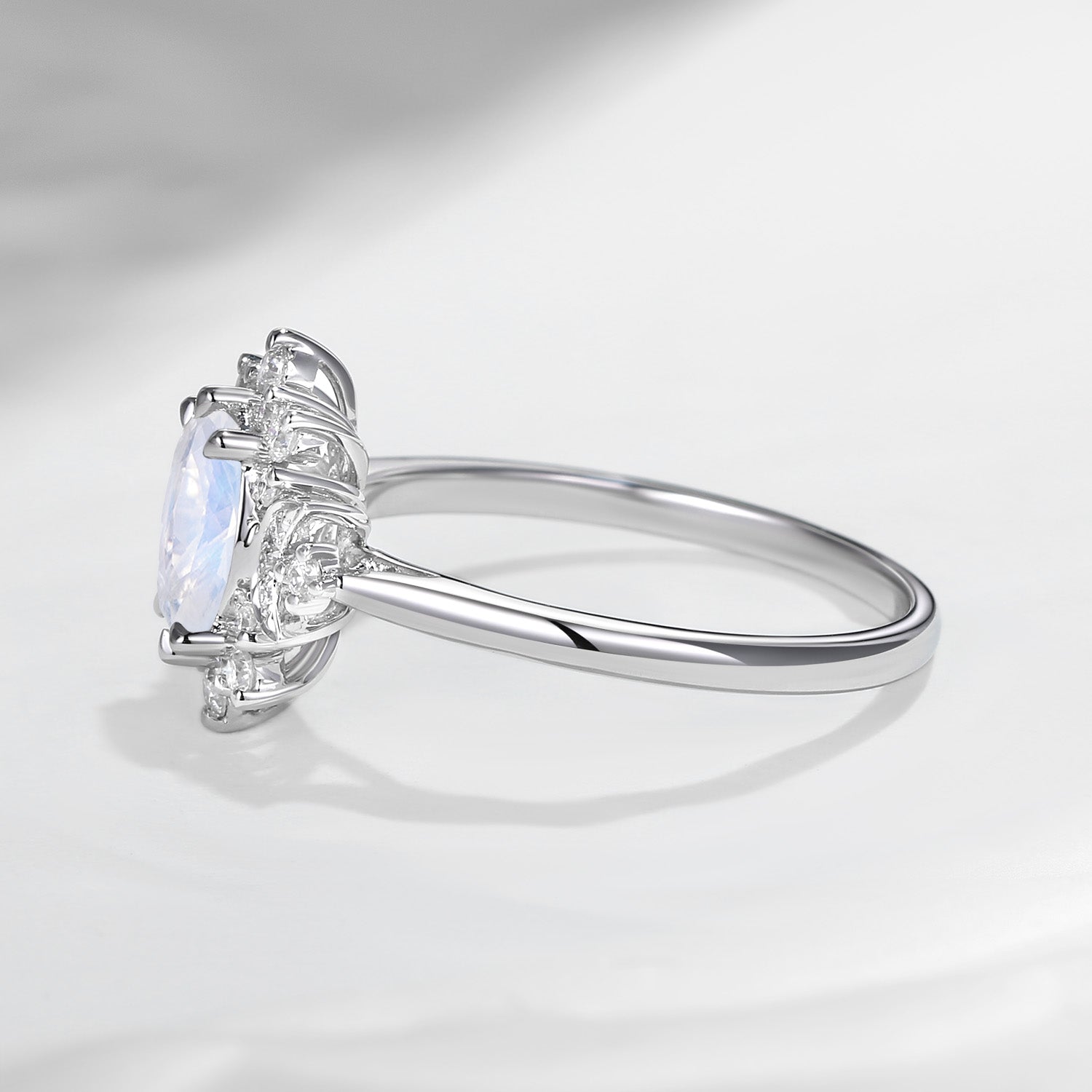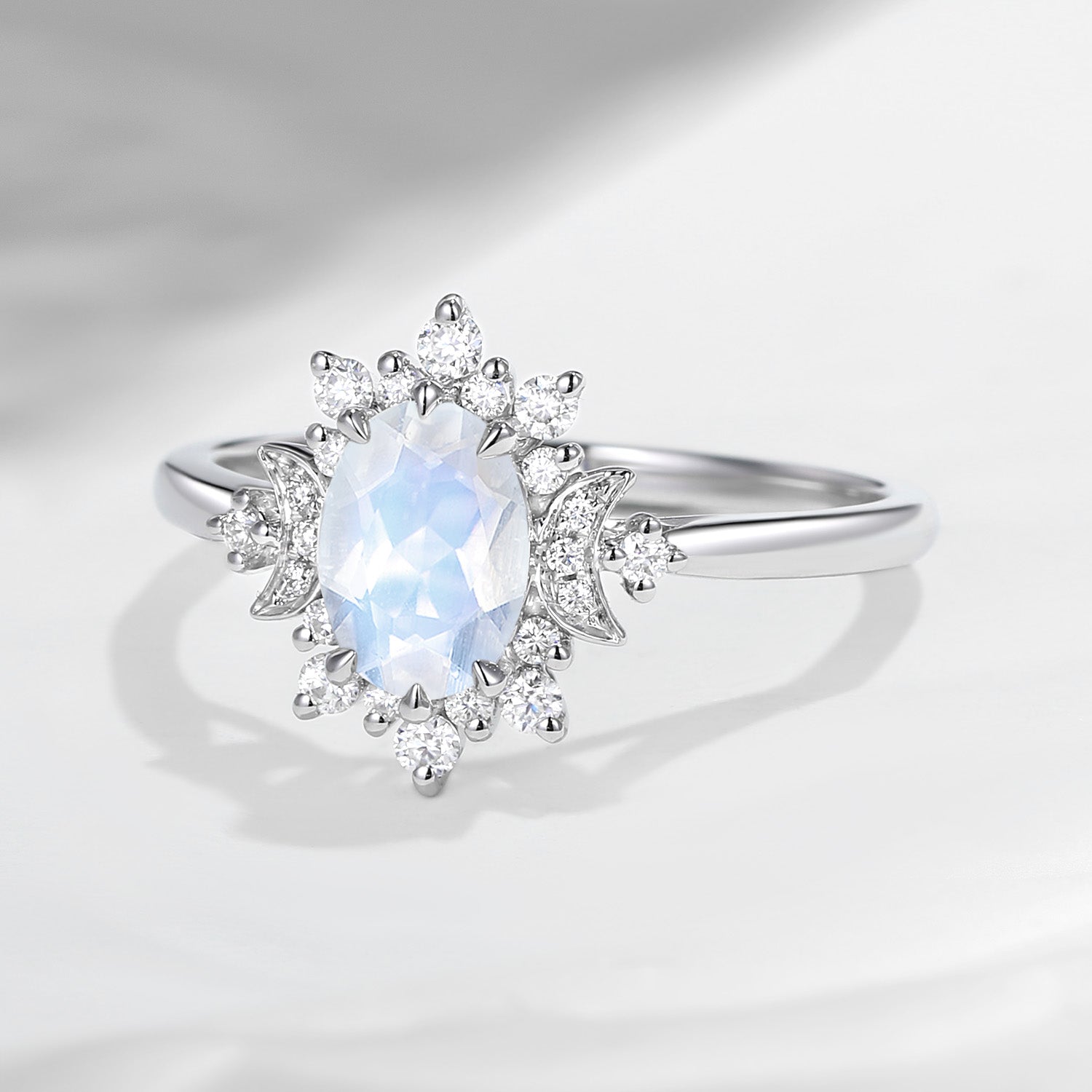 Crescent Moon | Oval Snowflake Halo Moonstone Engagement Ring - Moonlight In Vermont