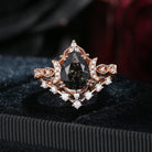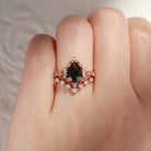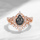 Crescent Moon | Pear Cut Black Rutilated Quartz Galaxy Engagement Ring Set 2PCS