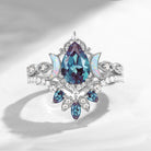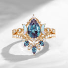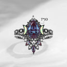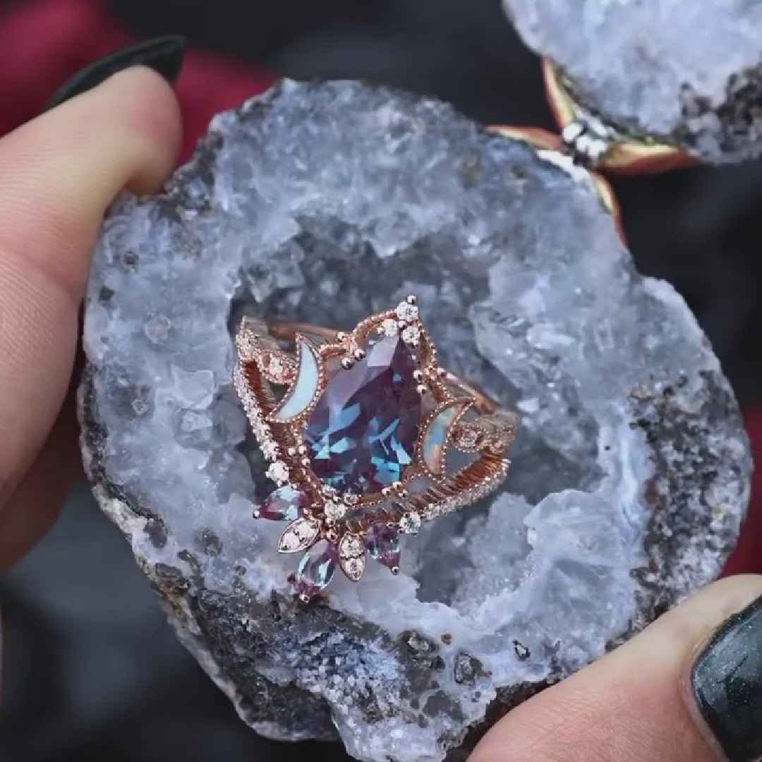 Select moreCrescent Moon | Pear Cut Lab Alexandrite 'Ultra Galaxy' Engagement Ring Set 2pcs