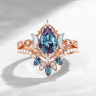 Pear Cut Lab Alexandrite Engagement Ring Infinity Ring Vintage Style Cluster Moon Wedding Ring Set 2pcs