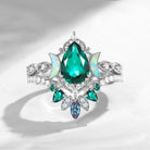 Crescent Moon | Pear Cut Lab Emerald 'Ultra Galaxy' Lab Opal Engagement Ring Set 2pcs