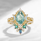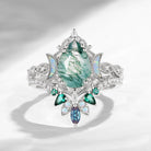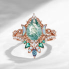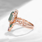 Pear Cut Moss Agate Engagement Ring Infinity Ring Vintage Style Cluster Moon Wedding Ring Set 2pcs