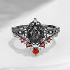 Crescent Moon | Pear Shaped Black Rutilated Quartz Engagement Ring Set 2pcs 18k - Waning Moon