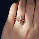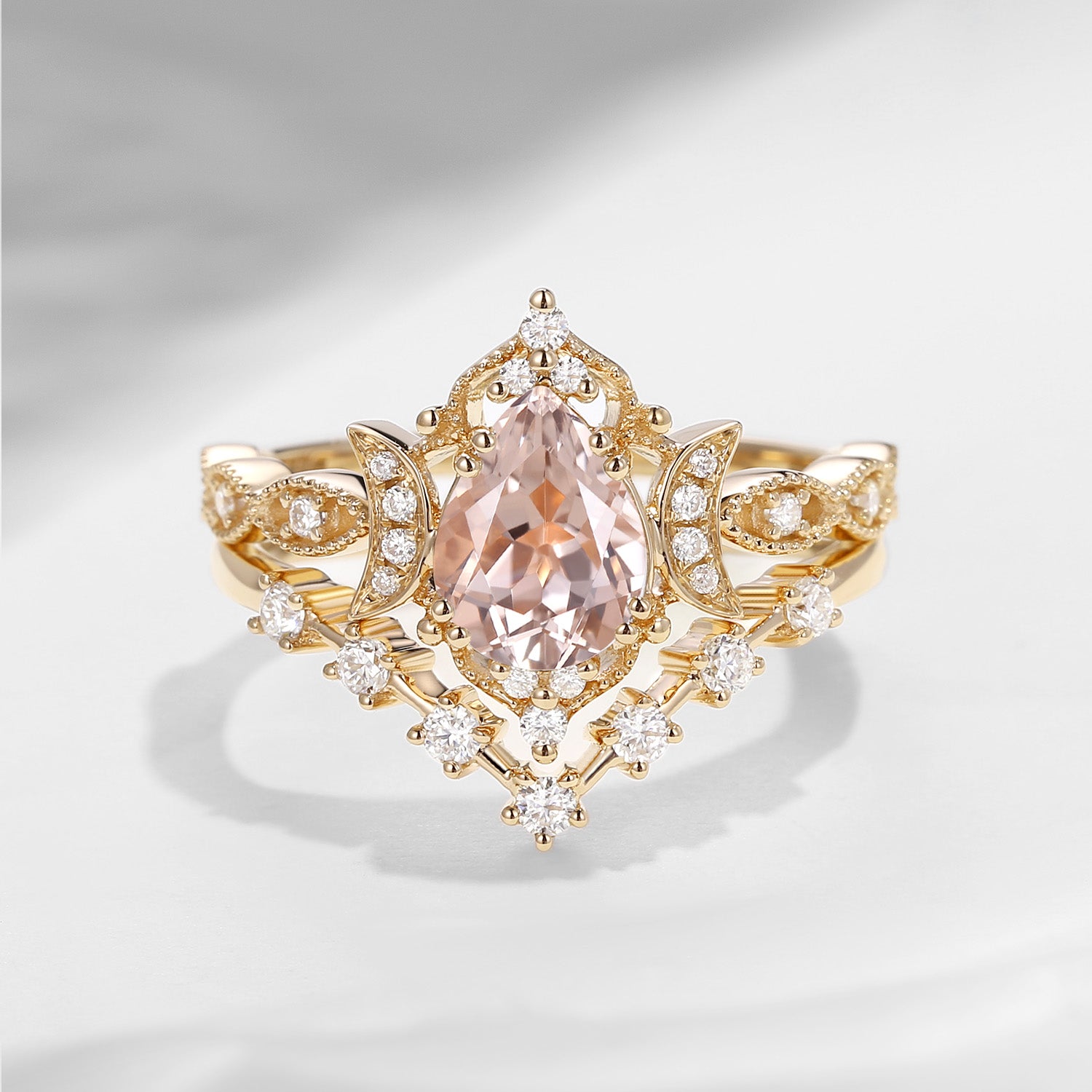 Crescent moon | Pear Shaped Morganite Engagement Ring Set 2PCS