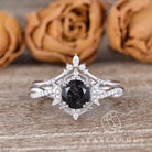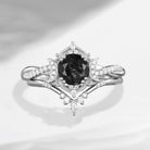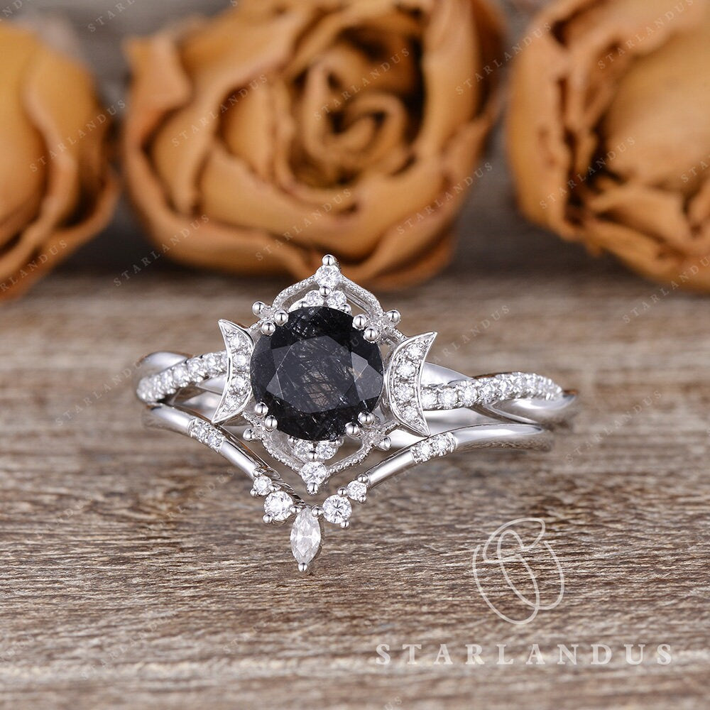 Round Cut Infinity Black Rutilated Quartz Bridal Set White Gold Black Rutilated Quartz Ring Boho Art Deco Ring