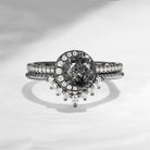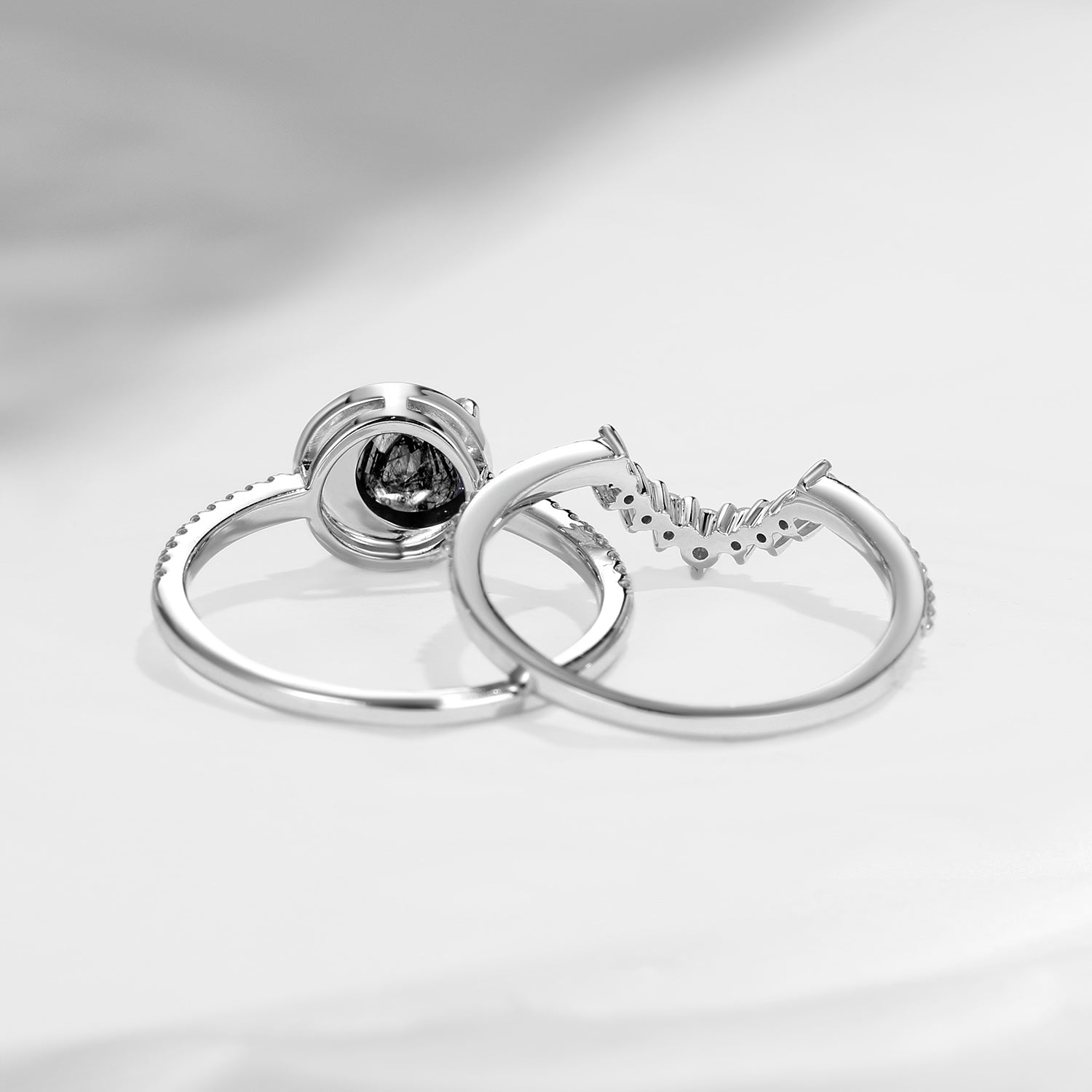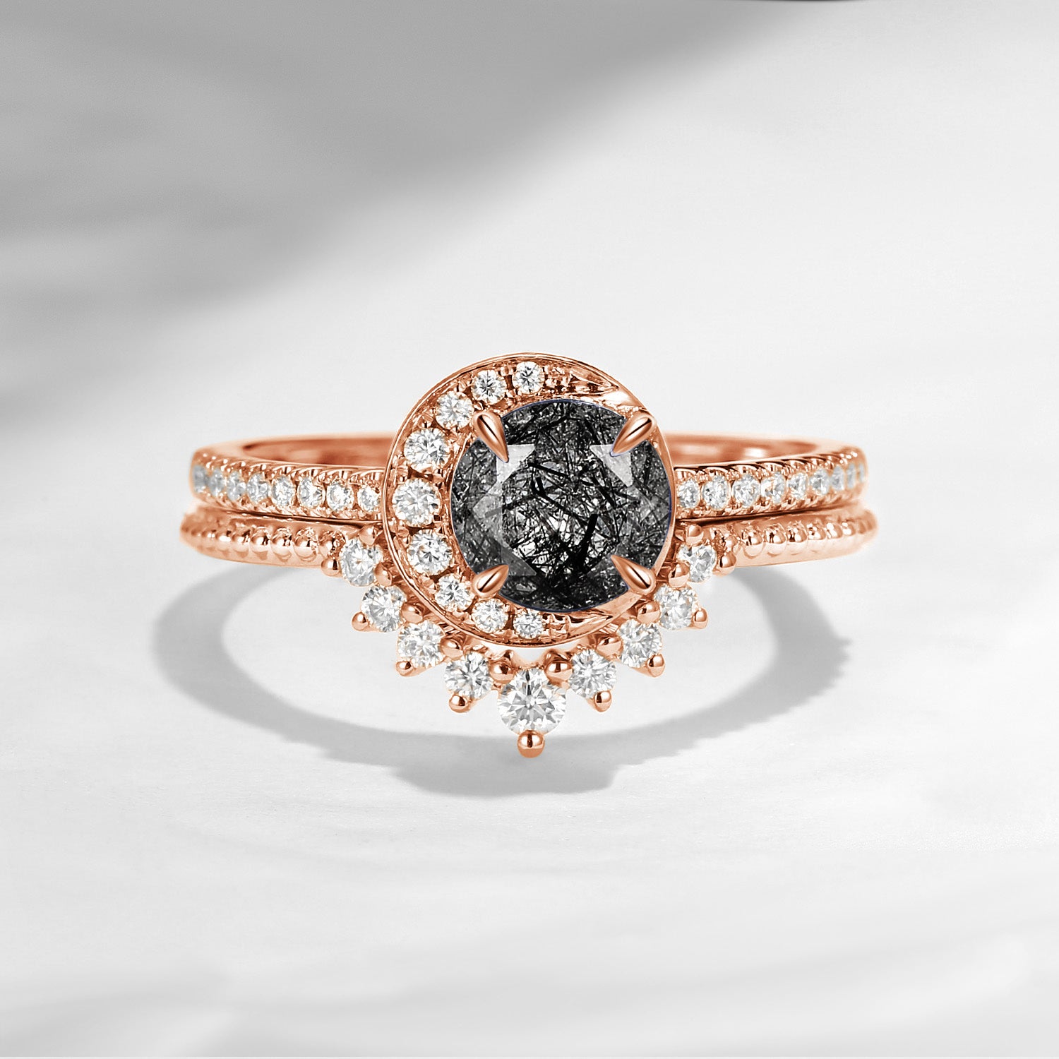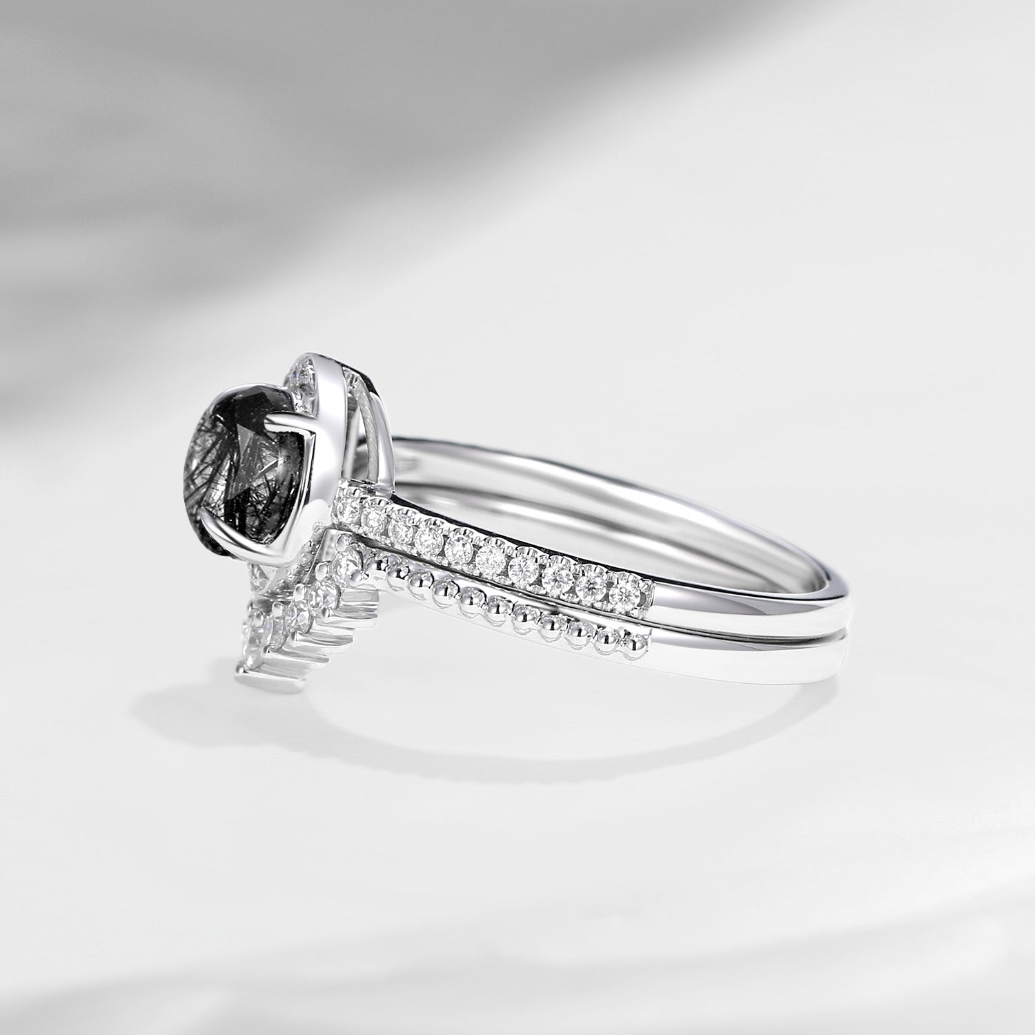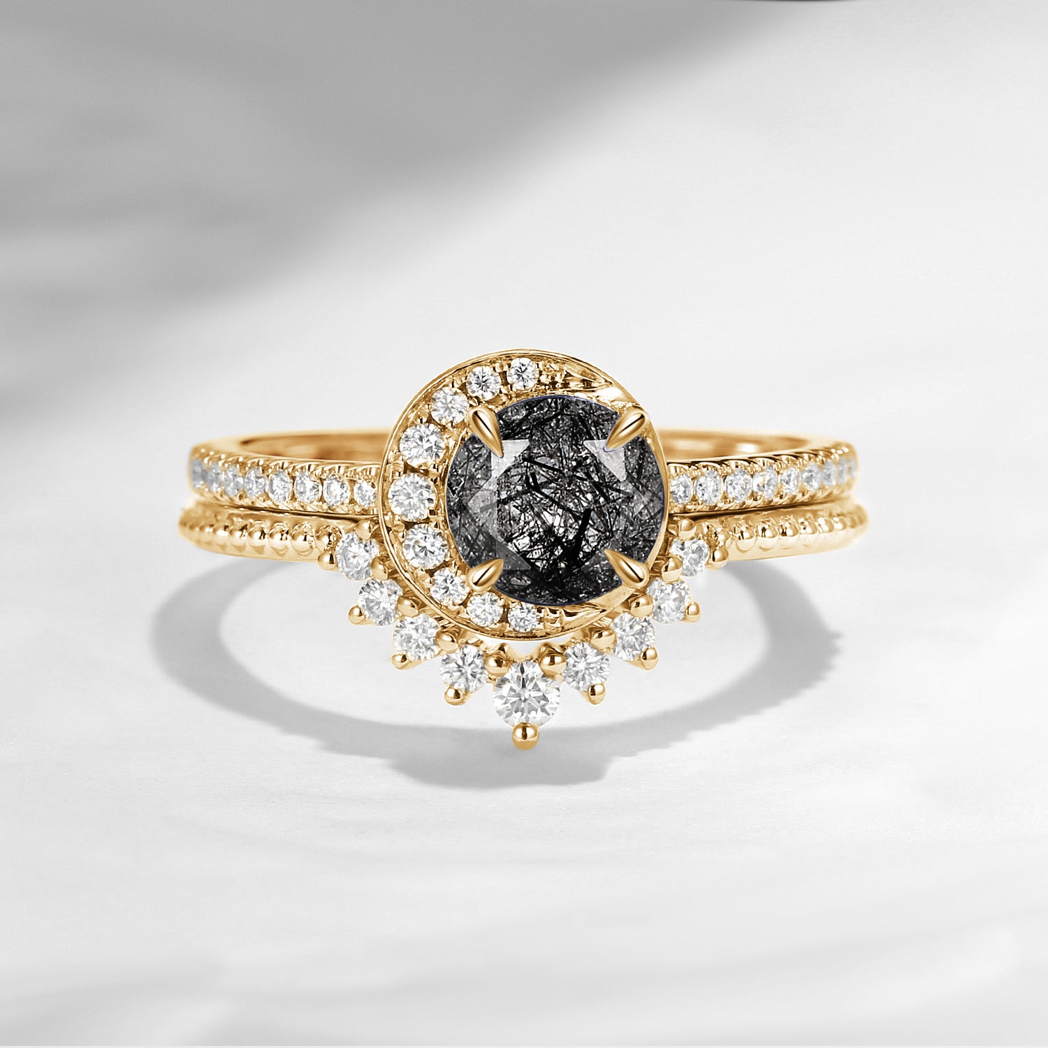 Crescent Moon | Unique Black Rutilated Quartz Engagement Ring Set 2pcs - Full Moon