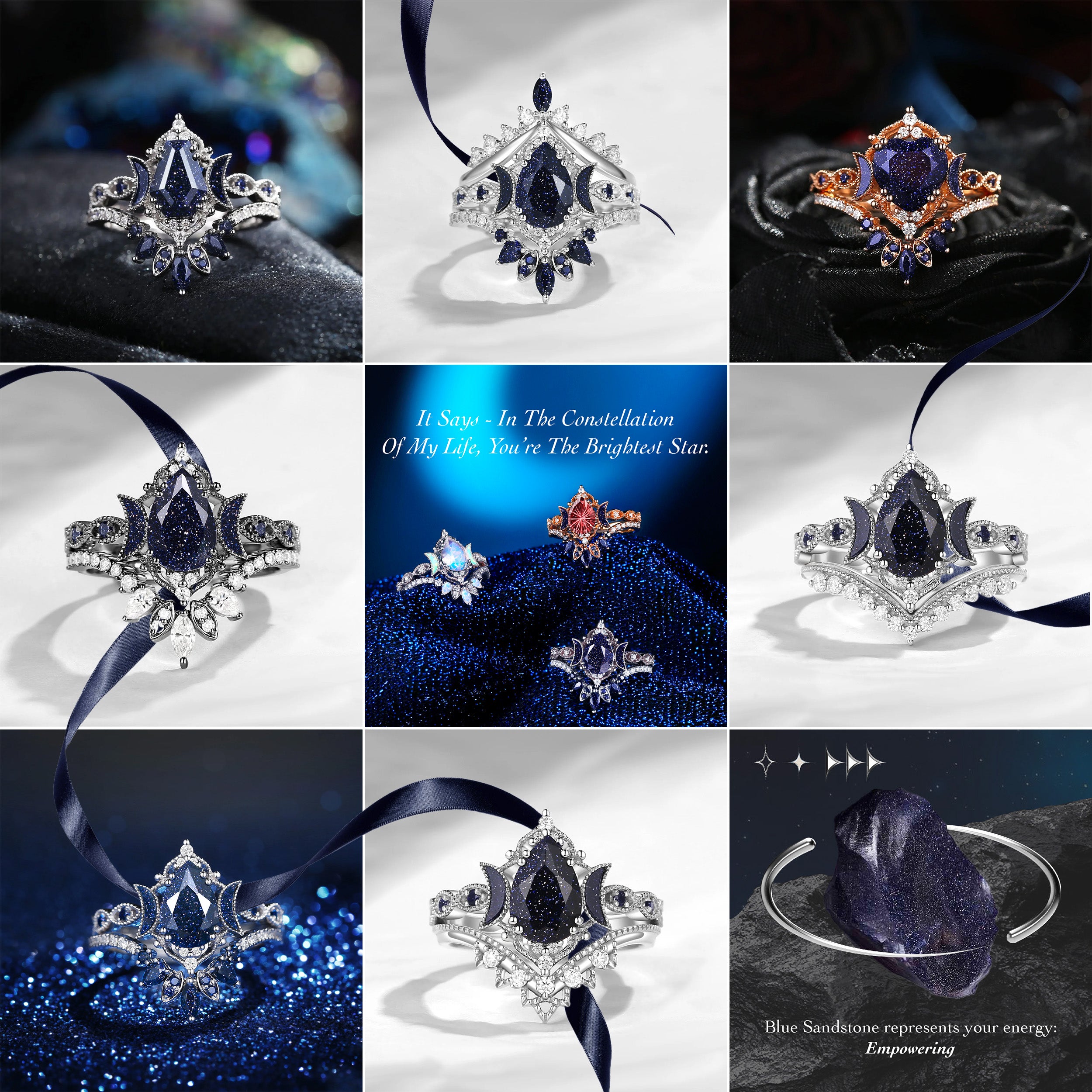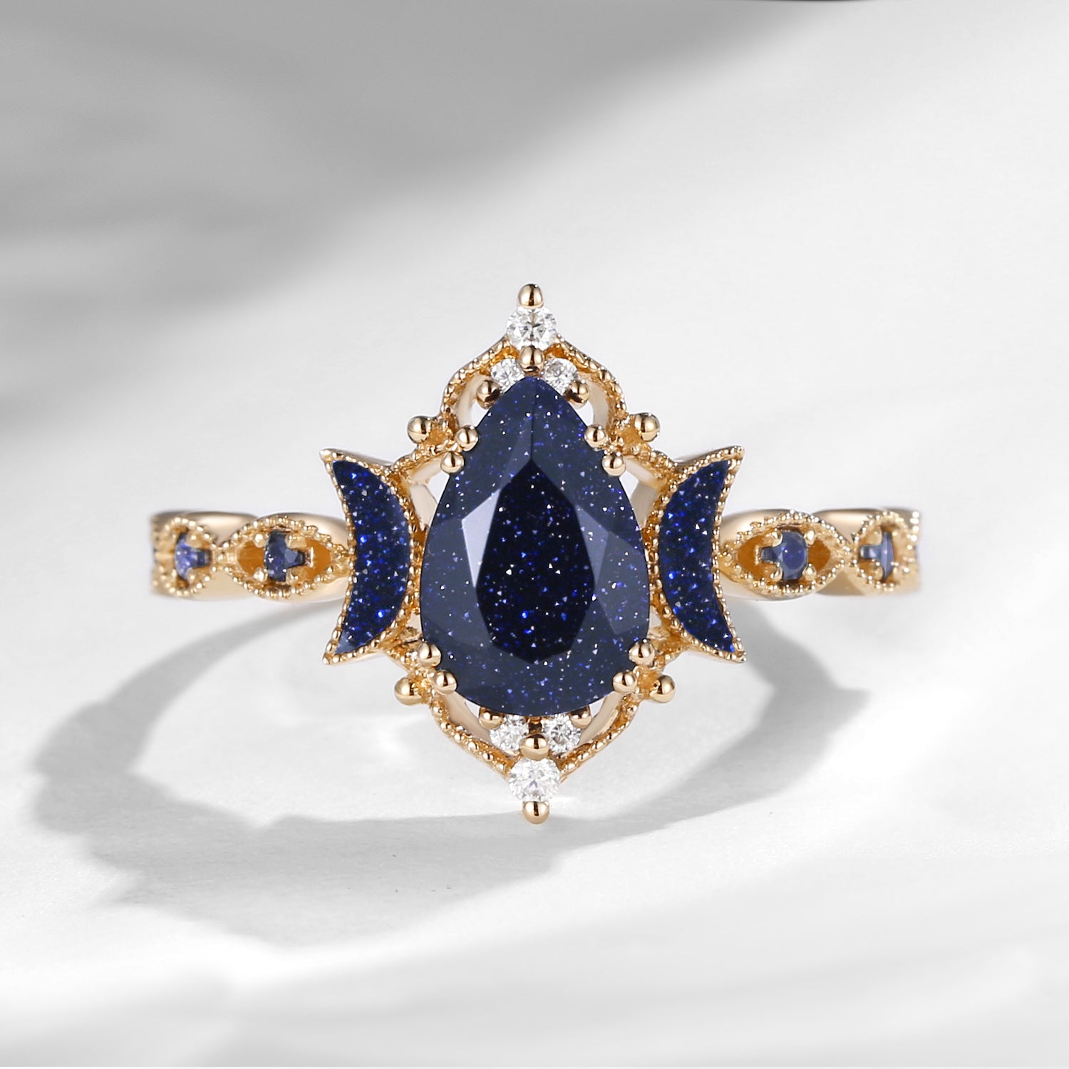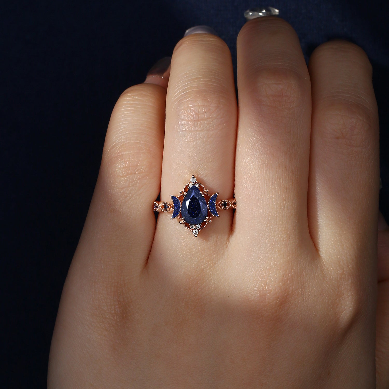 Crescent Moon | Unique Blue Sandstone Engagement Ring In Pear Shape