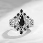 Crescent Moon | Unique Coffin Black Moissanite Celtic Infinity Engagement Ring Set 3pcs