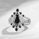 Crescent Moon | Celtic Unique Coffin Black Moissanite Infinity Engagement Ring Set 3pcs