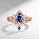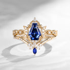 Crescent Moon | Unique Coffin Cut Lab Sapphire Engagement Ring Set 2pcs - Luna