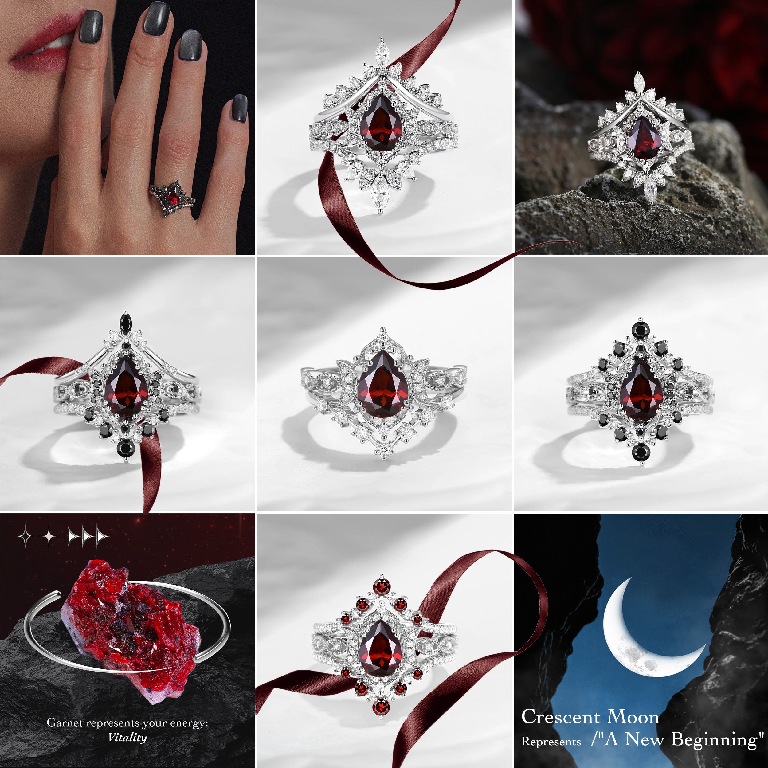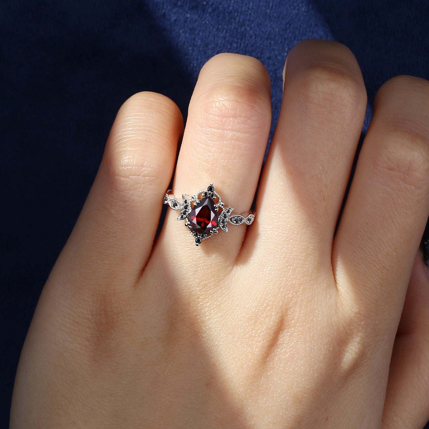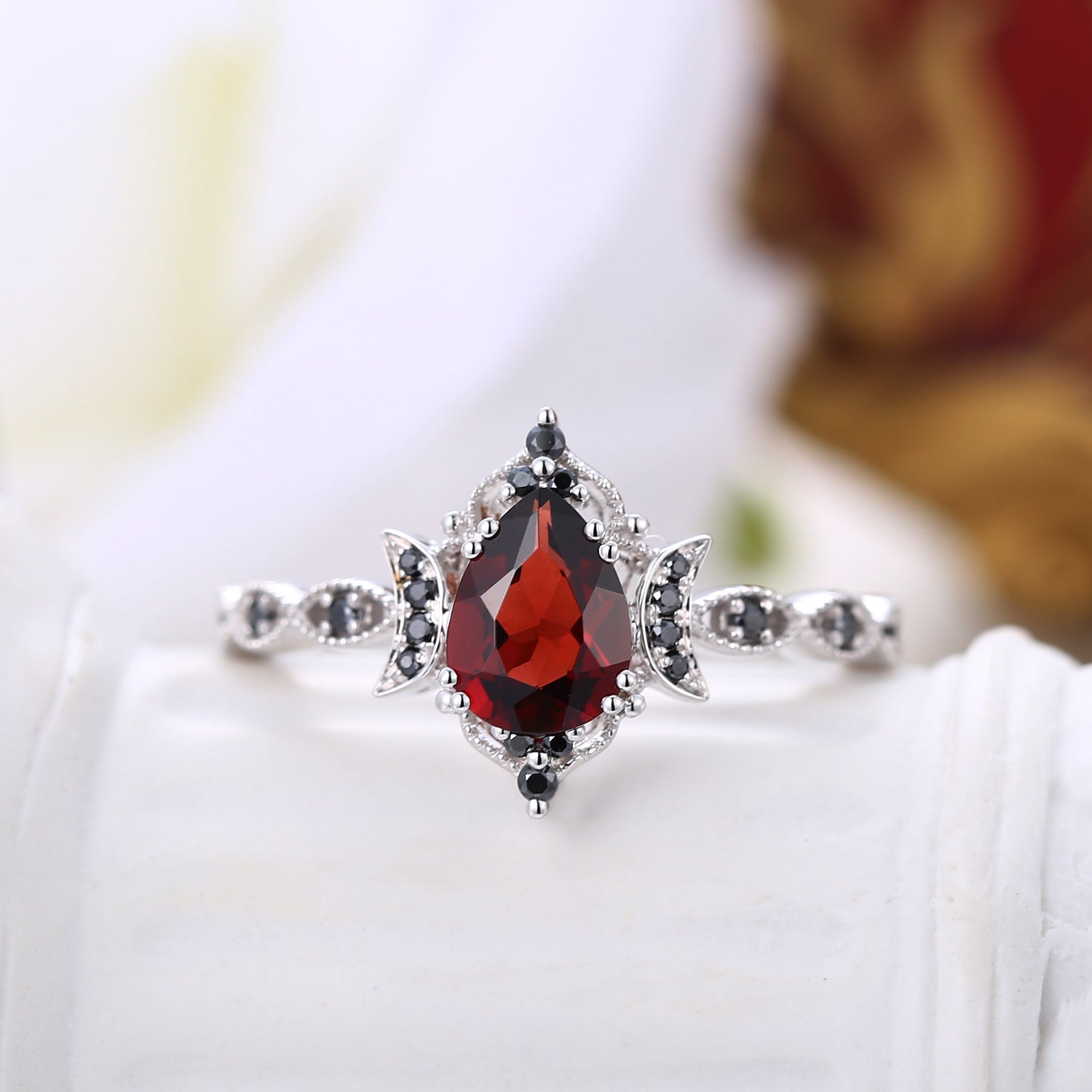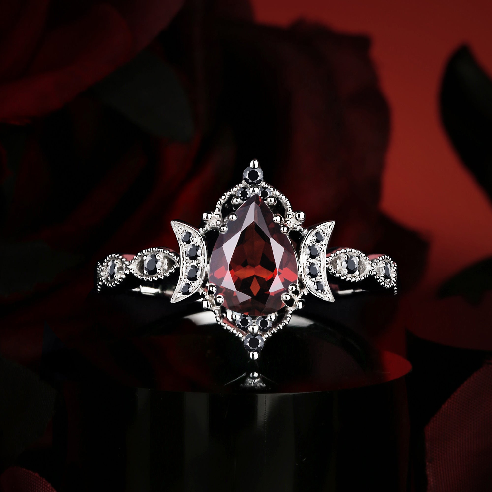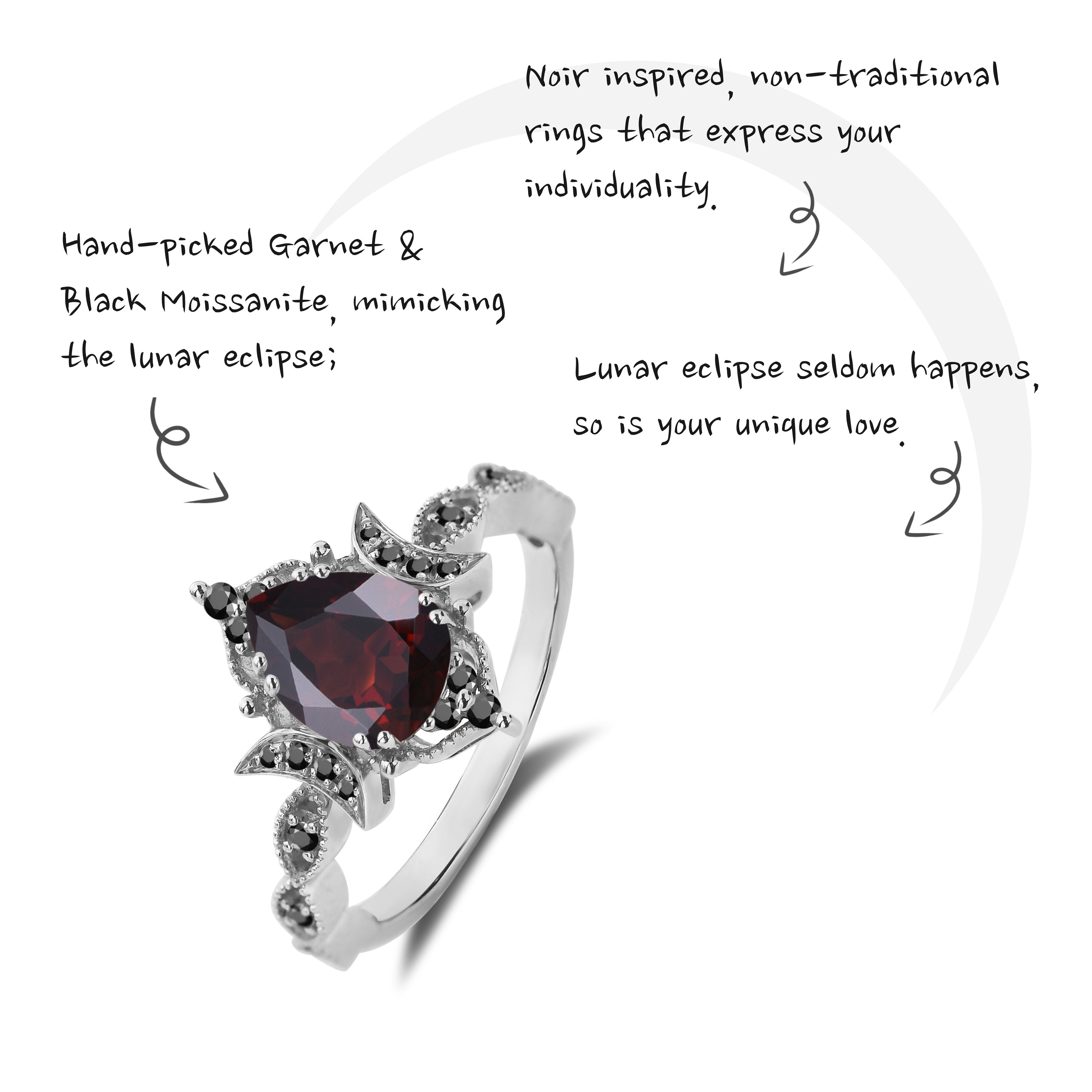 Crescent Moon | Unique Garnet Engagement Ring In Pear Shape - Eclipse