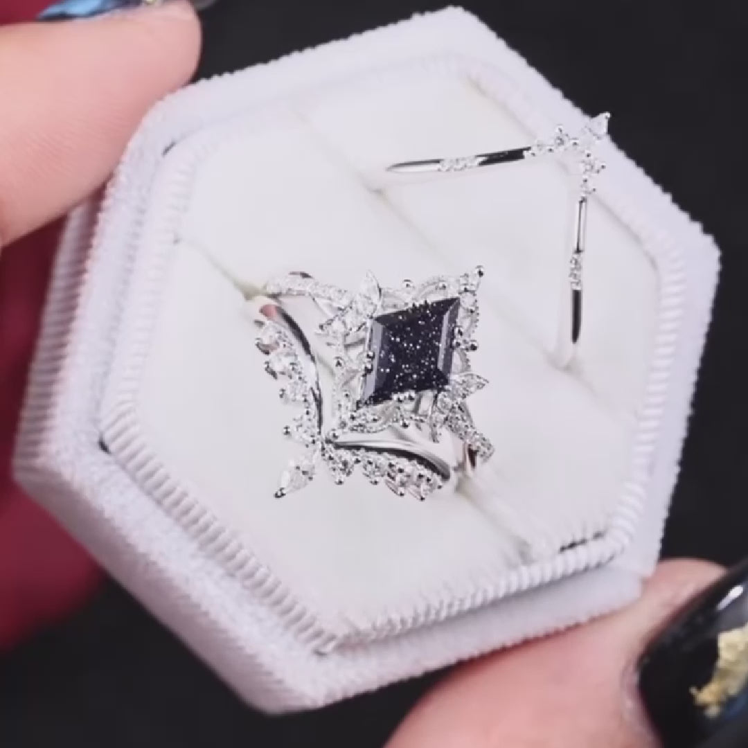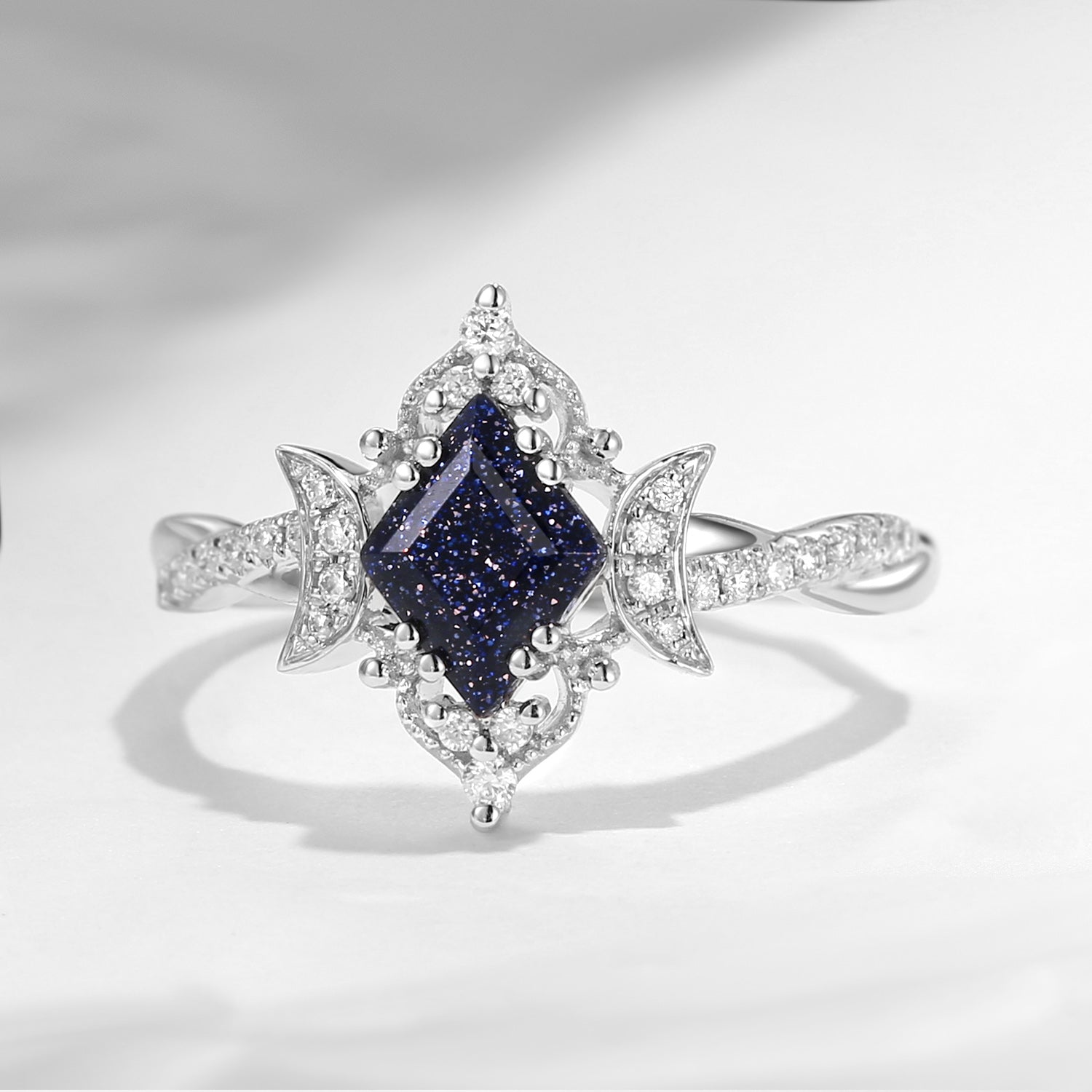 Kite Blue Sandstone Engagement Ring Infinity Ring Vintage Style Cluster Moon Wedding Ring