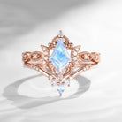 Crescent Moon | Unique Kite Cut Moonstone Engagement Ring Set 2pcs - Luna