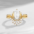 Pure Moon | Fancy Long Hexagon Moissanite Engagement Ring Set 2pcs