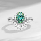 Pure Moon | Fancy Oval Cut Teal Moissanite Engagement Ring Set 2pcs