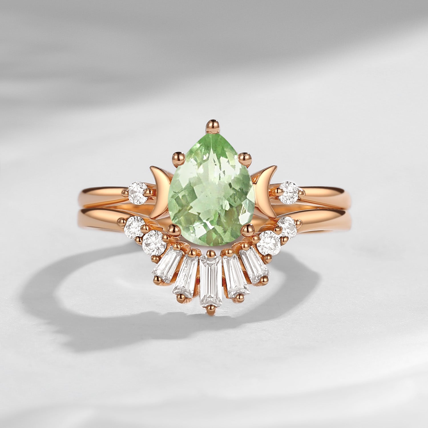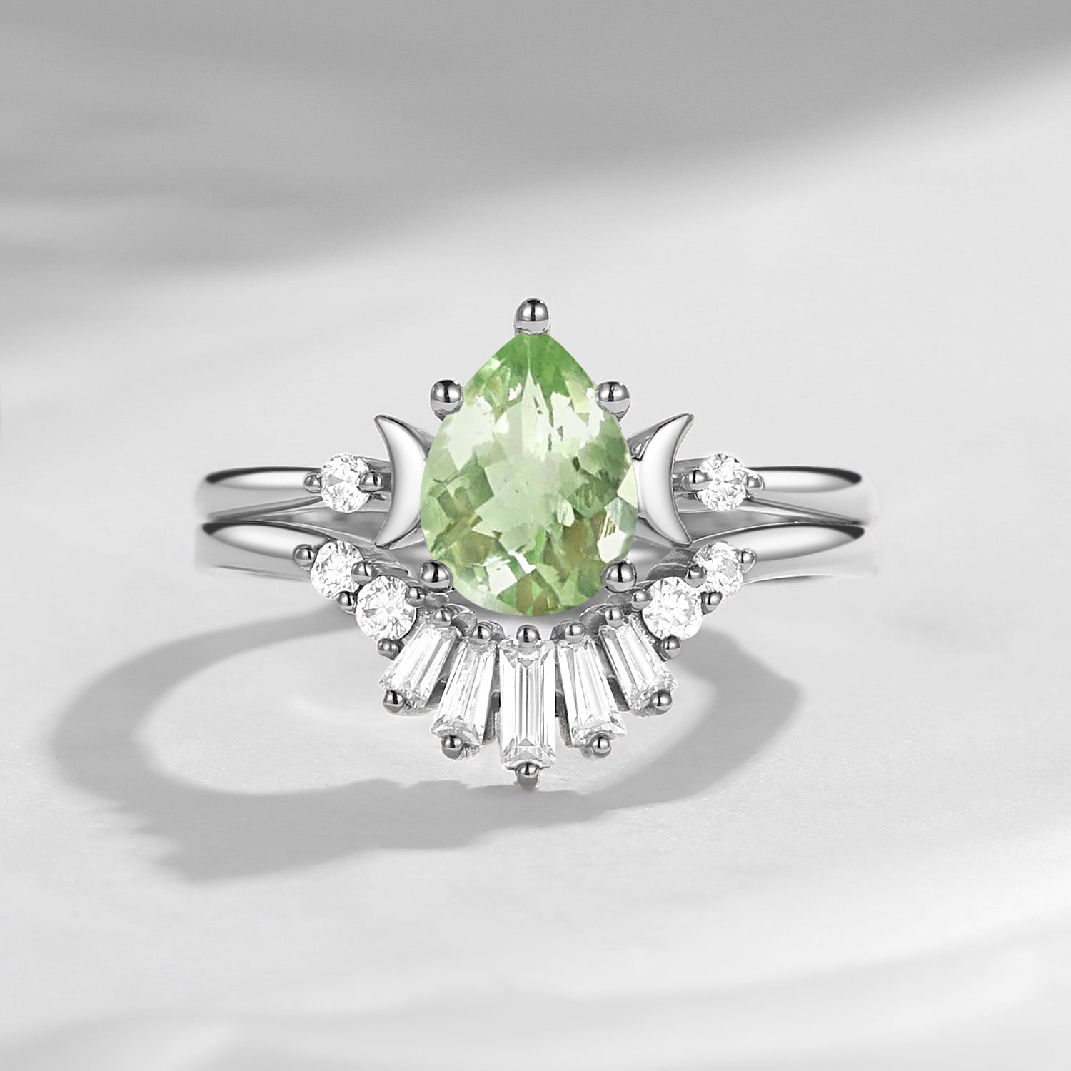 Pure Moon | Fancy Pear Cut Green Amethyst Engagement Ring Set 2pcs