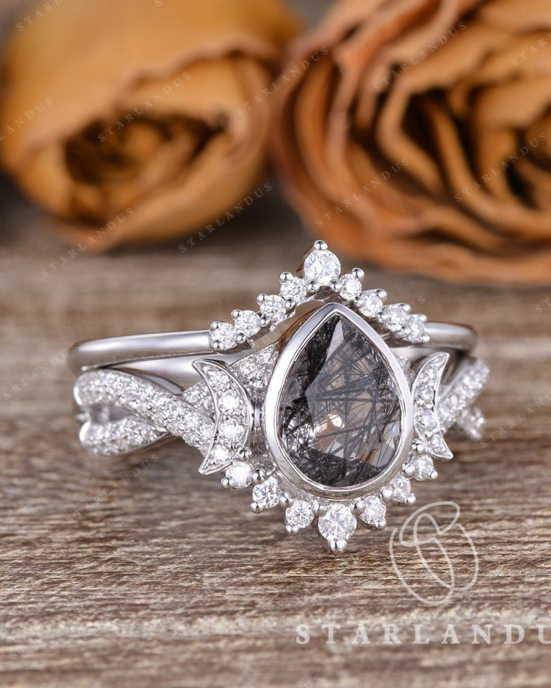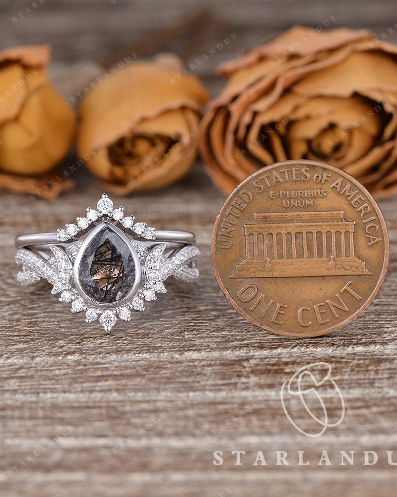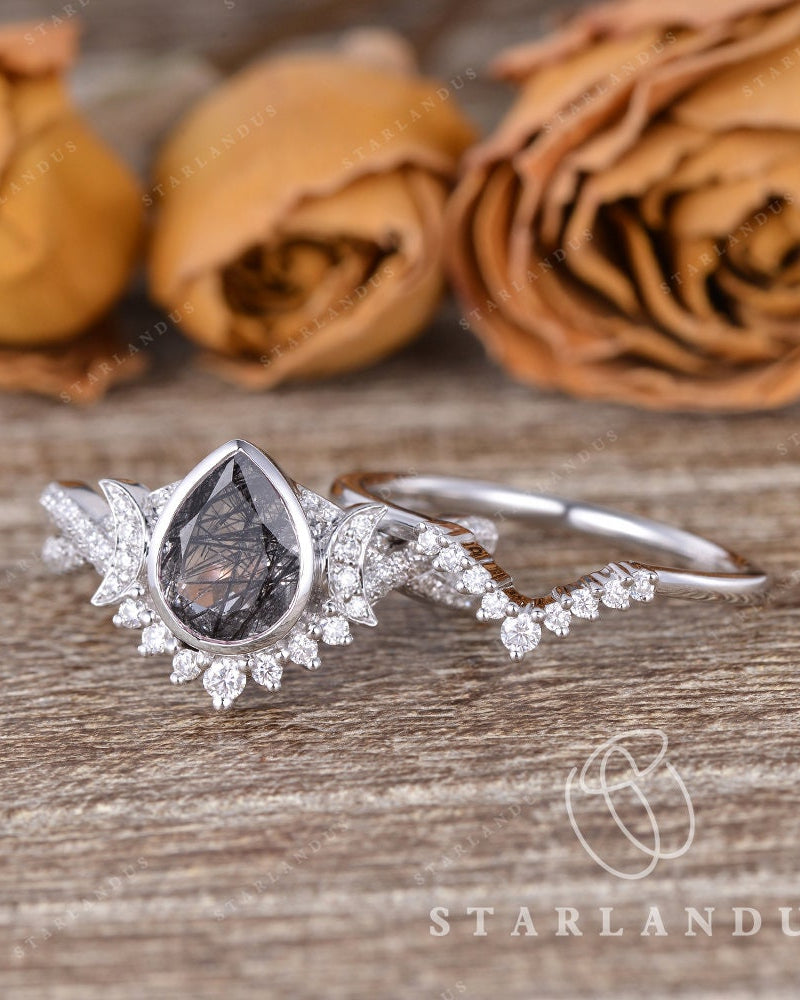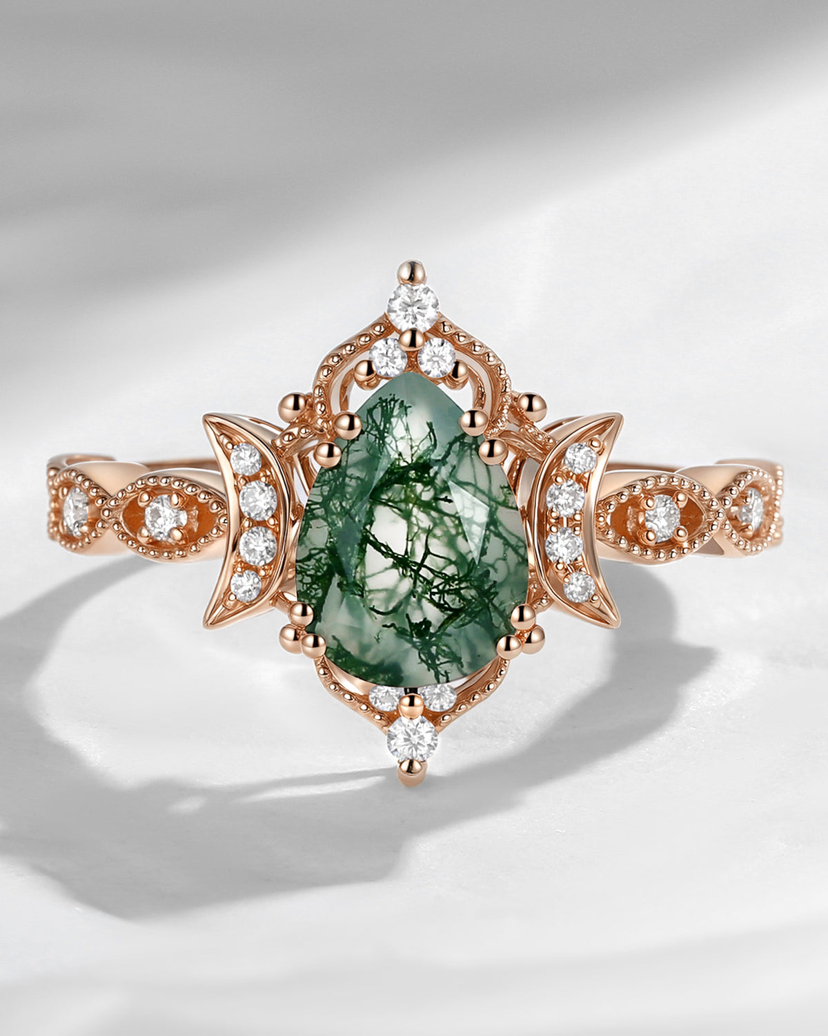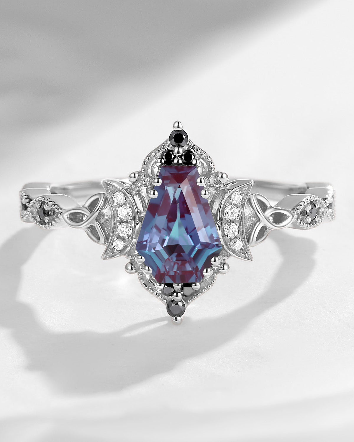 The new moon is often symbolic of new beginnings which this ring personifies for a couple starting their new life together. The crescent on the ring adorned with sparkling diamonds or other gemstones, like stars embellishing below the moon, making the ring both mystically charming and gorgeously radiant. This crescent shape ring is an ideal choice for a proposal or even daily wear, showcasing the wearer's personality in a unique way and serves as a beautiful promise of the future. Crescent moon is our proudest design by far. The crescent moon ring represents a new beginning, a process of starting over and vitality. Each crescent moon engagement ring is as unique as it can get while preserving a wonderful balance between vintage vibes and simplicity. The crescent moon ring can be of different shapes and different stone color even different side stones because here in StarlandUS, every one gets to create their own crescent moon, so as their own beginning.
