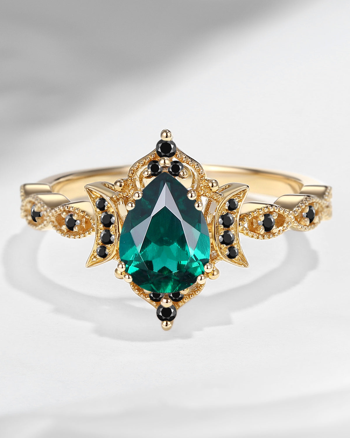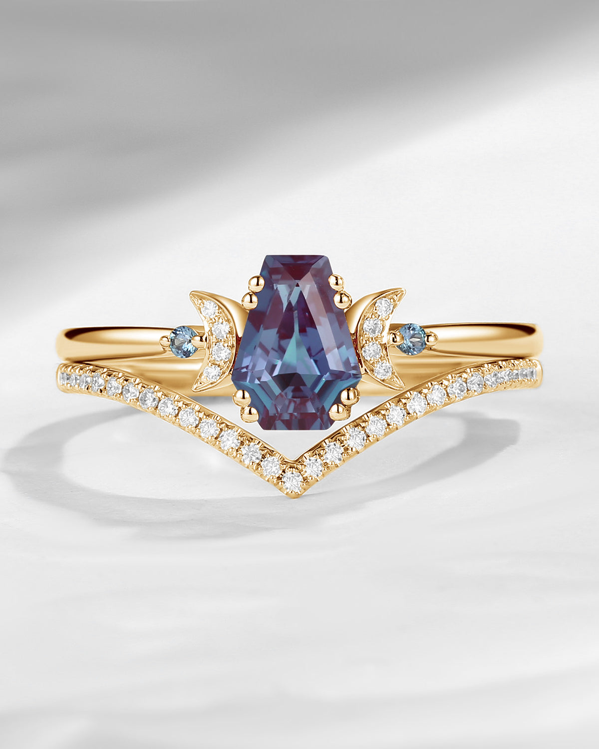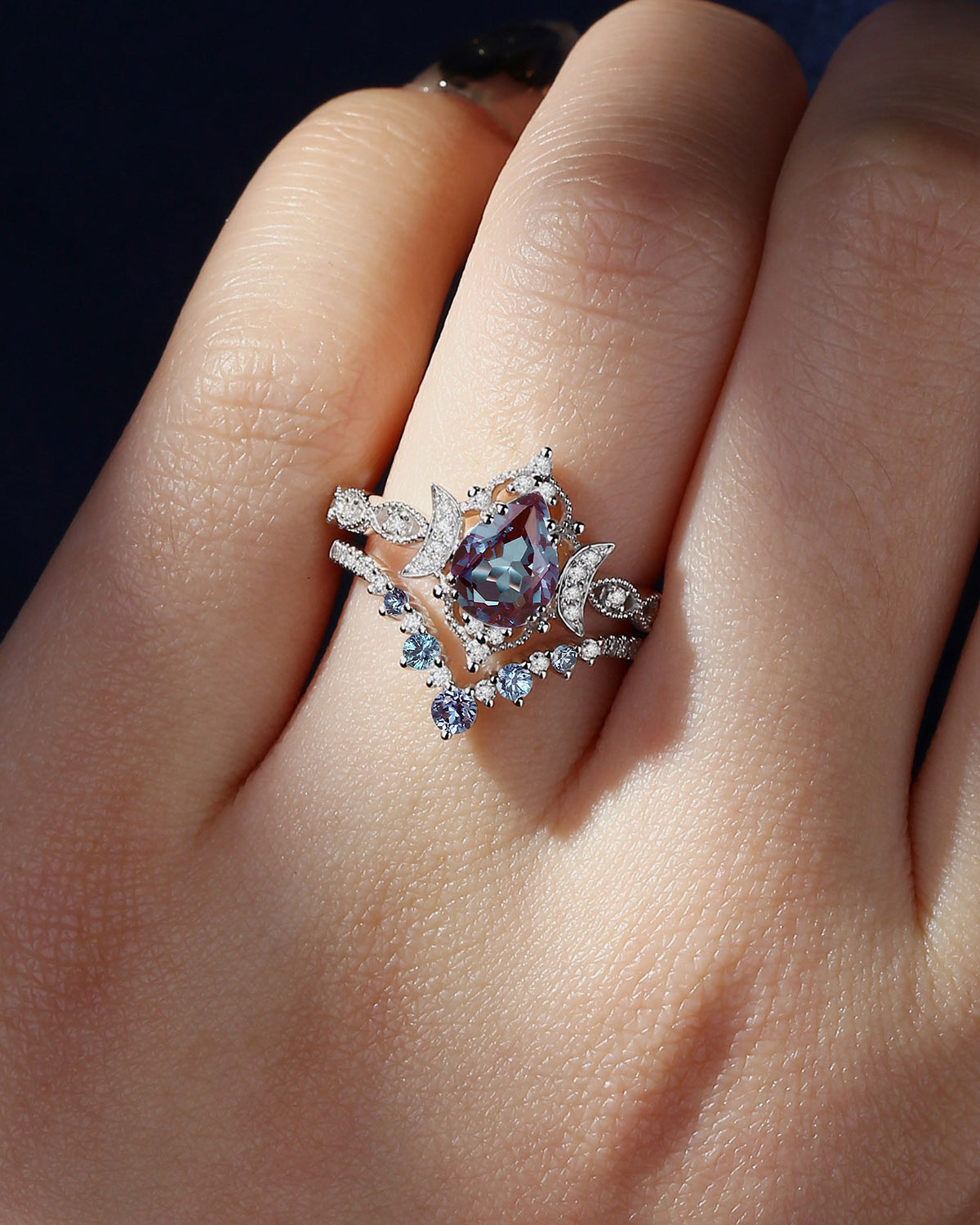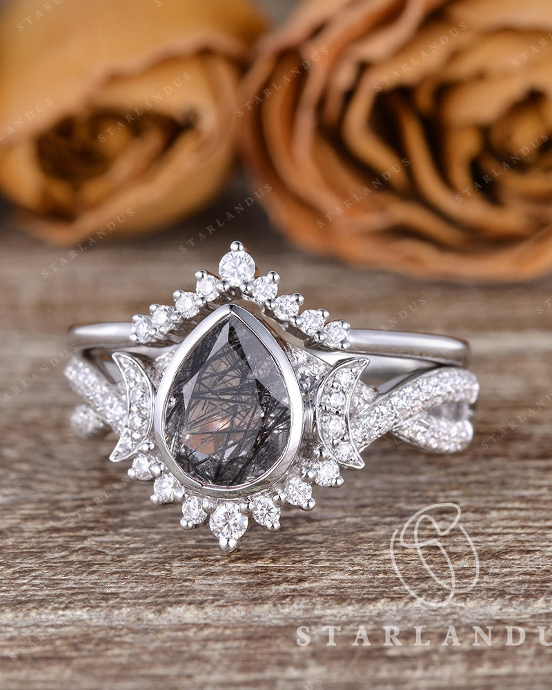 The new moon is often symbolic of new beginnings which this ring personifies for a couple starting their new life together. The crescent on the ring adorned with sparkling diamonds or other gemstones, like stars embellishing below the moon, making the ring both mystically charming and gorgeously radiant. This crescent shape ring is an ideal choice for a proposal or even daily wear, showcasing the wearer's personality in a unique way and serves as a beautiful promise of the future. Crescent moon is our proudest design by far. The crescent moon ring represents a new beginning, a process of starting over and vitality. Each crescent moon engagement ring is as unique as it can get while preserving a wonderful balance between vintage vibes and simplicity. The crescent moon ring can be of different shapes and different stone color even different side stones because here in StarlandUS, every one gets to create their own crescent moon, so as their own beginning.