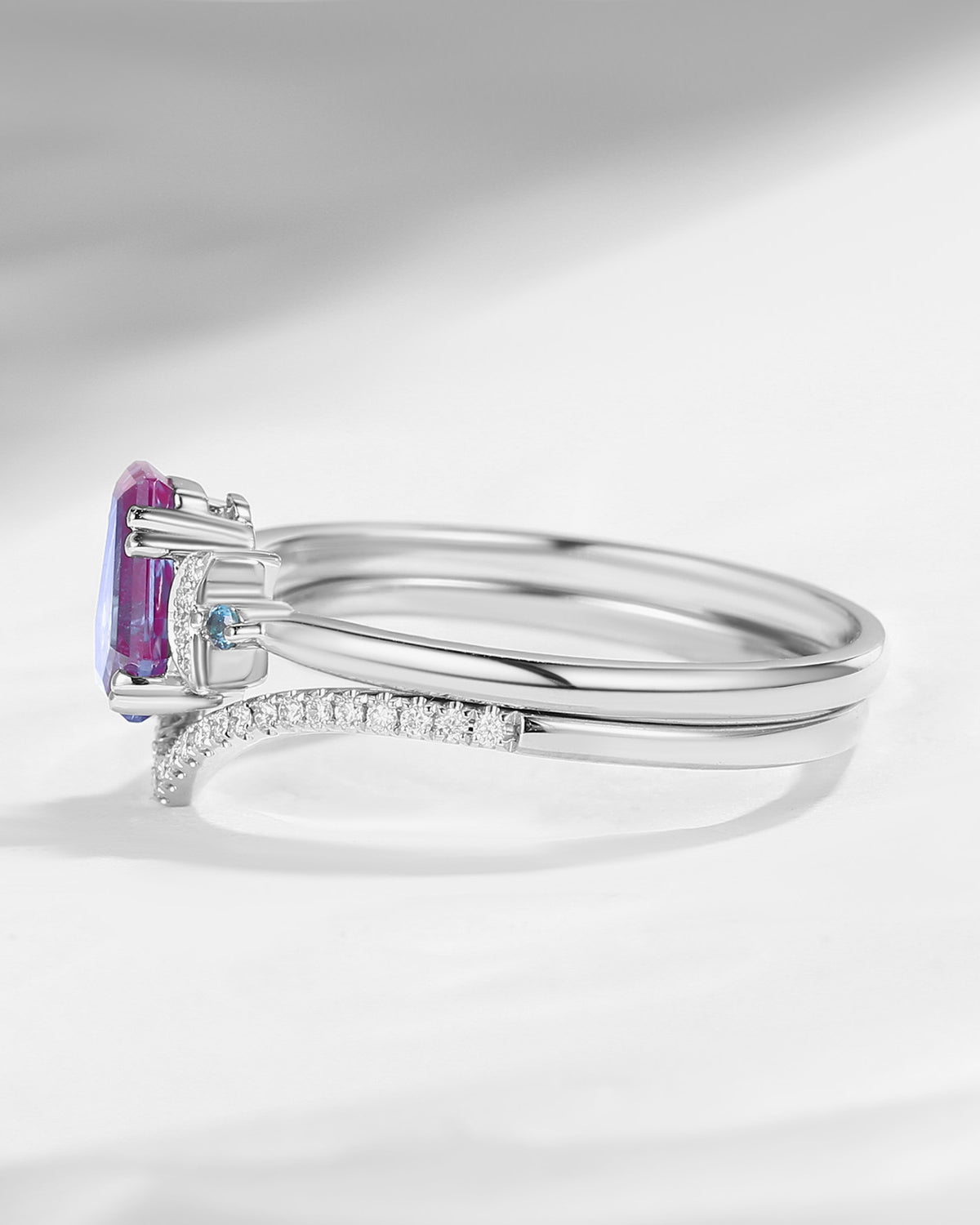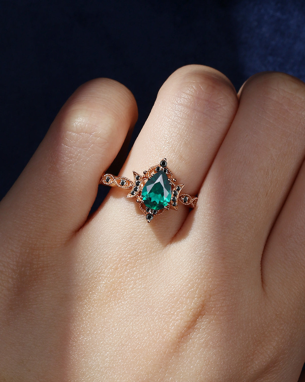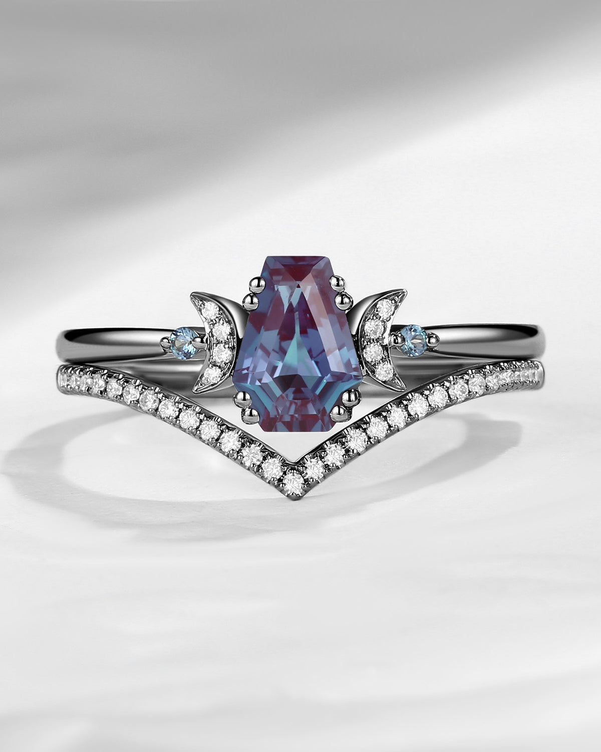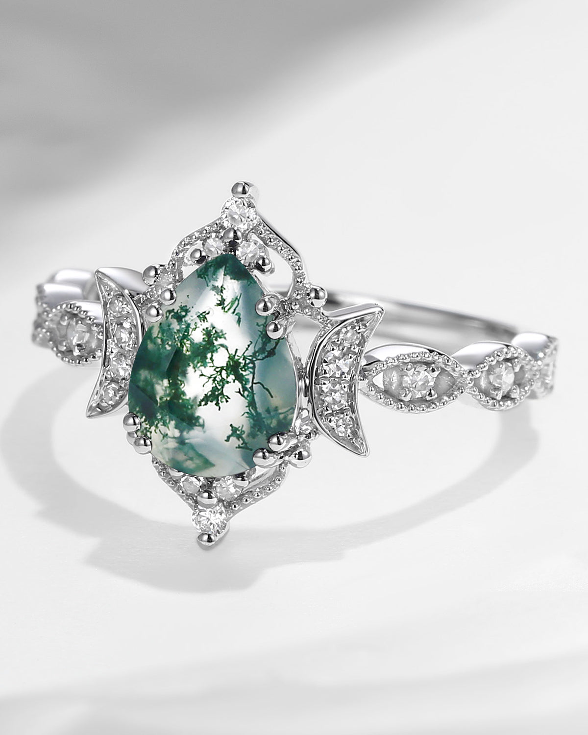 The new moon is often symbolic of new beginnings which this ring personifies for a couple starting their new life together. The crescent on the ring adorned with sparkling diamonds or other gemstones, like stars embellishing below the moon, making the ring both mystically charming and gorgeously radiant. This crescent shape ring is an ideal choice for a proposal or even daily wear, showcasing the wearer's personality in a unique way and serves as a beautiful promise of the future. Crescent moon is our proudest design by far. The crescent moon ring represents a new beginning, a process of starting over and vitality. Each crescent moon engagement ring is as unique as it can get while preserving a wonderful balance between vintage vibes and simplicity. The crescent moon ring can be of different shapes and different stone color even different side stones because here in StarlandUS, every one gets to create their own crescent moon, so as their own beginning.