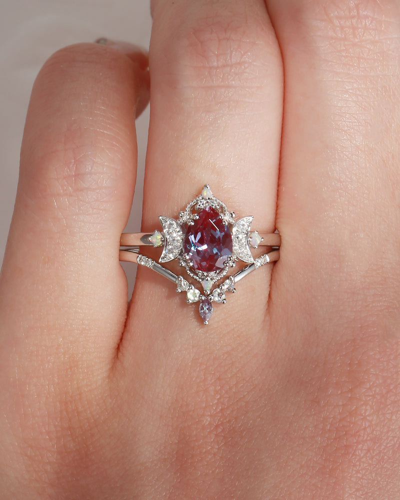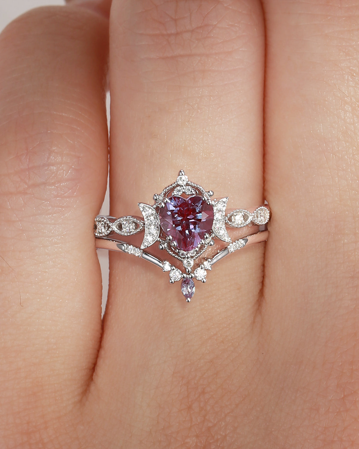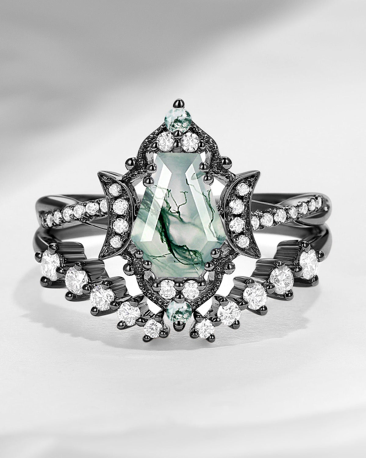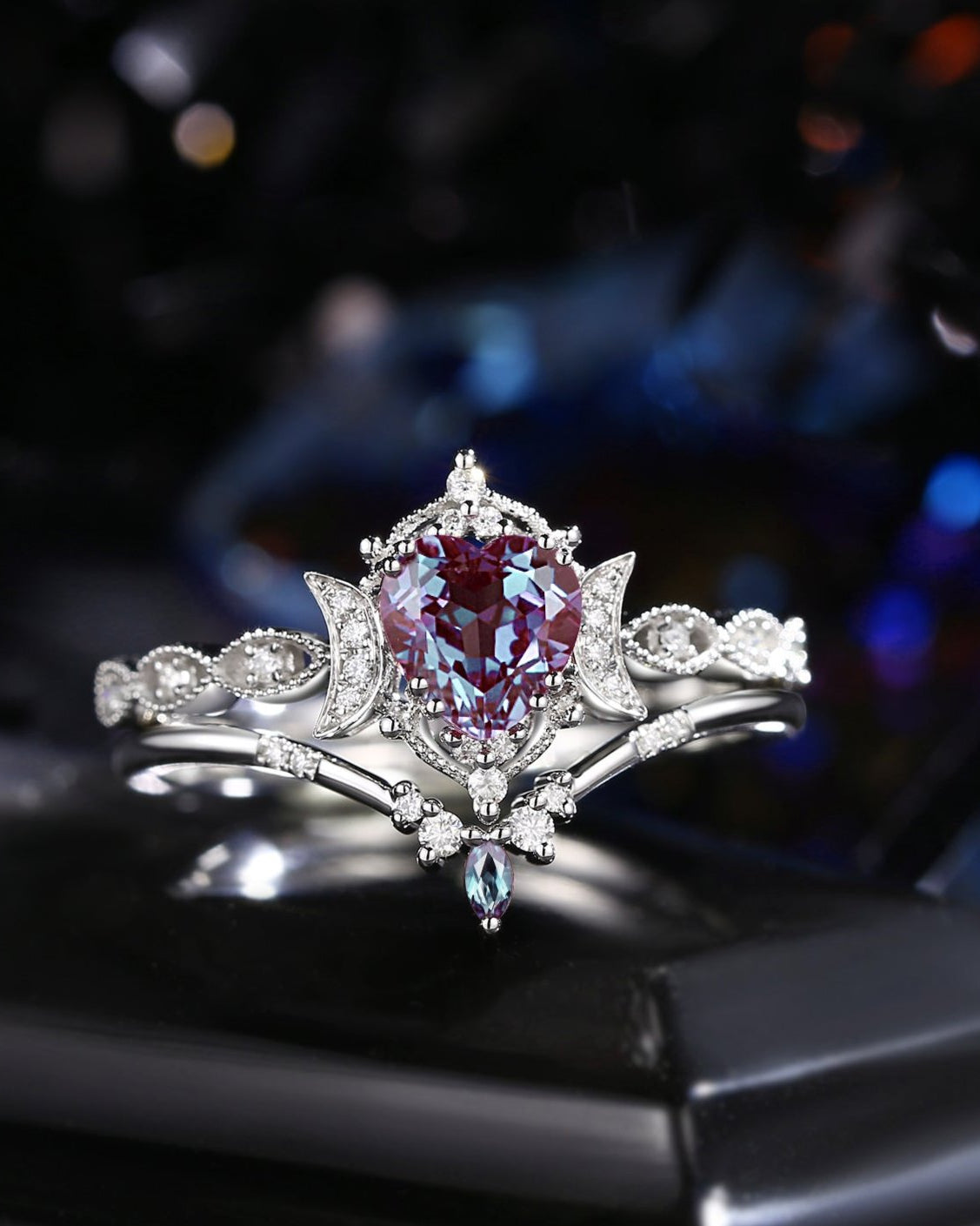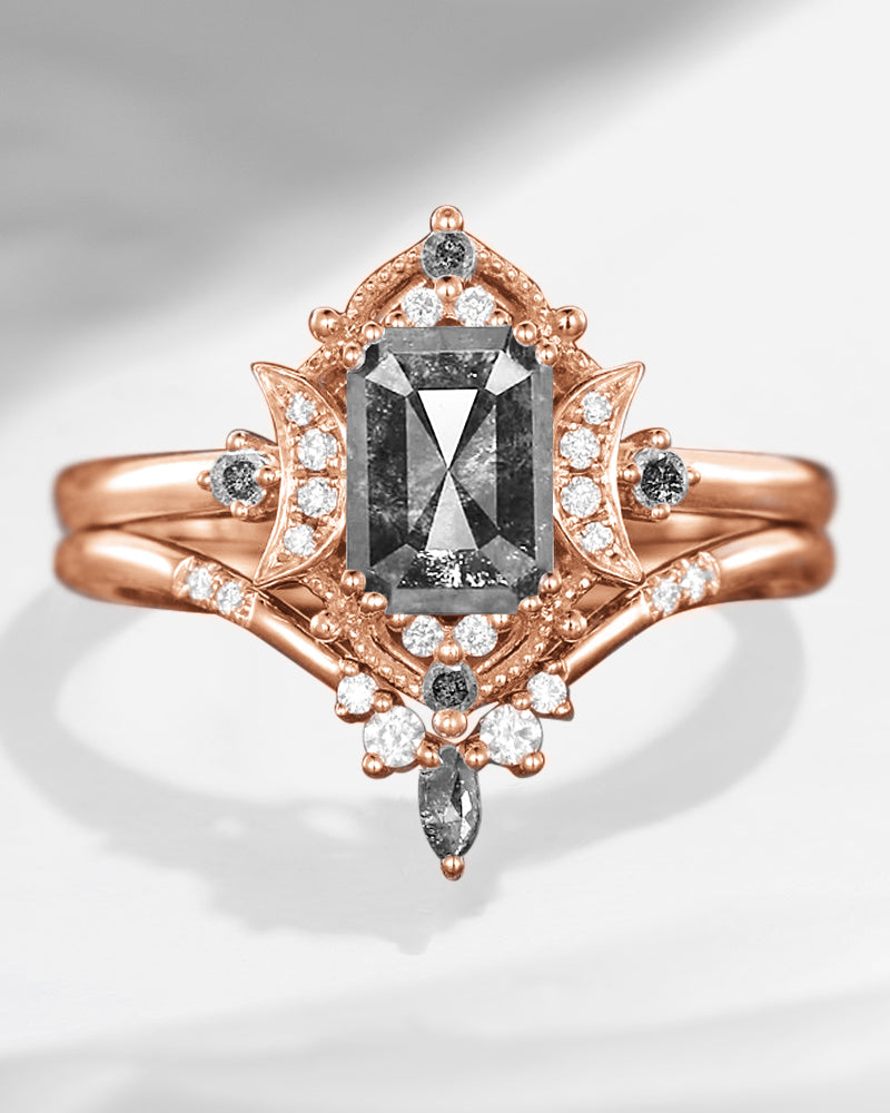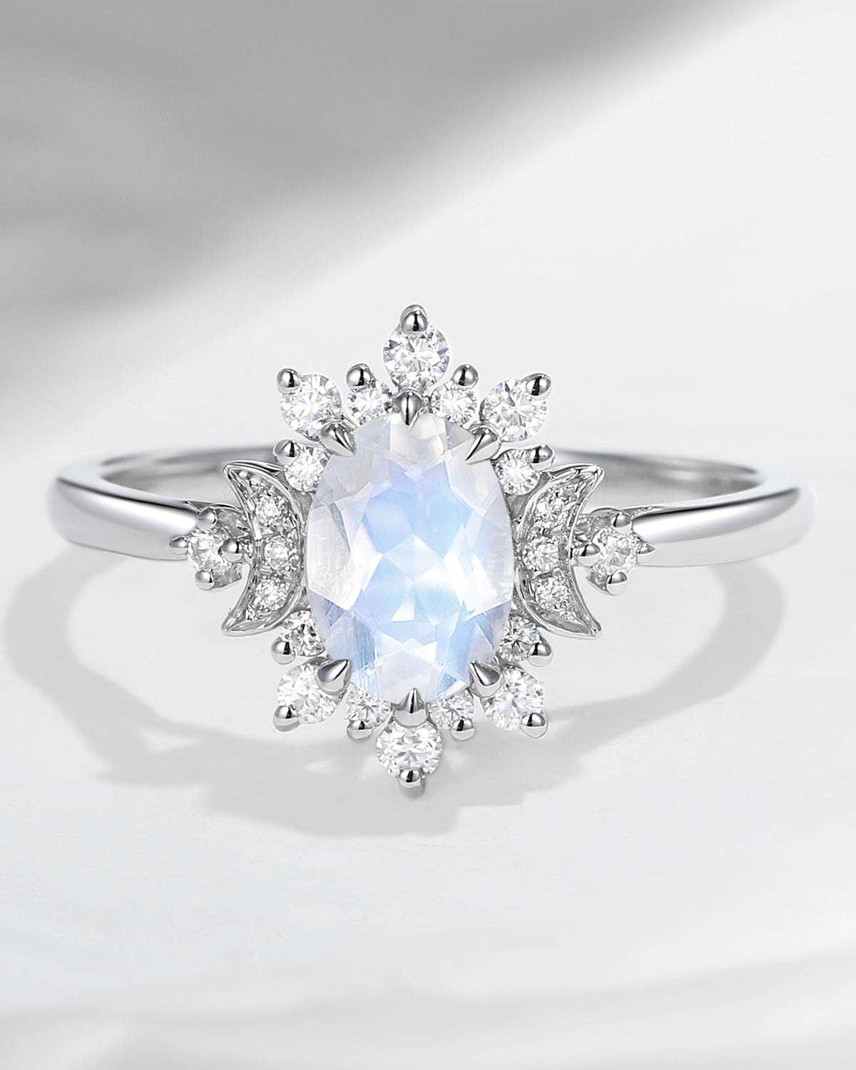 The new moon is often symbolic of new beginnings which this ring personifies for a couple starting their new life together. The crescent on the ring adorned with sparkling diamonds or other gemstones, like stars embellishing below the moon, making the ring both mystically charming and gorgeously radiant. This crescent shape ring is an ideal choice for a proposal or even daily wear, showcasing the wearer's personality in a unique way and serves as a beautiful promise of the future. Crescent moon is our proudest design by far. The crescent moon ring represents a new beginning, a process of starting over and vitality. Each crescent moon engagement ring is as unique as it can get while preserving a wonderful balance between vintage vibes and simplicity. The crescent moon ring can be of different shapes and different stone color even different side stones because here in StarlandUS, every one gets to create their own crescent moon, so as their own beginning.