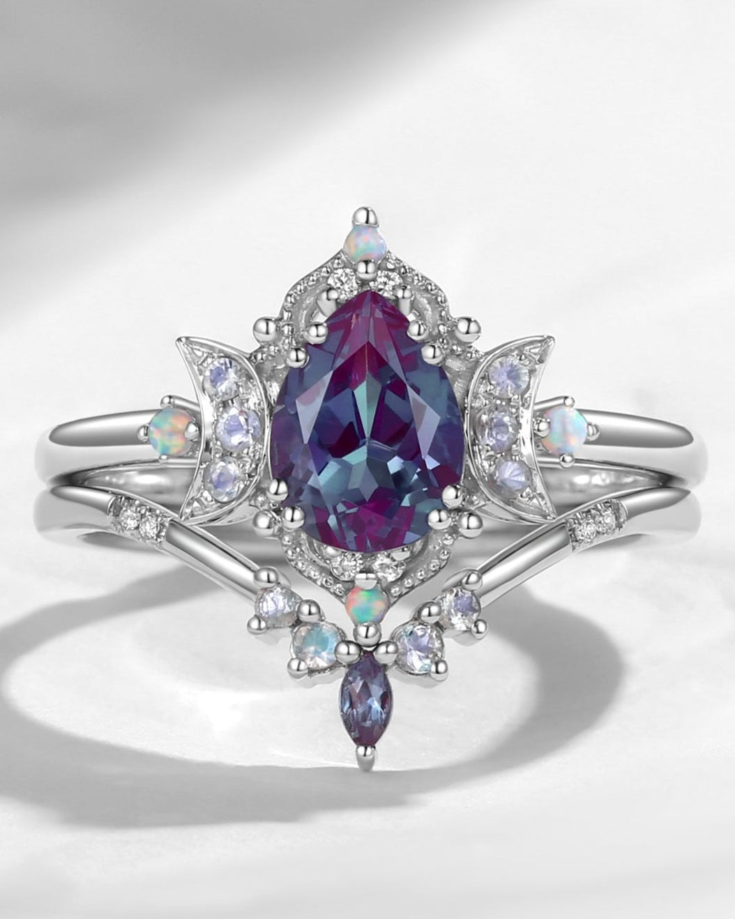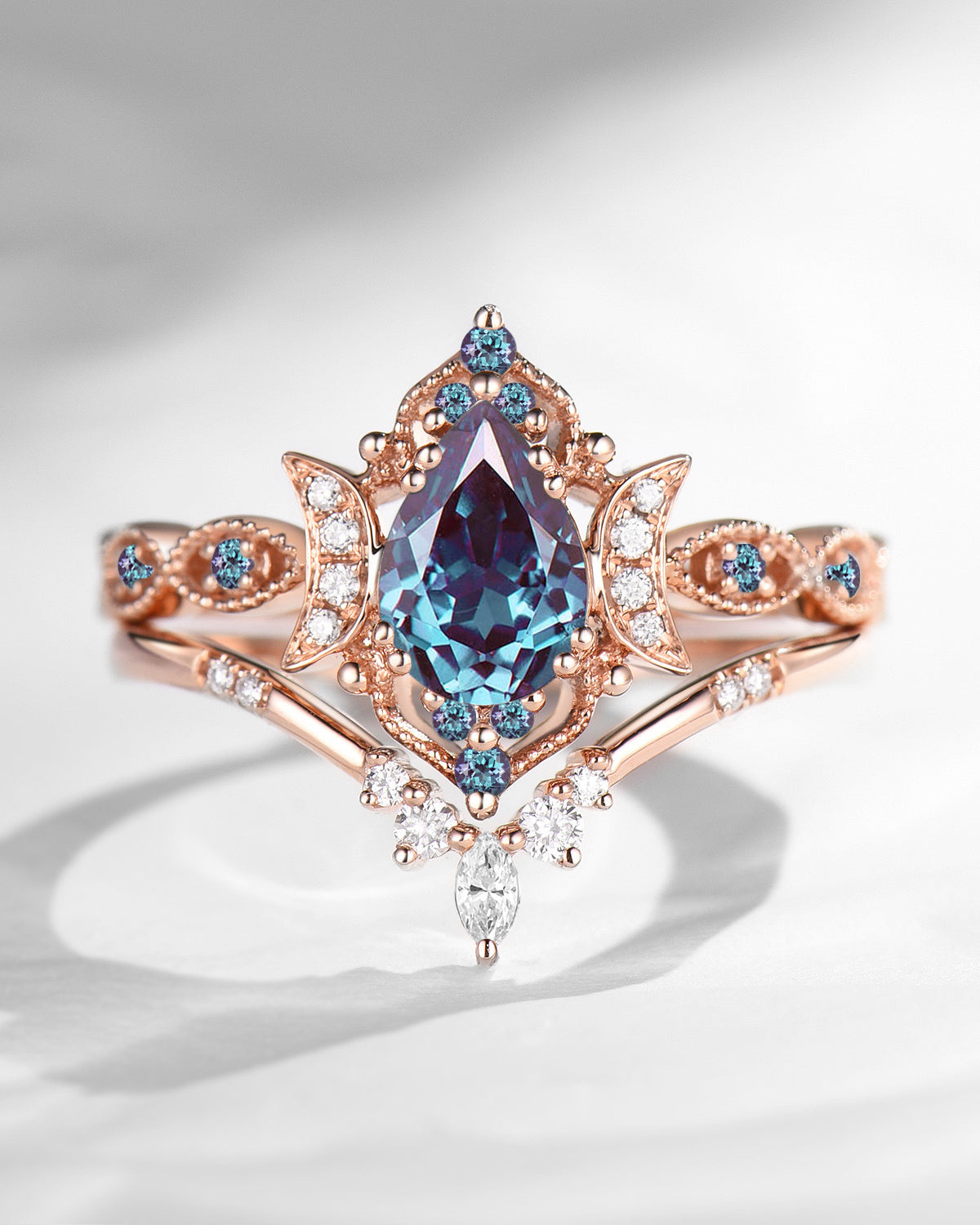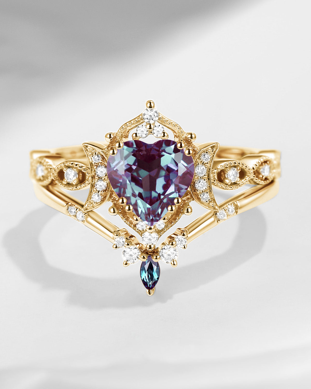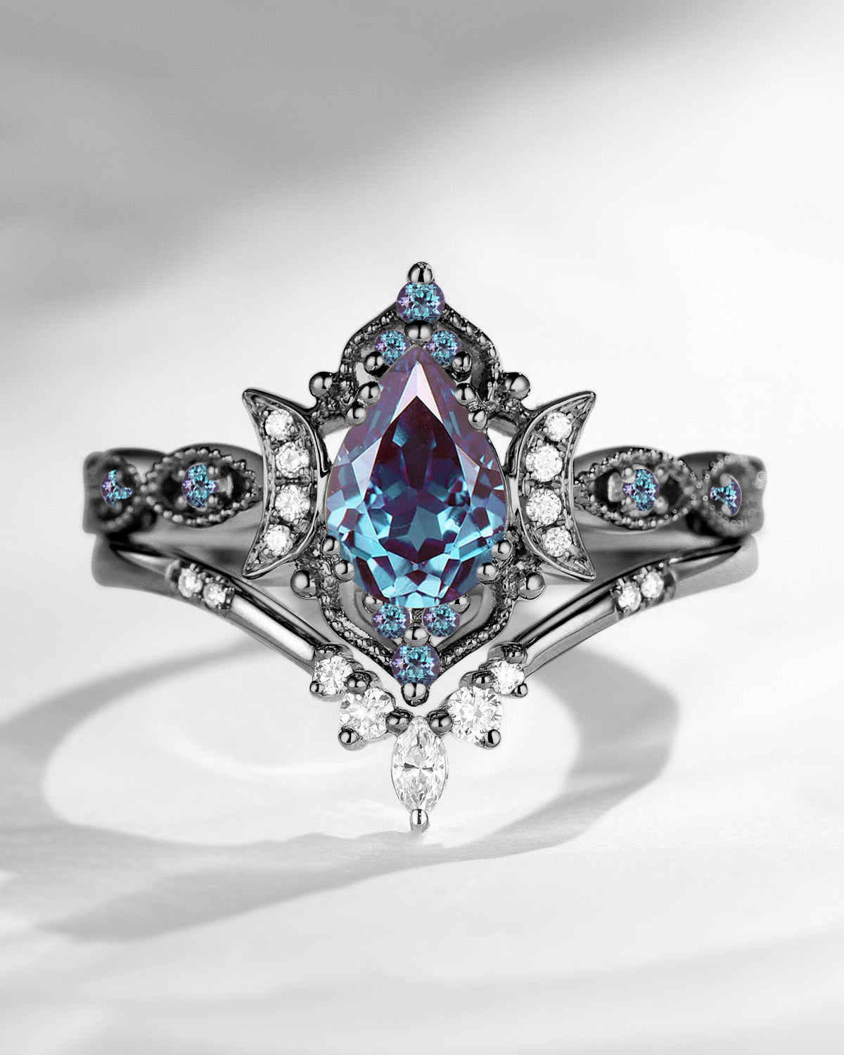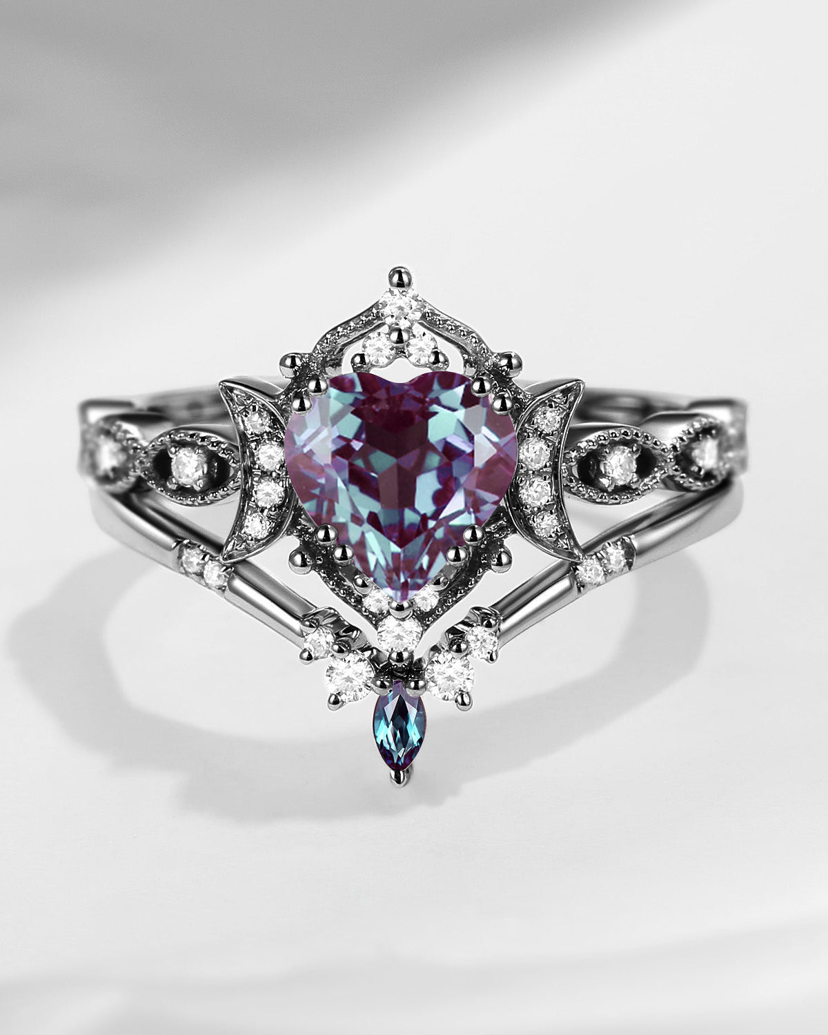The new moon is often symbolic of new beginnings which this ring personifies for a couple starting their new life together. The crescent on the ring adorned with sparkling diamonds or other gemstones, like stars embellishing below the moon, making the ring both mystically charming and gorgeously radiant. This crescent shape ring is an ideal choice for a proposal or even daily wear, showcasing the wearer's personality in a unique way and serves as a beautiful promise of the future. Crescent moon is our proudest design by far. The crescent moon ring represents a new beginning, a process of starting over and vitality. Each crescent moon engagement ring is as unique as it can get while preserving a wonderful balance between vintage vibes and simplicity. The crescent moon ring can be of different shapes and different stone color even different side stones because here in StarlandUS, every one gets to create their own crescent moon, so as their own beginning.