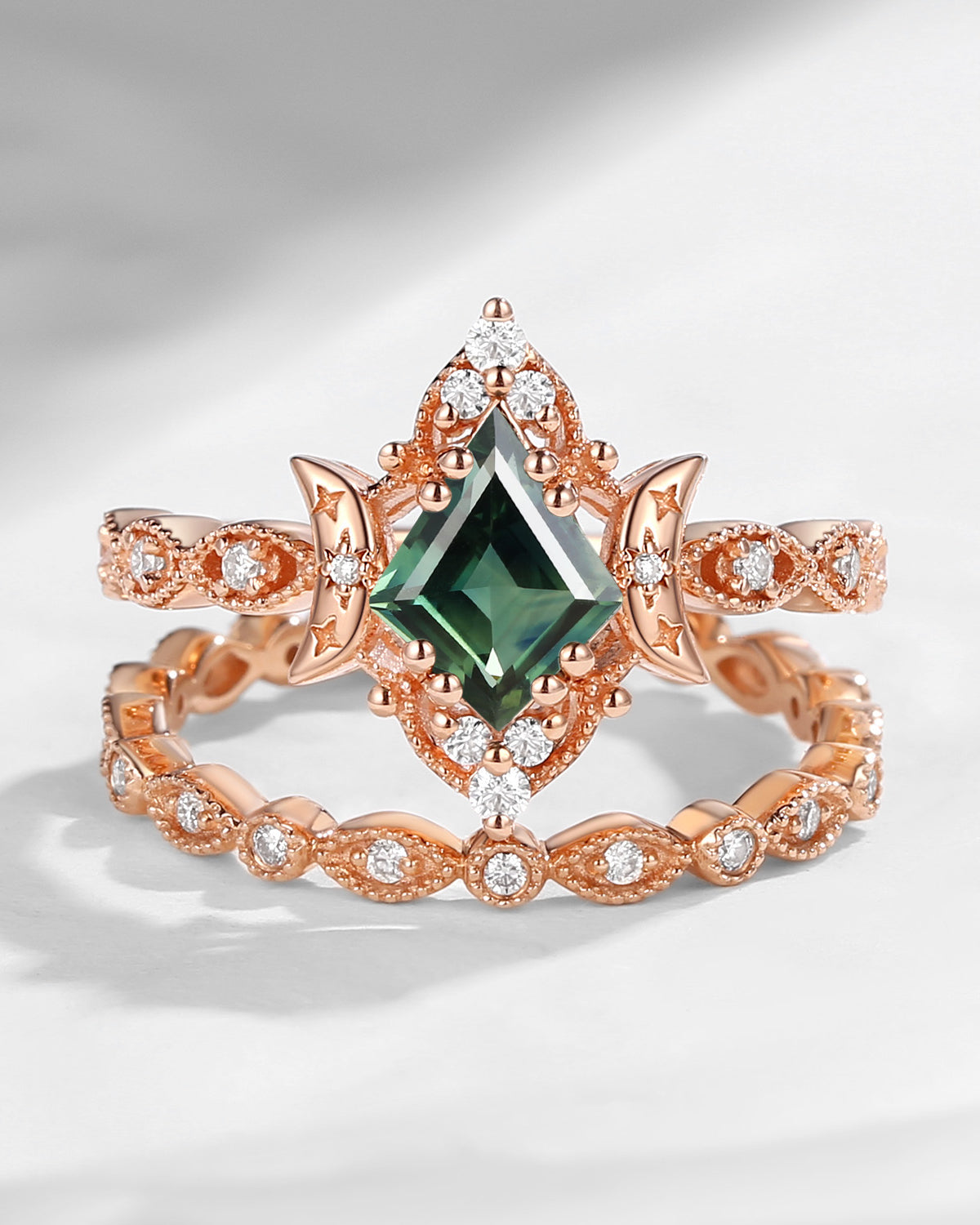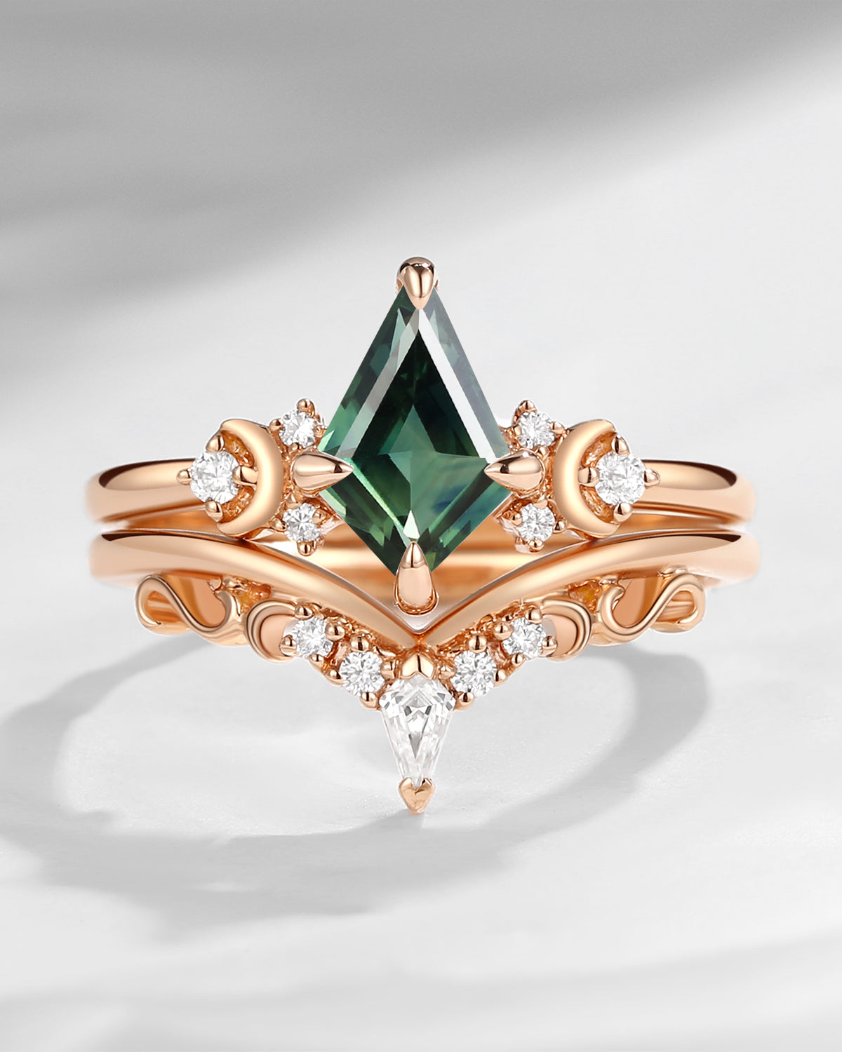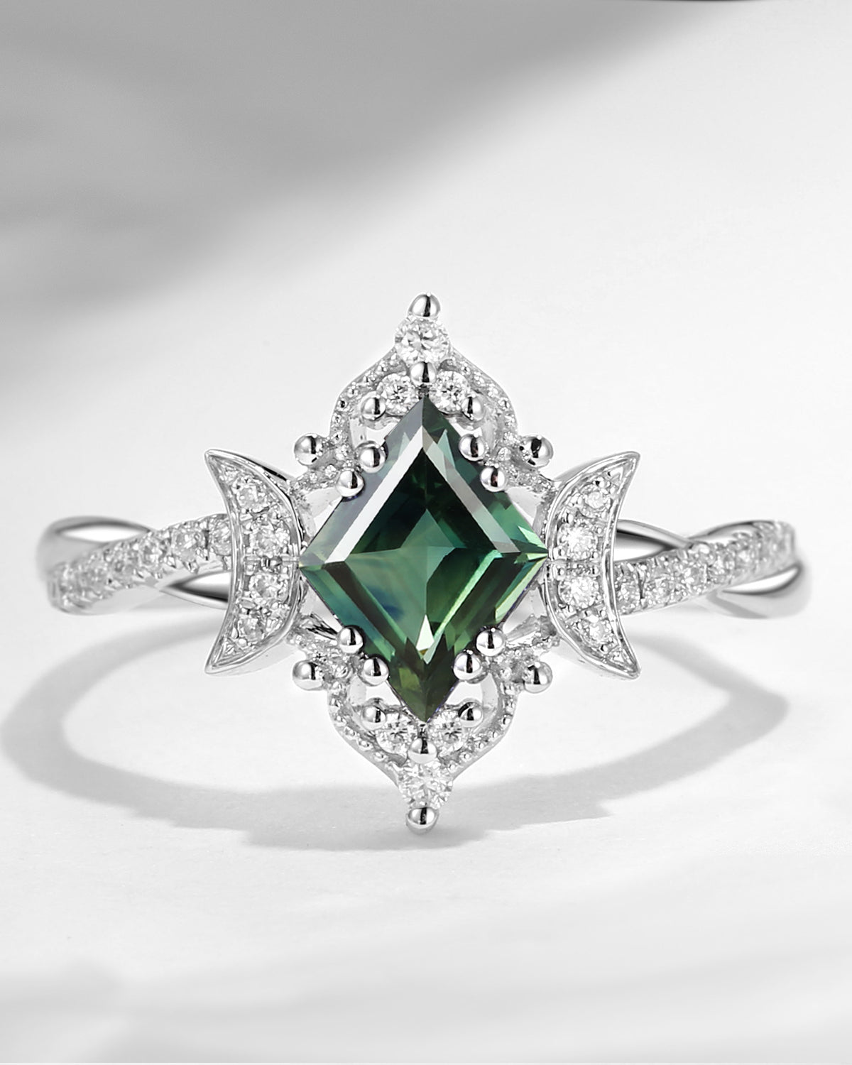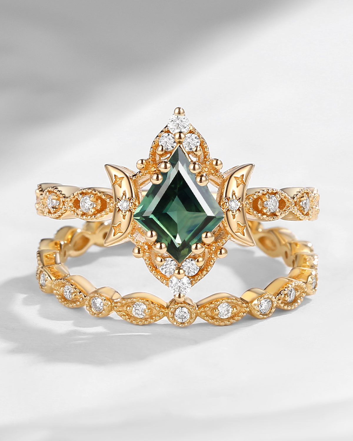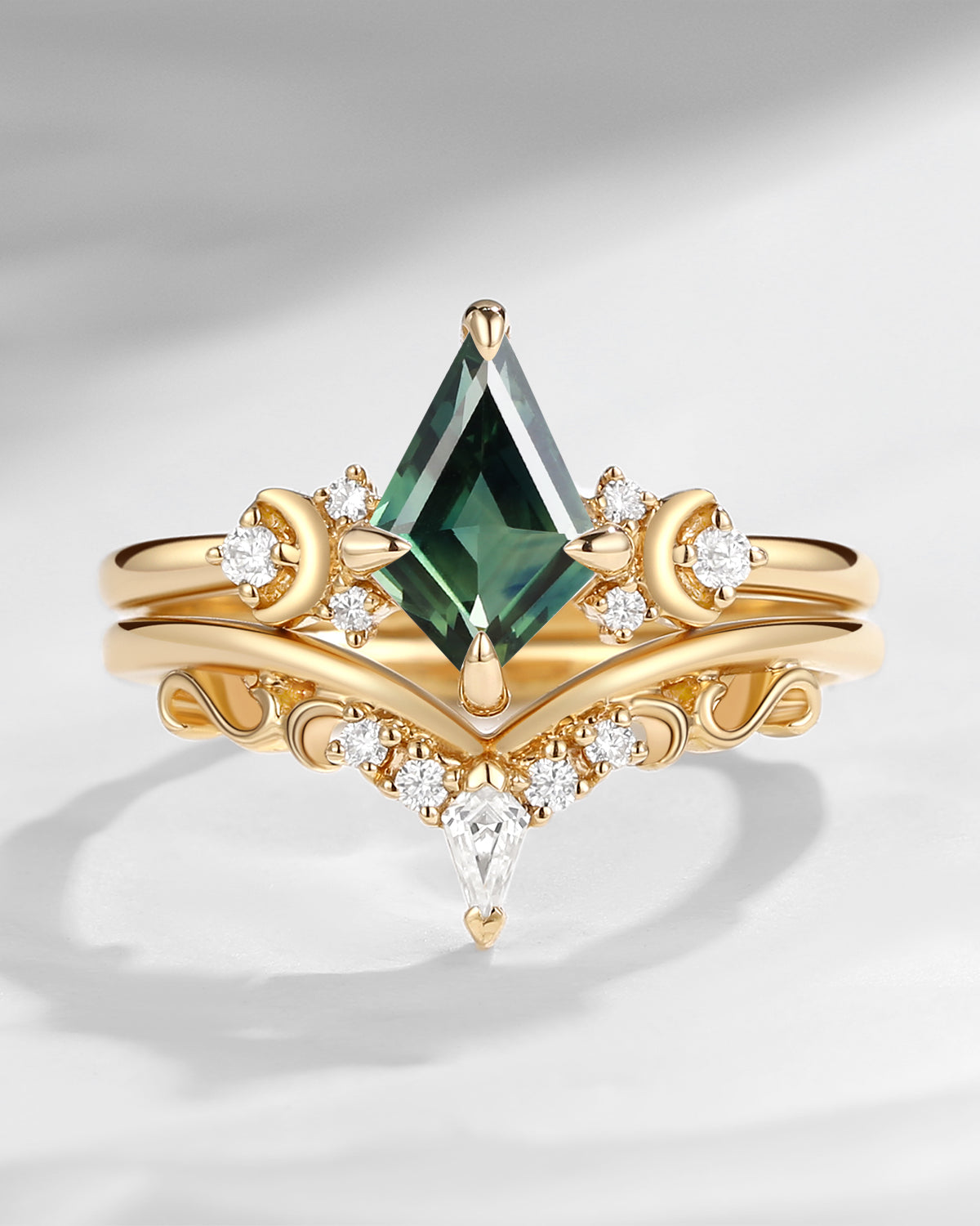 The new moon is often symbolic of new beginnings which this ring personifies for a couple starting their new life together. The crescent on the ring adorned with sparkling diamonds or other gemstones, like stars embellishing below the moon, making the ring both mystically charming and gorgeously radiant. This crescent shape ring is an ideal choice for a proposal or even daily wear, showcasing the wearer's personality in a unique way and serves as a beautiful promise of the future. Crescent moon is our proudest design by far. The crescent moon ring represents a new beginning, a process of starting over and vitality. Each crescent moon engagement ring is as unique as it can get while preserving a wonderful balance between vintage vibes and simplicity. The crescent moon ring can be of different shapes and different stone color even different side stones because here in StarlandUS, every one gets to create their own crescent moon, so as their own beginning.
