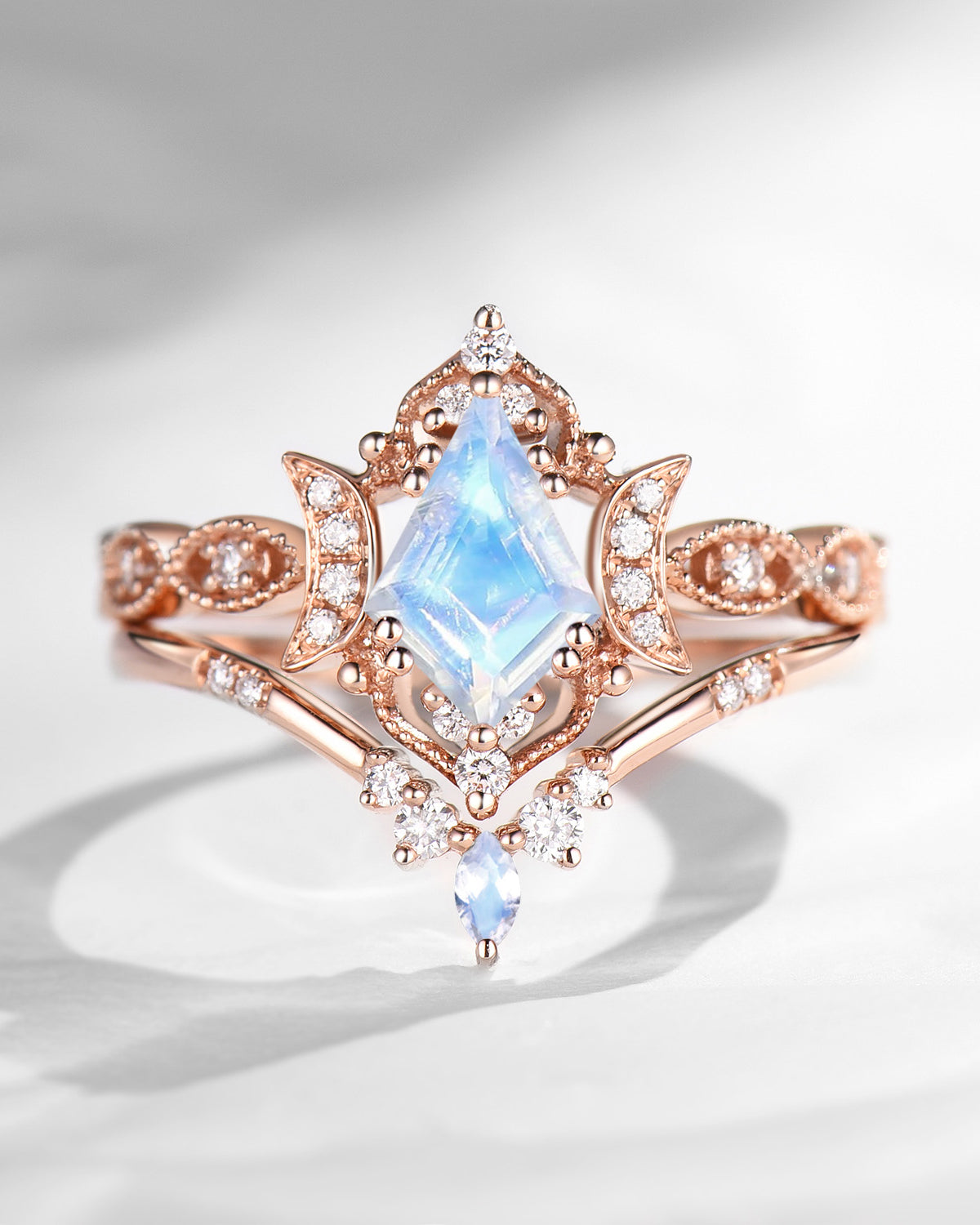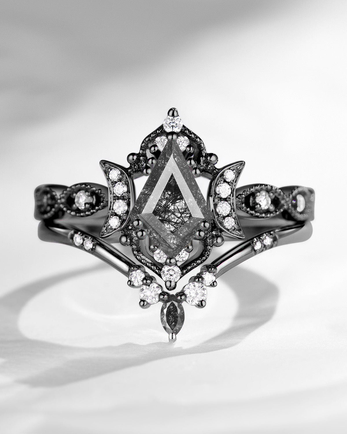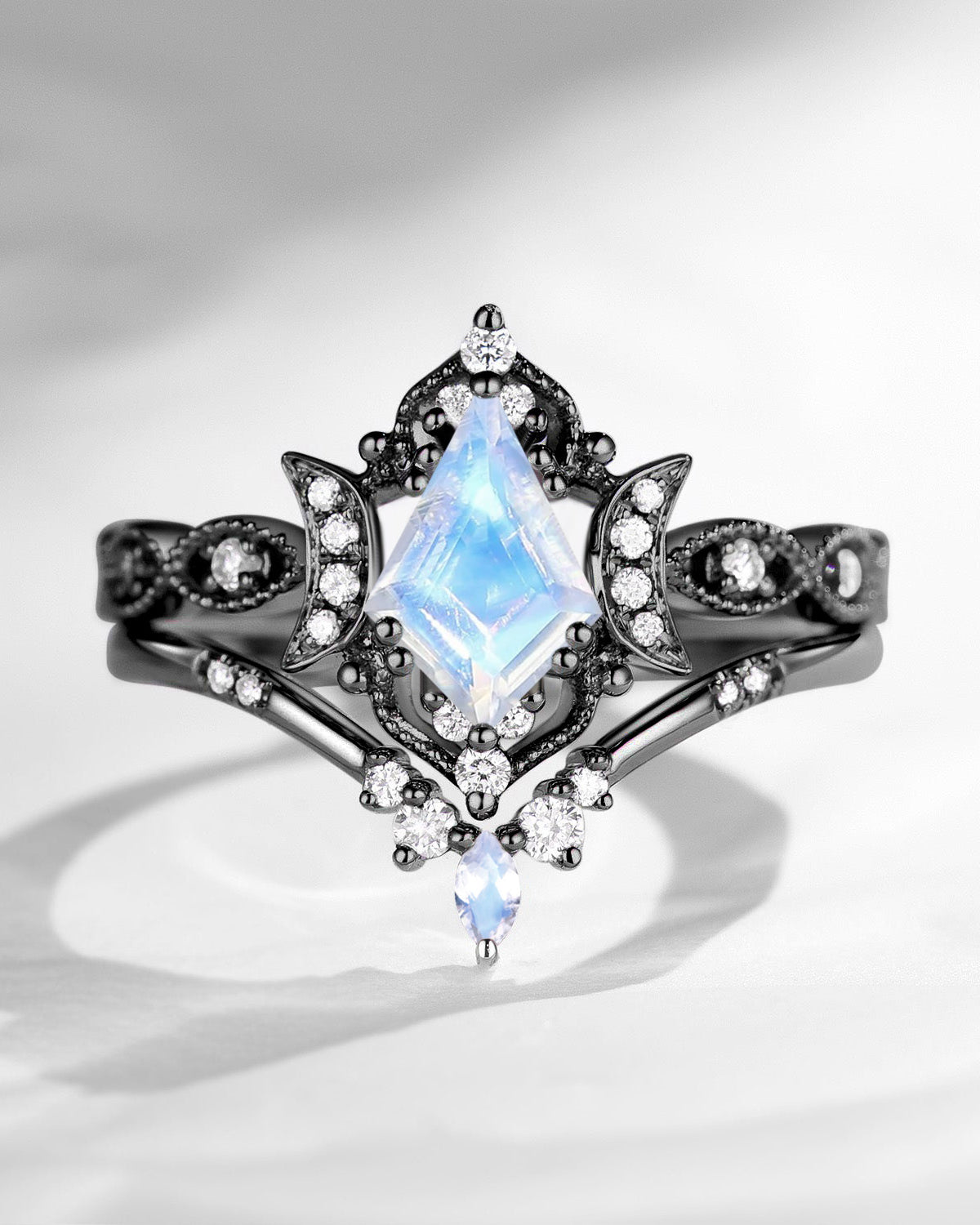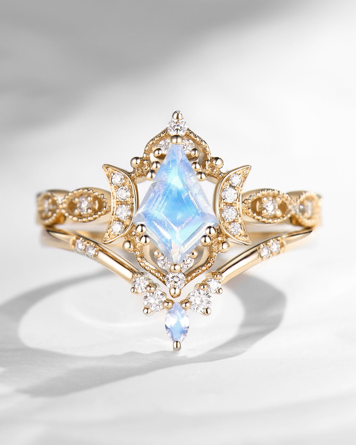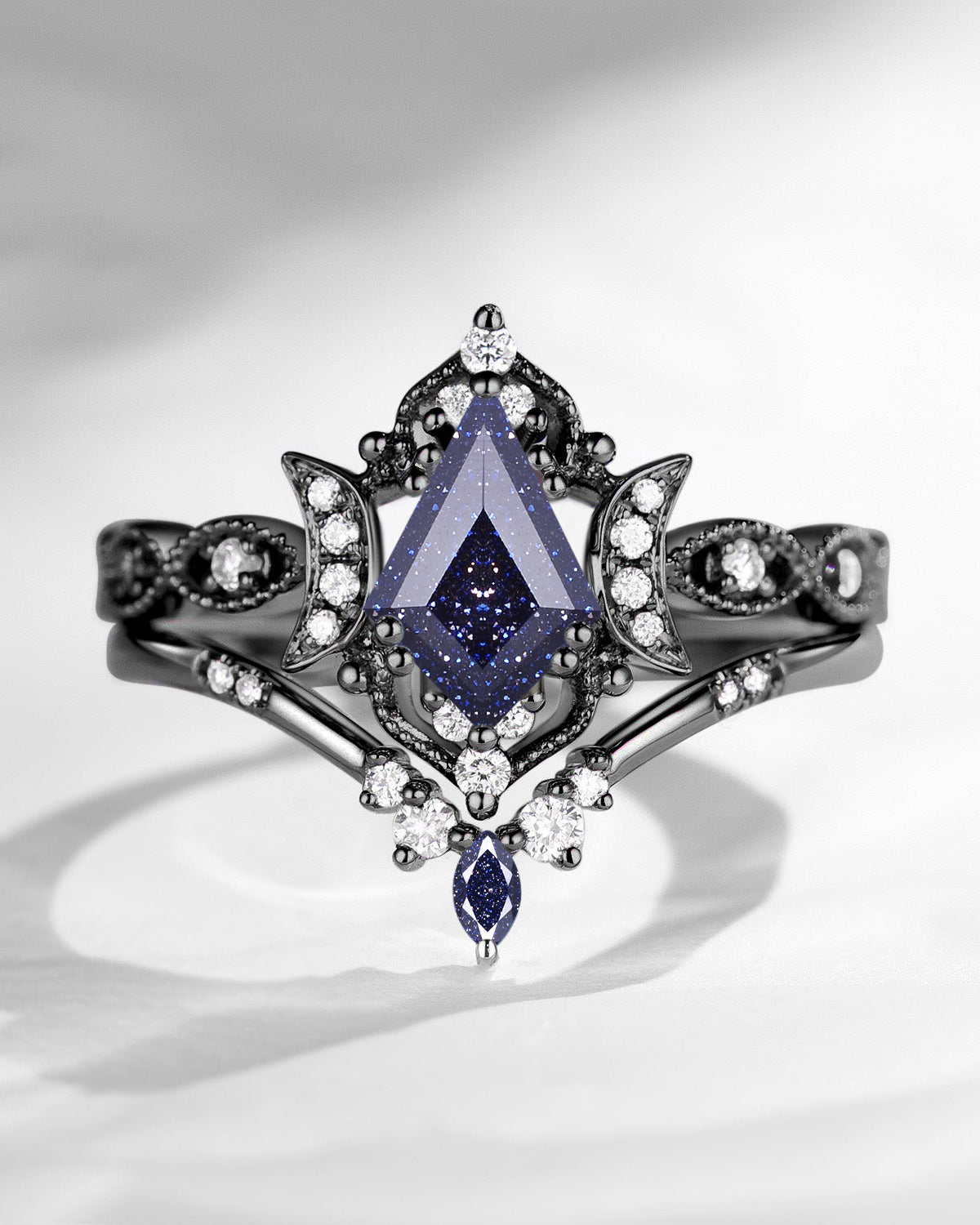 The new moon is often symbolic of new beginnings which this ring personifies for a couple starting their new life together. The crescent on the ring adorned with sparkling diamonds or other gemstones, like stars embellishing below the moon, making the ring both mystically charming and gorgeously radiant. This crescent shape ring is an ideal choice for a proposal or even daily wear, showcasing the wearer's personality in a unique way and serves as a beautiful promise of the future. Crescent moon is our proudest design by far. The crescent moon ring represents a new beginning, a process of starting over and vitality. Each crescent moon engagement ring is as unique as it can get while preserving a wonderful balance between vintage vibes and simplicity. The crescent moon ring can be of different shapes and different stone color even different side stones because here in StarlandUS, every one gets to create their own crescent moon, so as their own beginning.